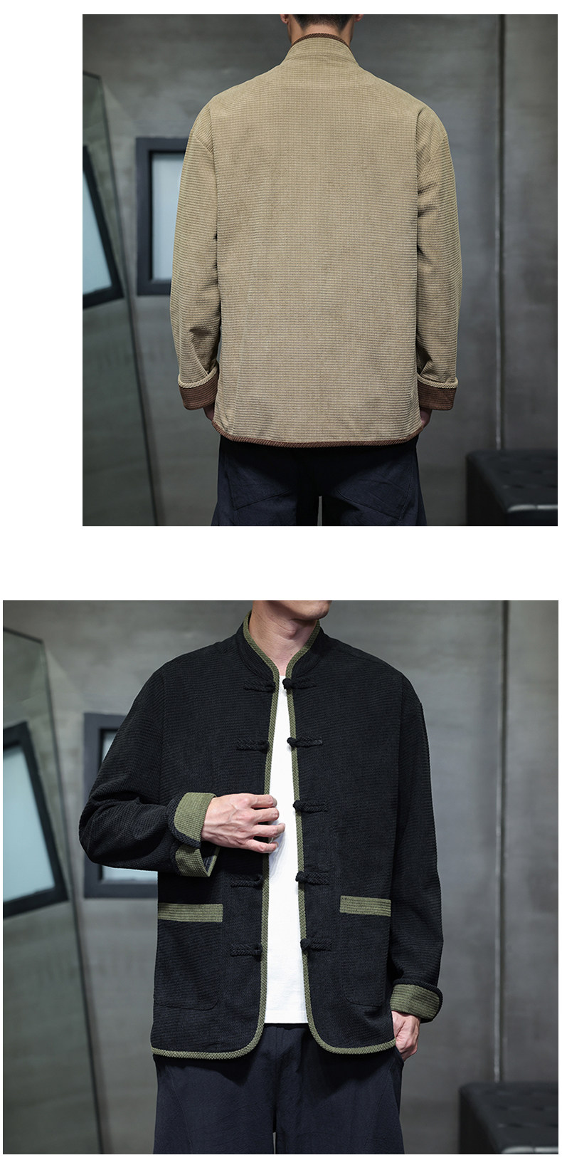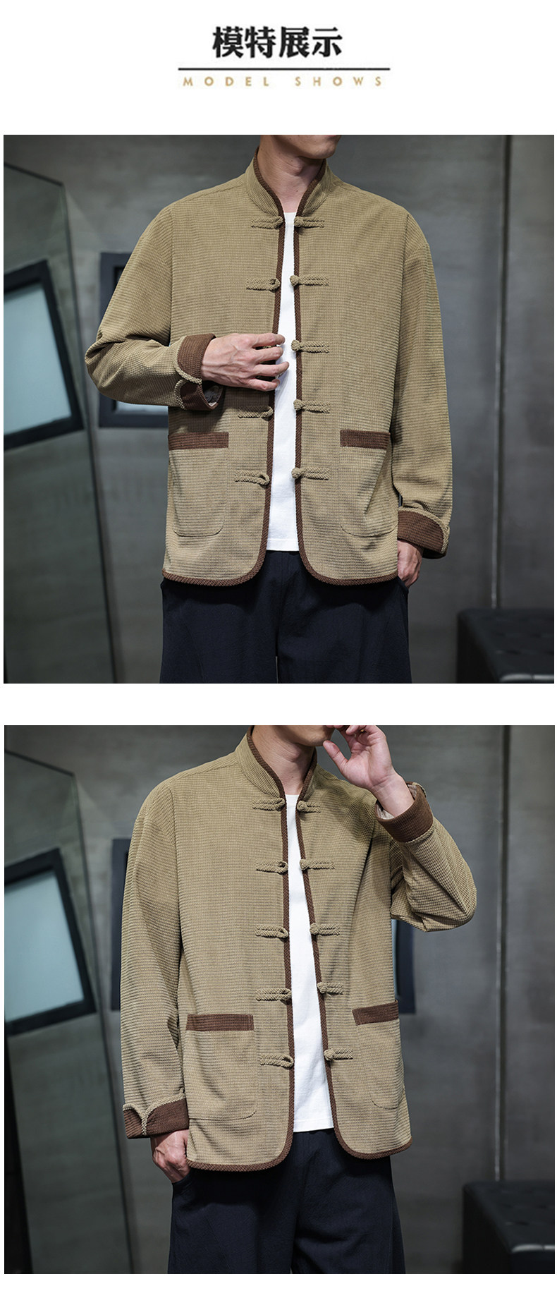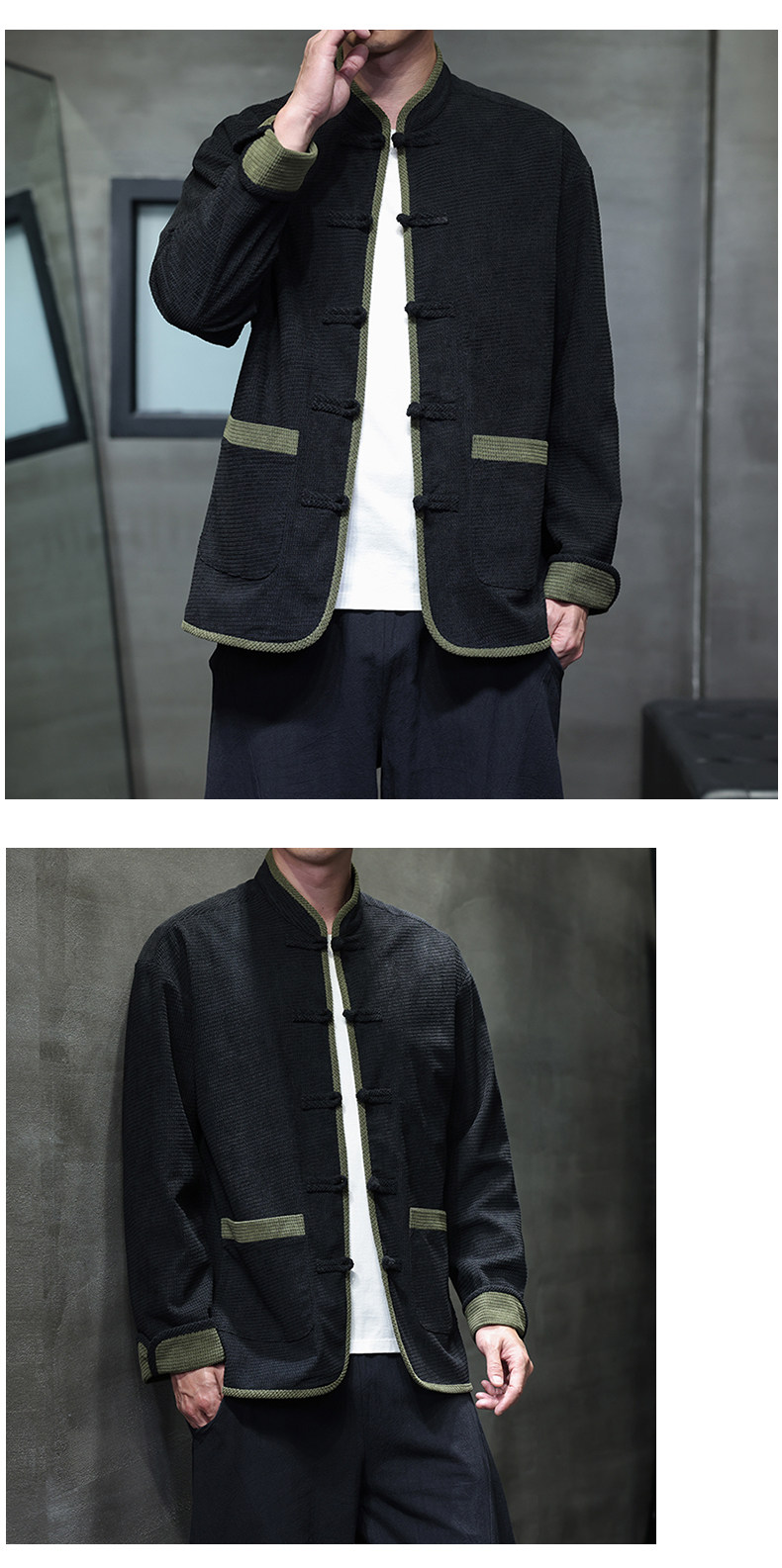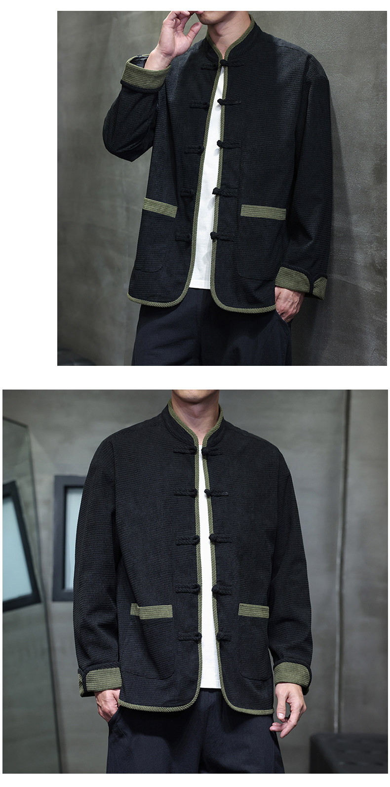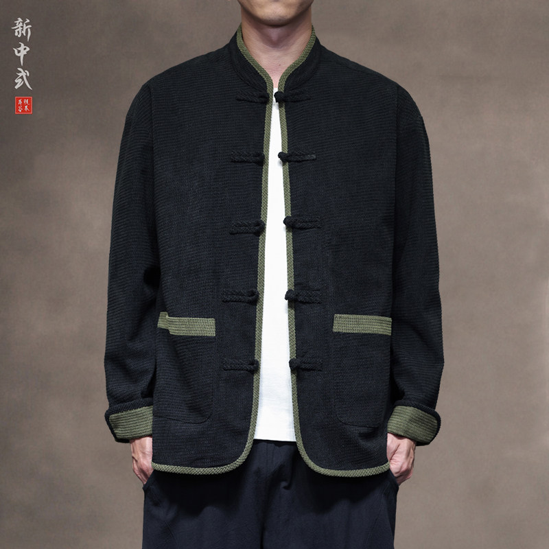 新中式春秋休閒盤釦唐裝外套風男裝復古風大碼漢服夾克居士服
