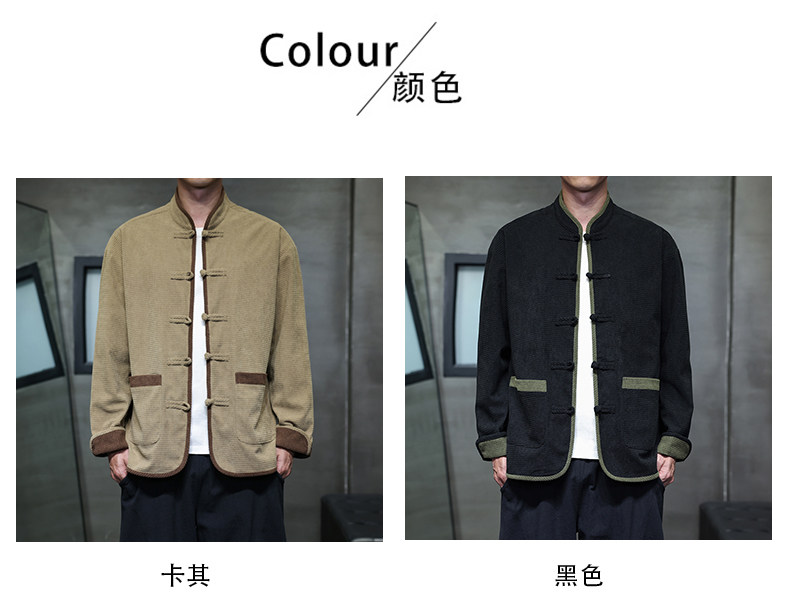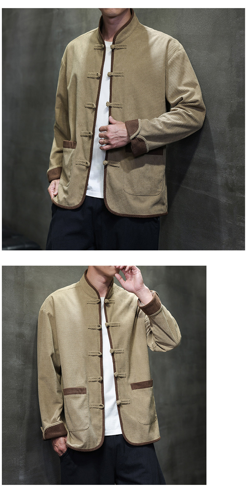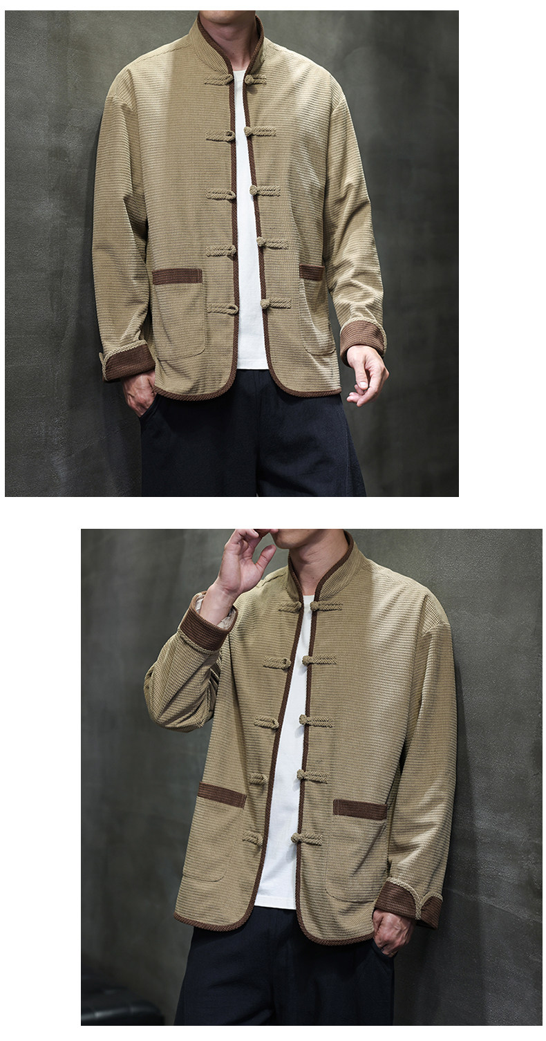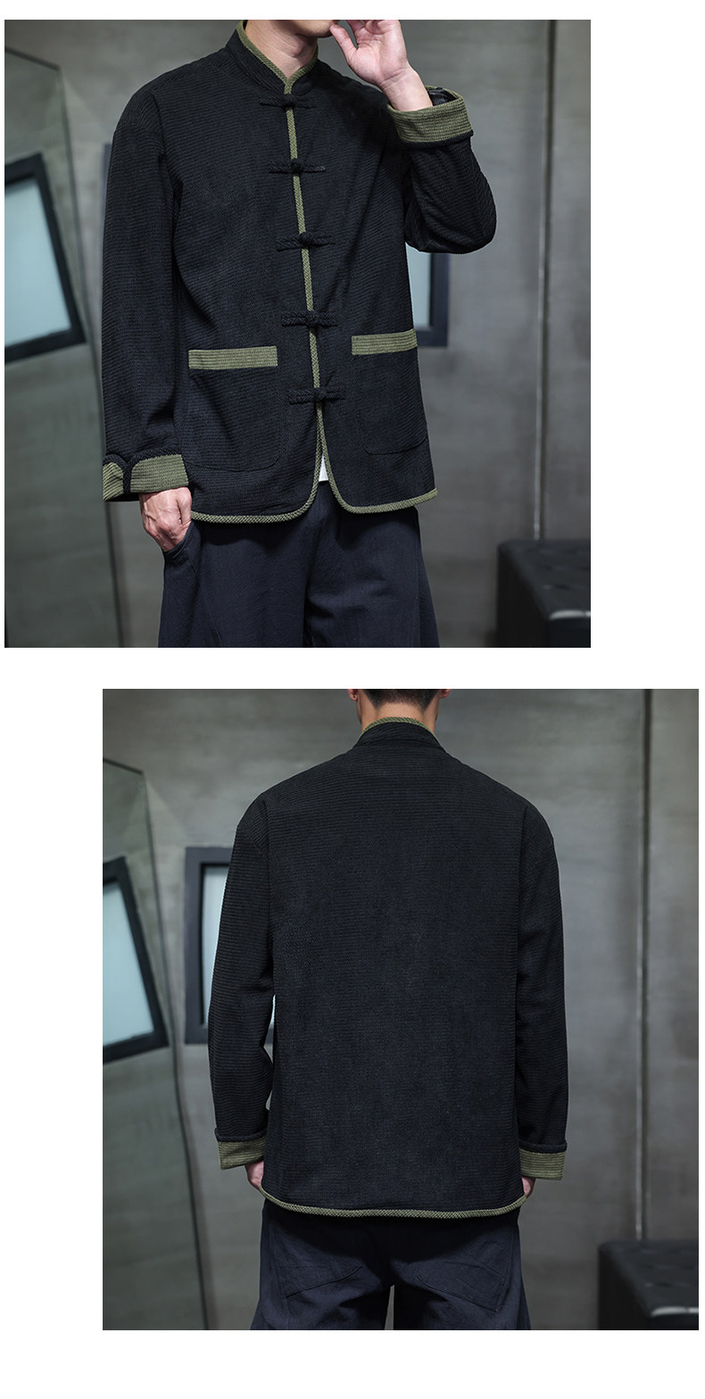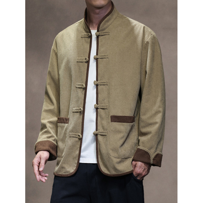 新中式春秋休閒盤釦唐裝外套風男裝復古風大碼漢服夾克居士服