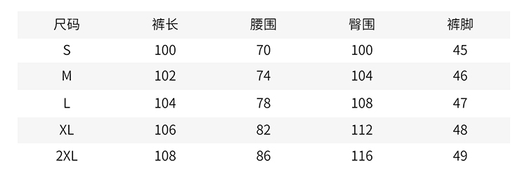 | 褲長 | 長褲 |