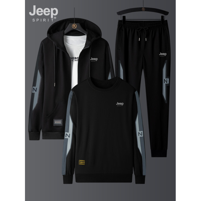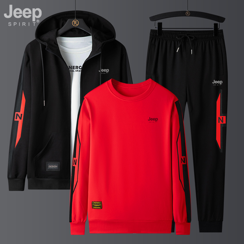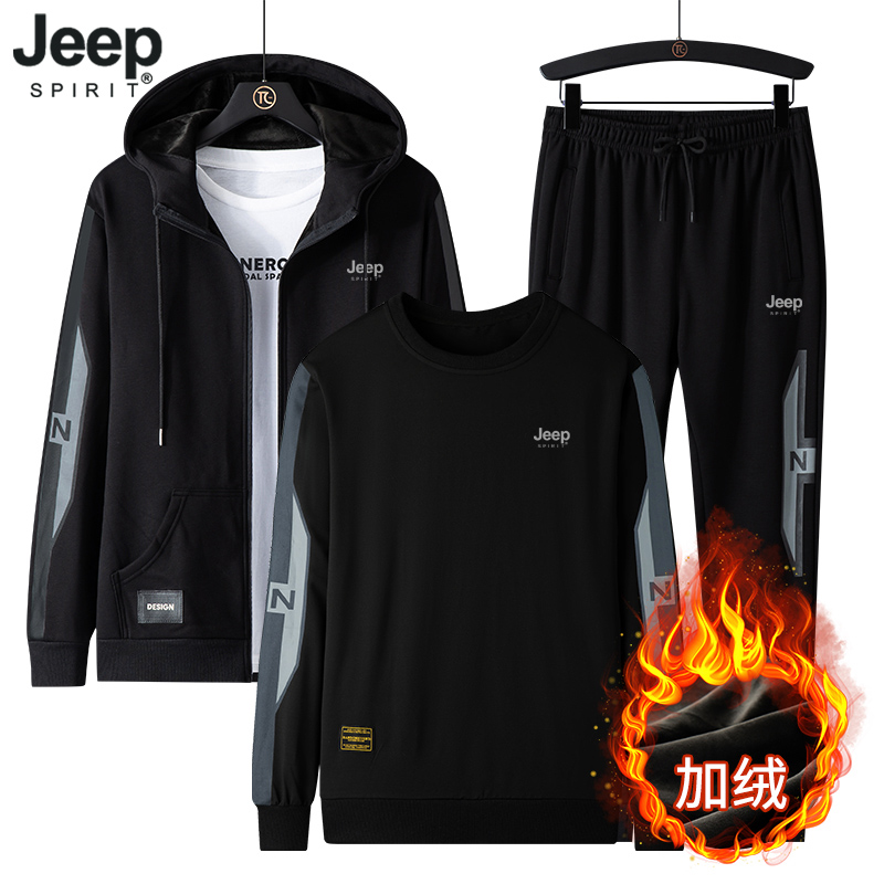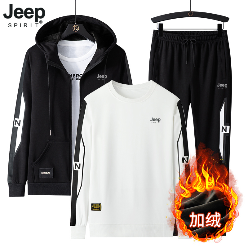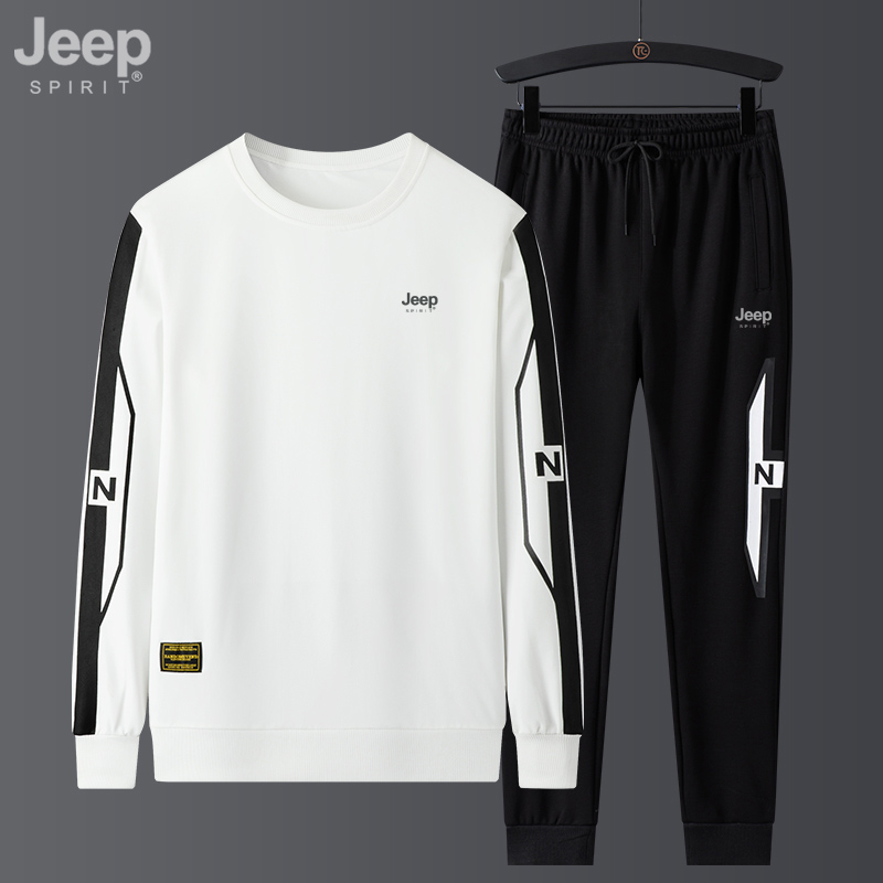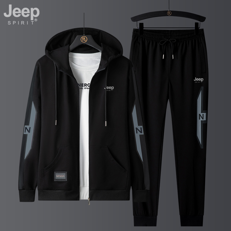 Jeep運動套裝男士春秋寬松衛衣衛褲開衫外套秋裝跑步休閒男裝一套