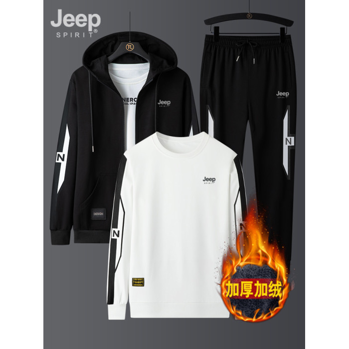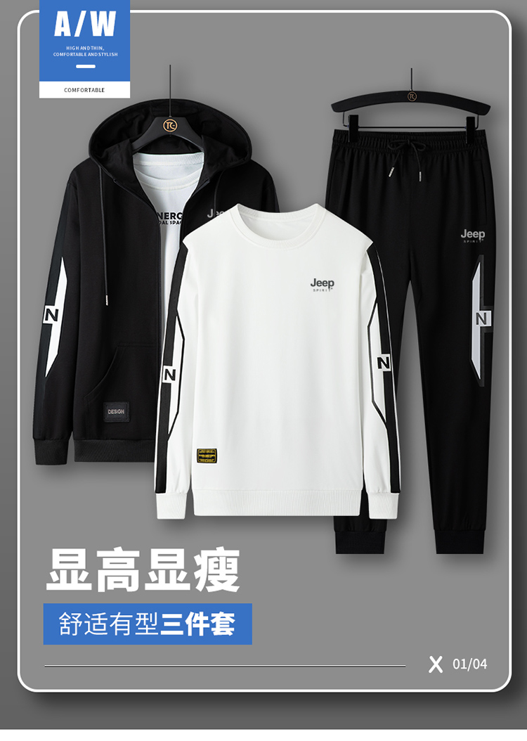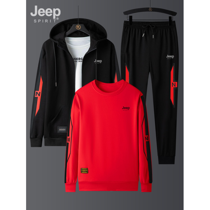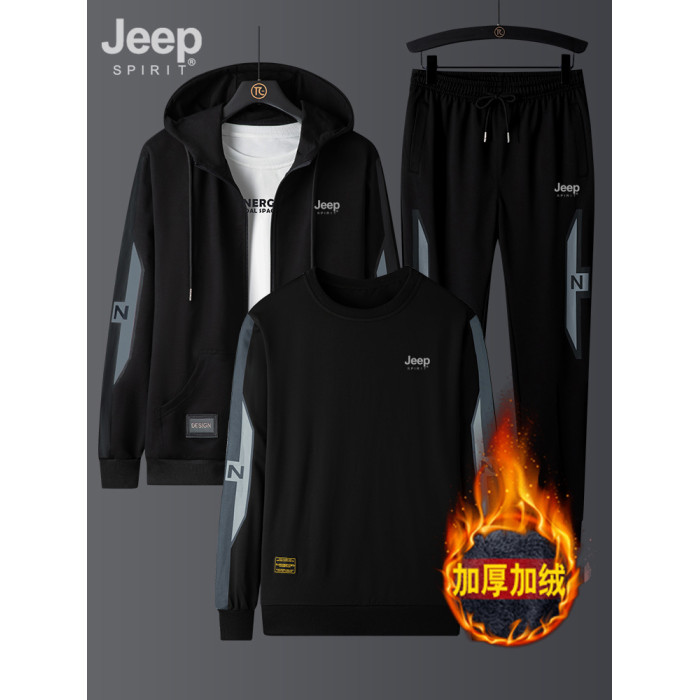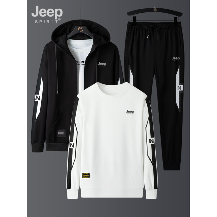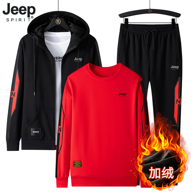 Jeep運動套裝男士春秋寬松衛衣衛褲開衫外套秋裝跑步休閒男裝一套