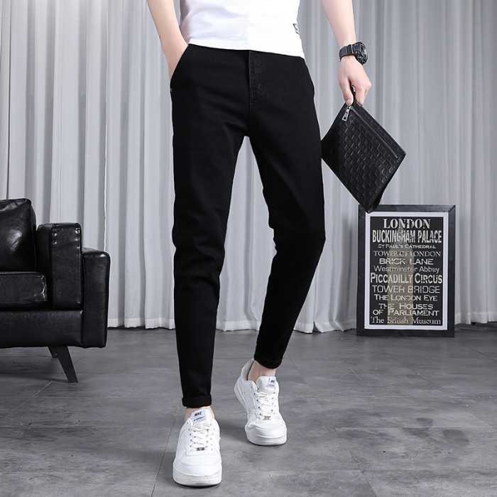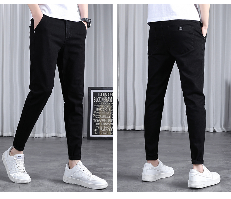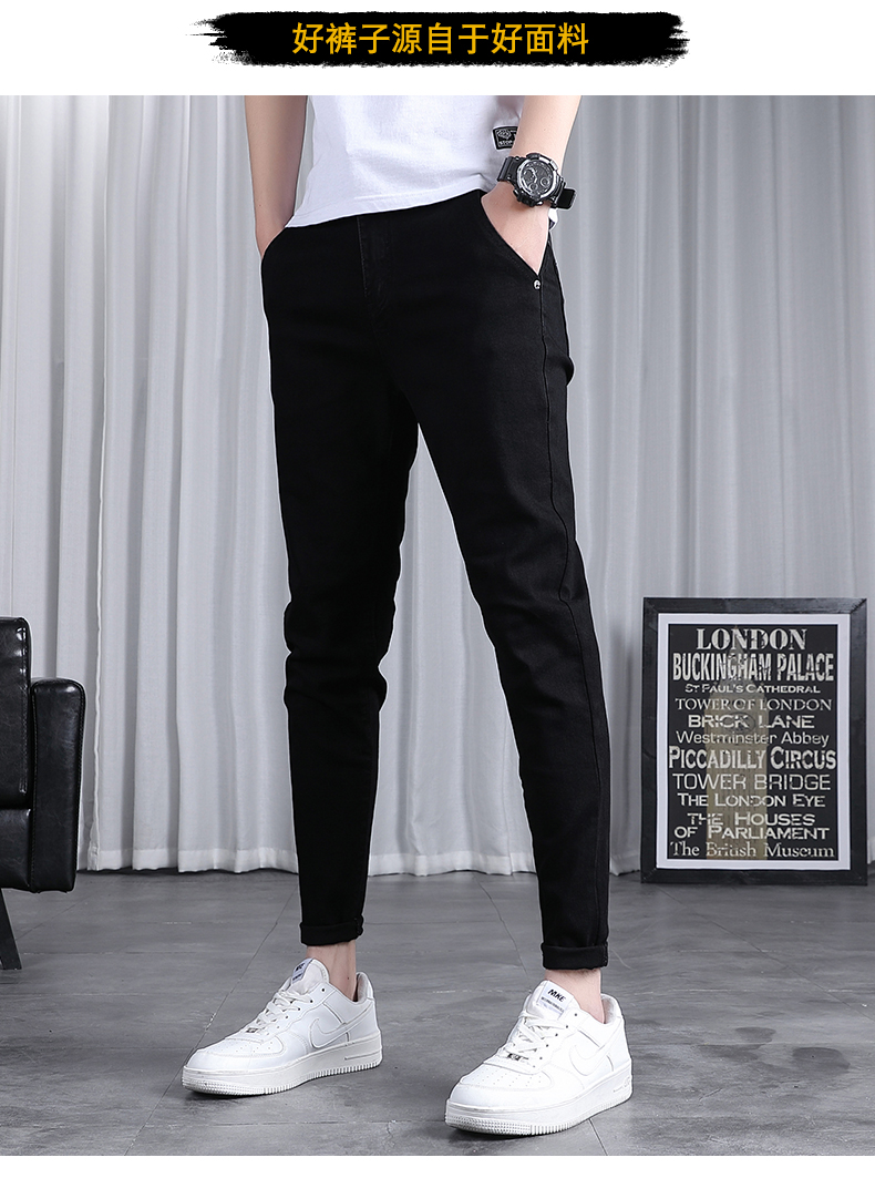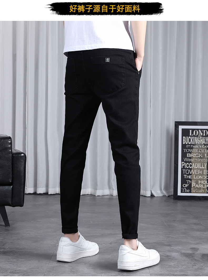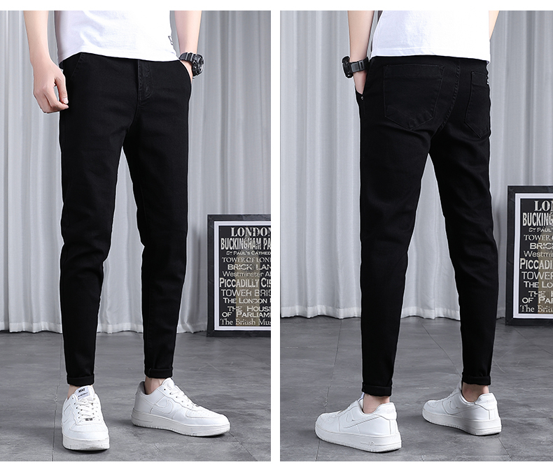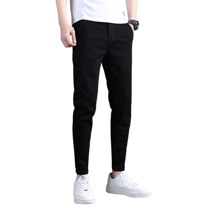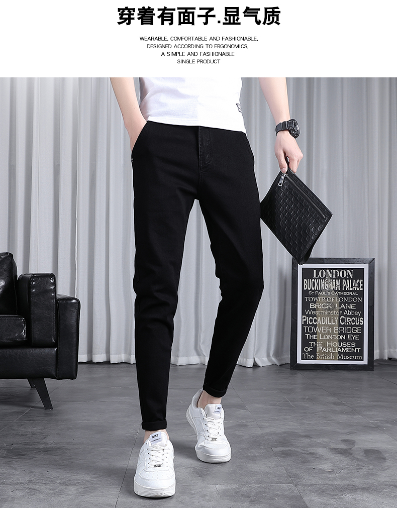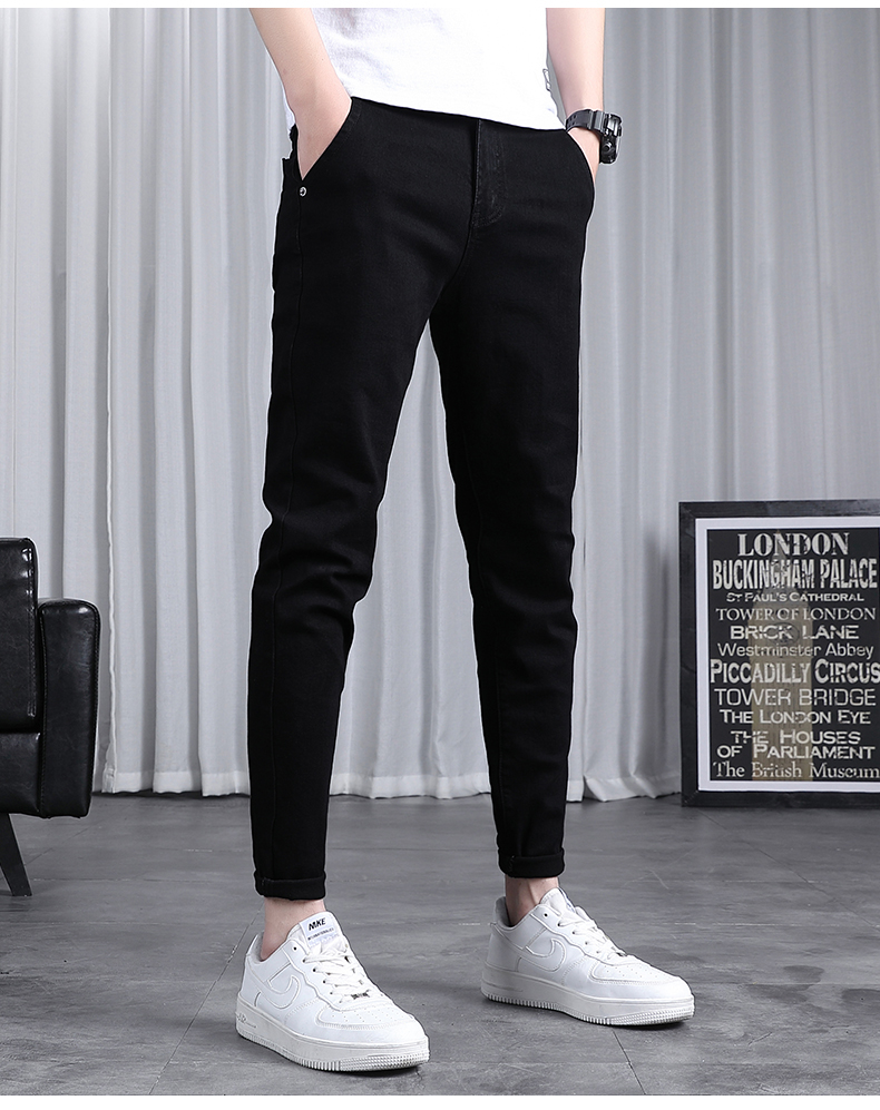 春秋季牛仔褲男士修身小腳潮流韓版百搭2025新款九分黑色長褲子男