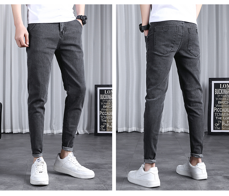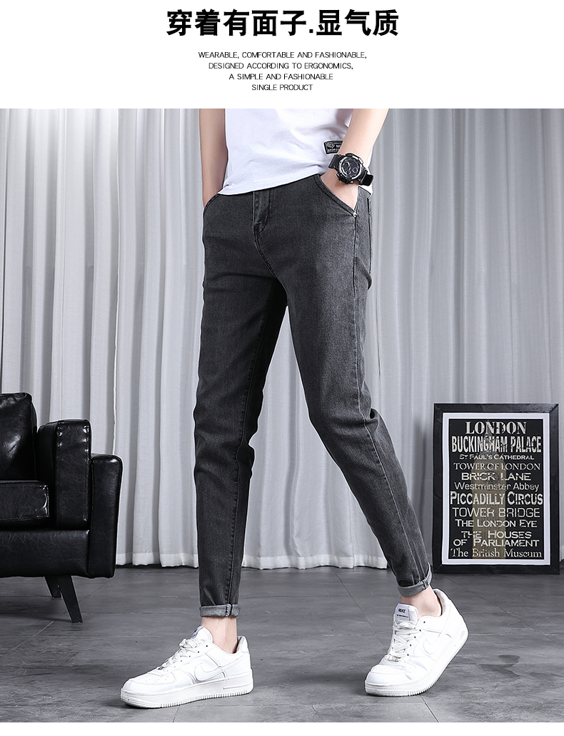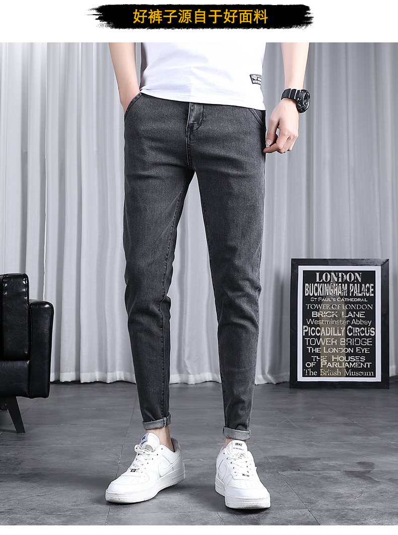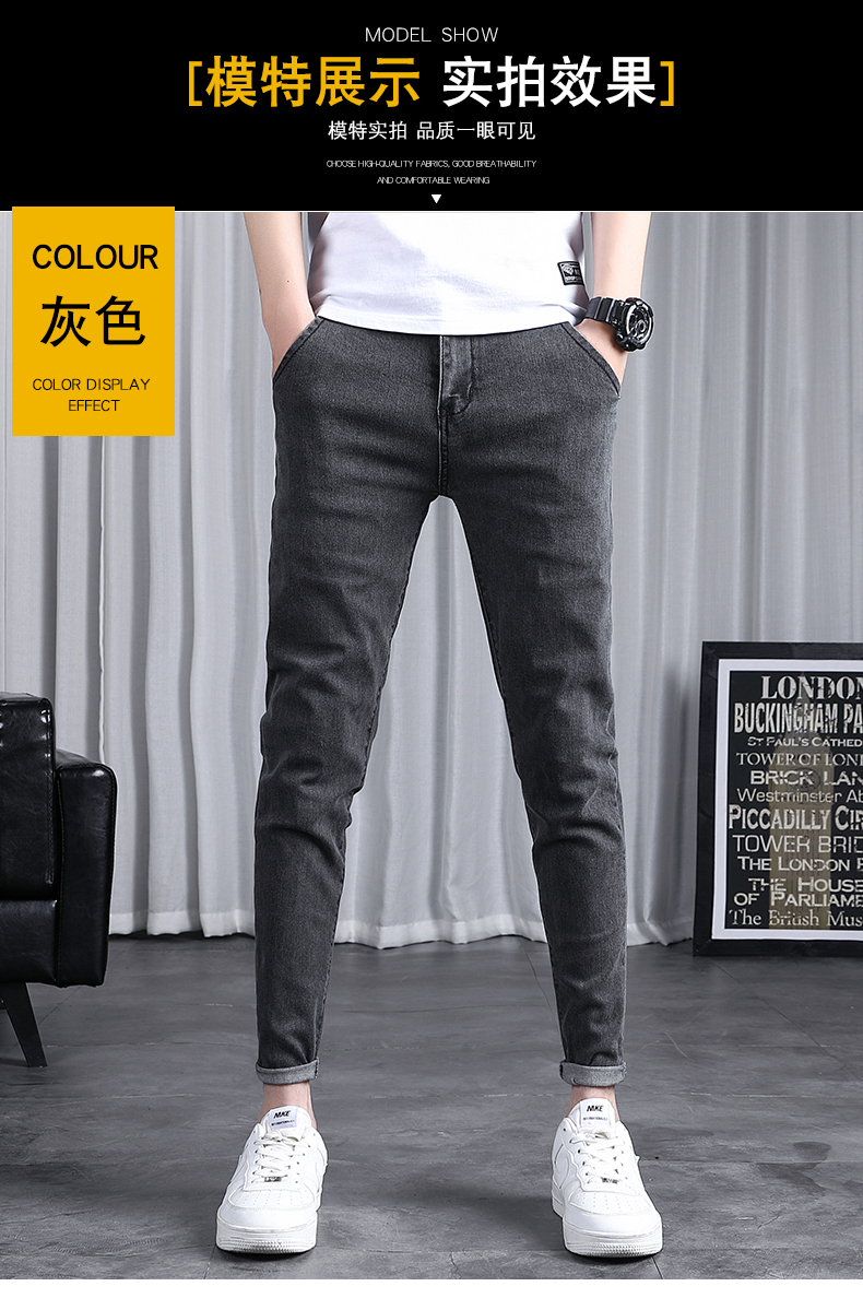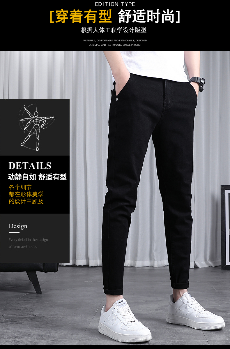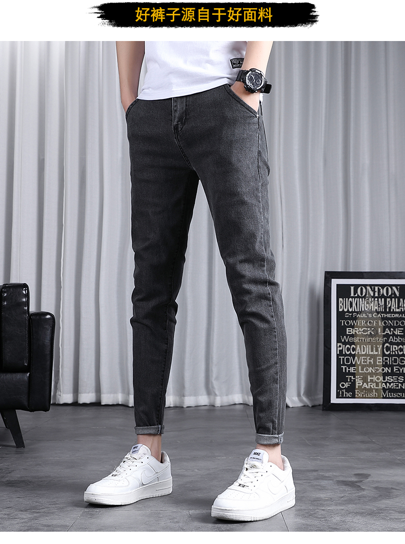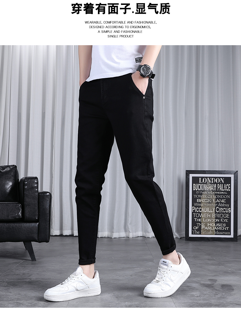 春秋季牛仔褲男士修身小腳潮流韓版百搭2025新款九分黑色長褲子男