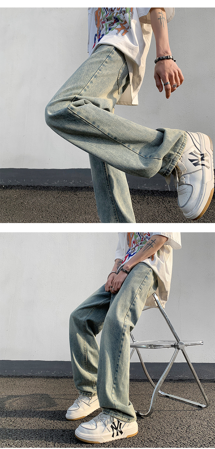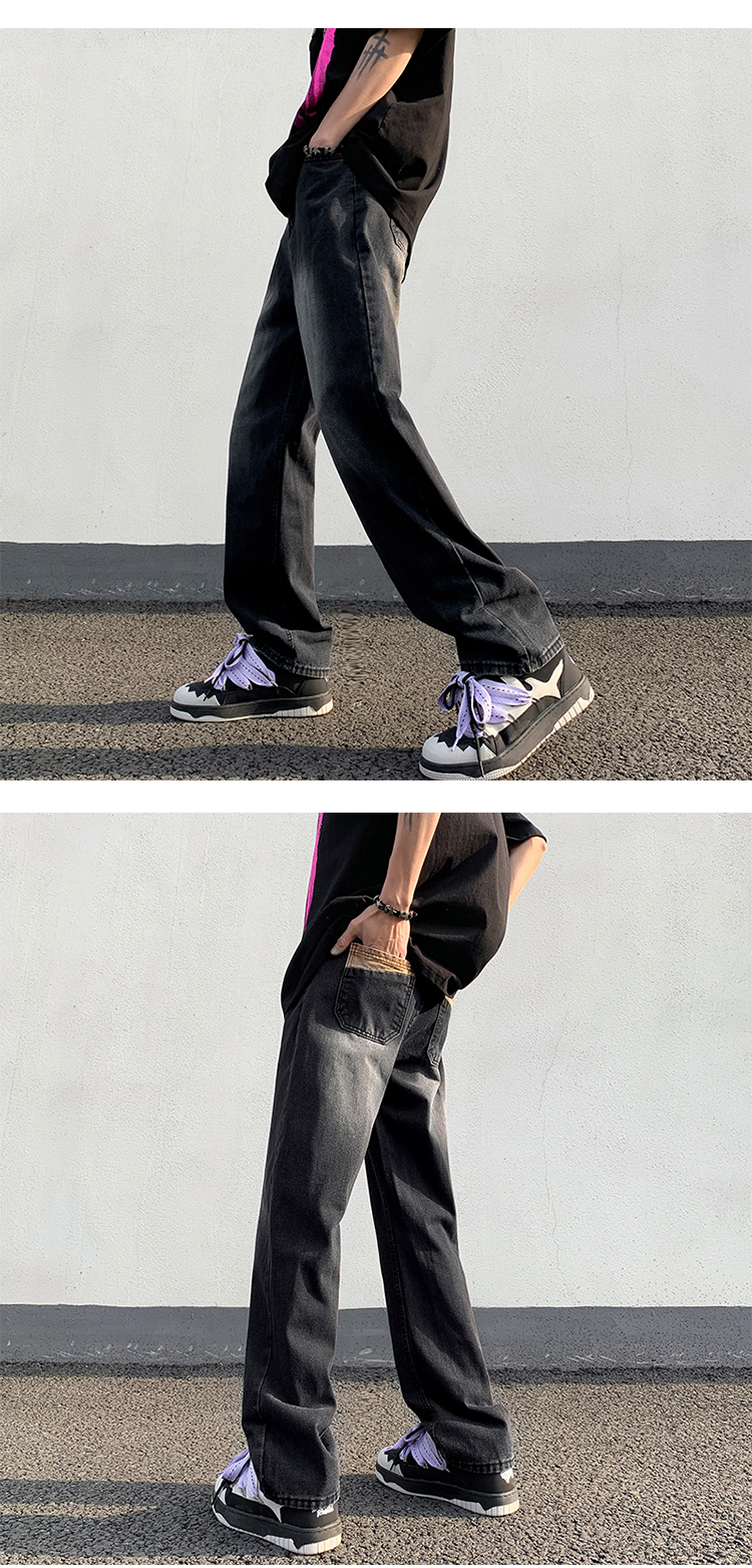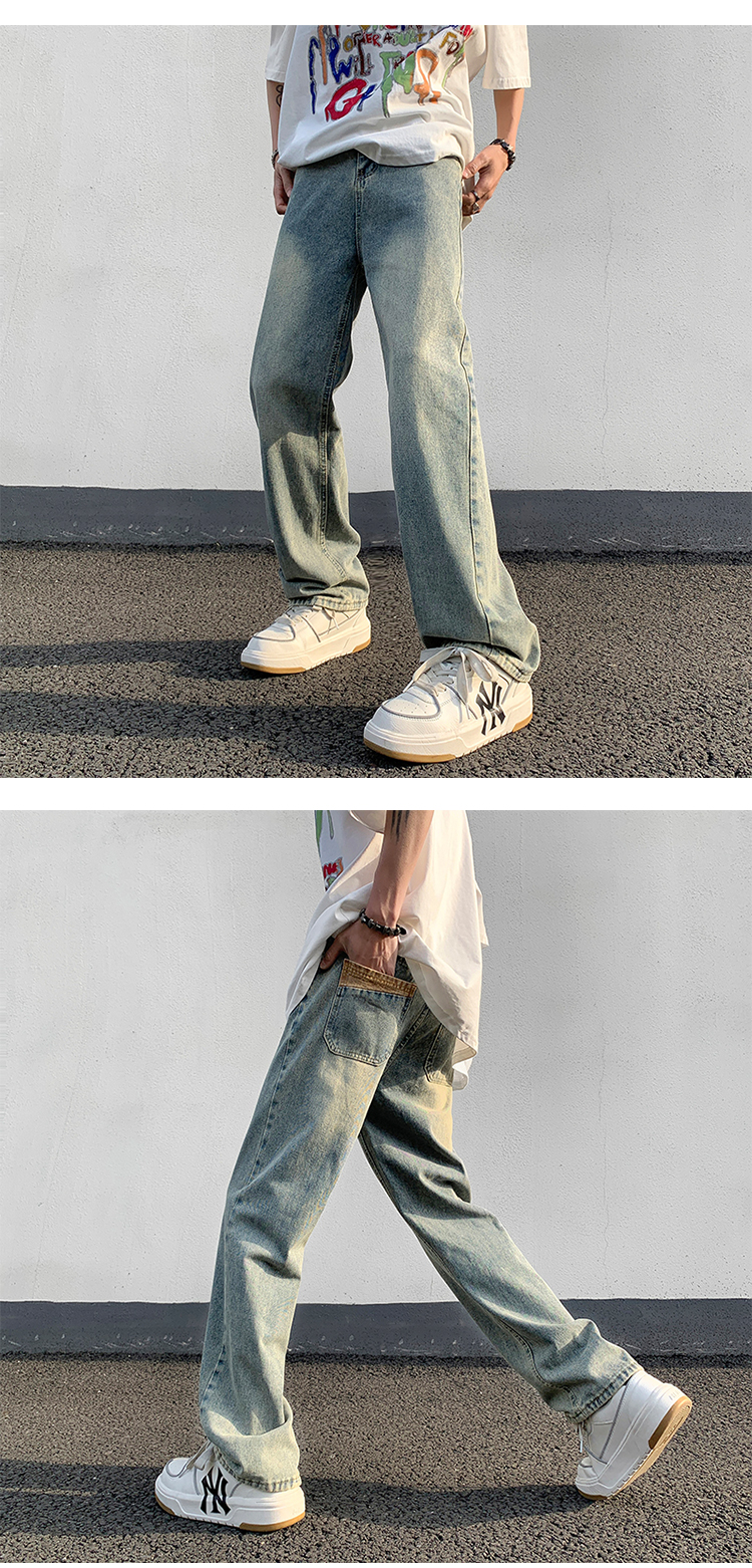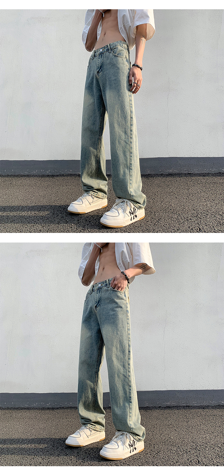 美式復古牛仔褲男寬松直筒褲子高街潮牌百搭水洗做舊濶腿休閒長褲