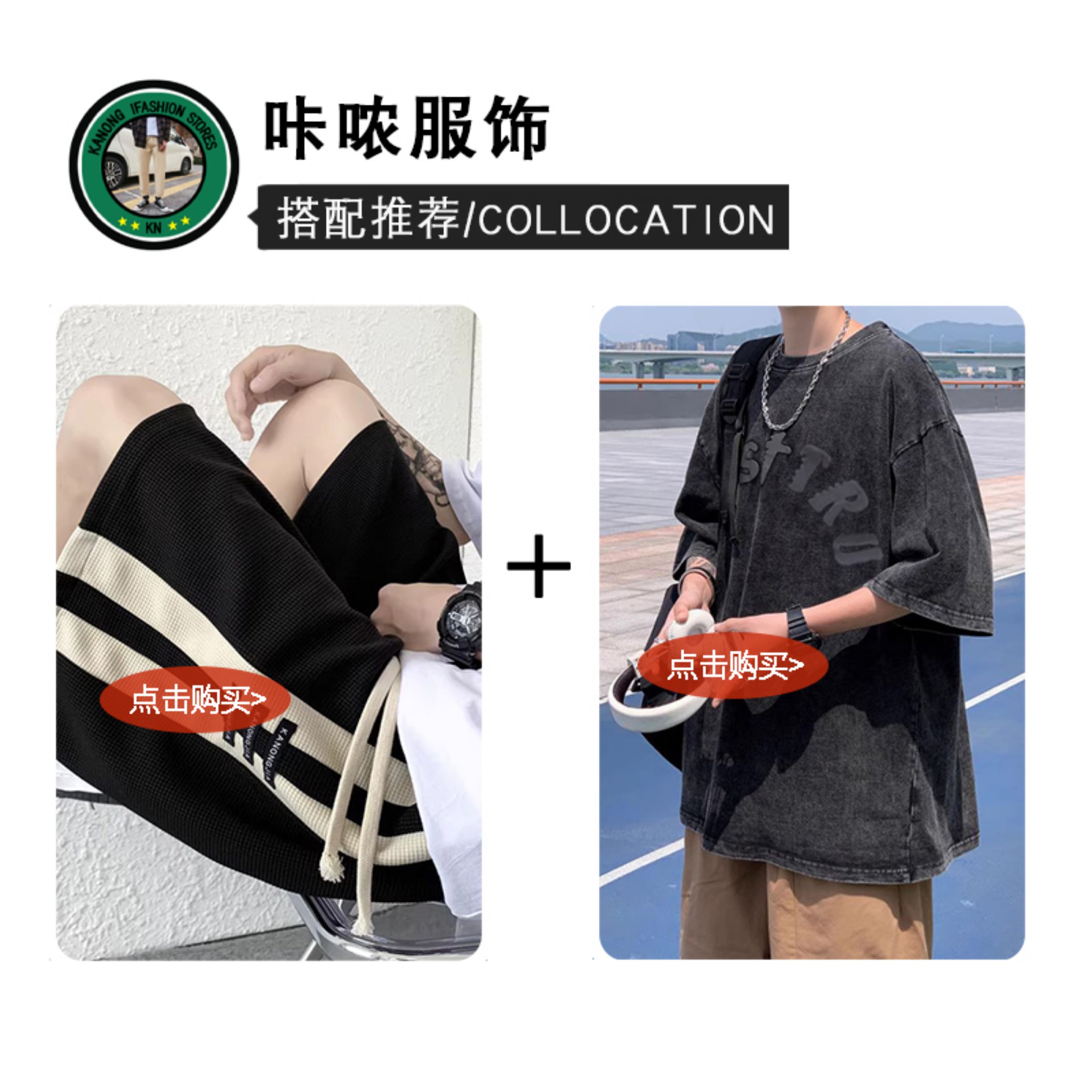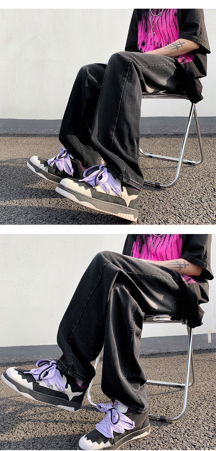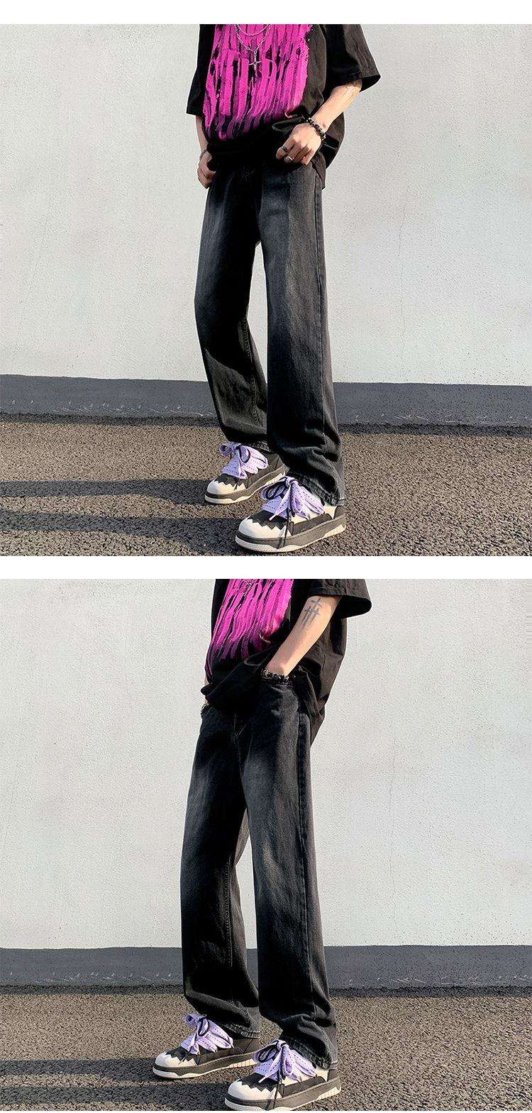美式復古牛仔褲男寬松直筒褲子高街潮牌百搭水洗做舊濶腿休閒長褲