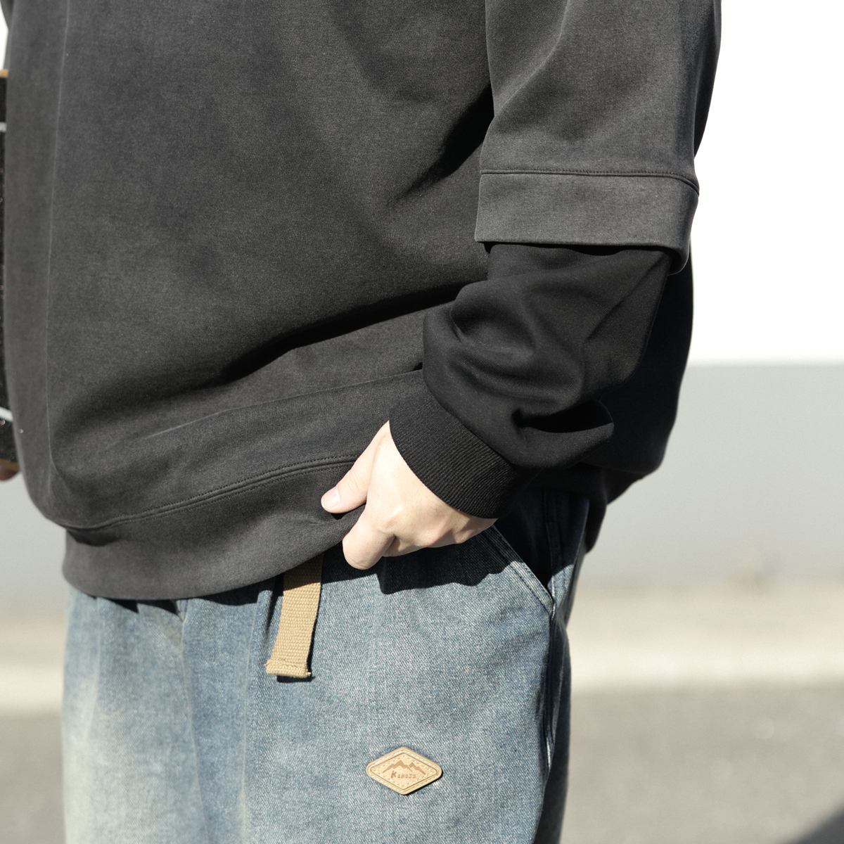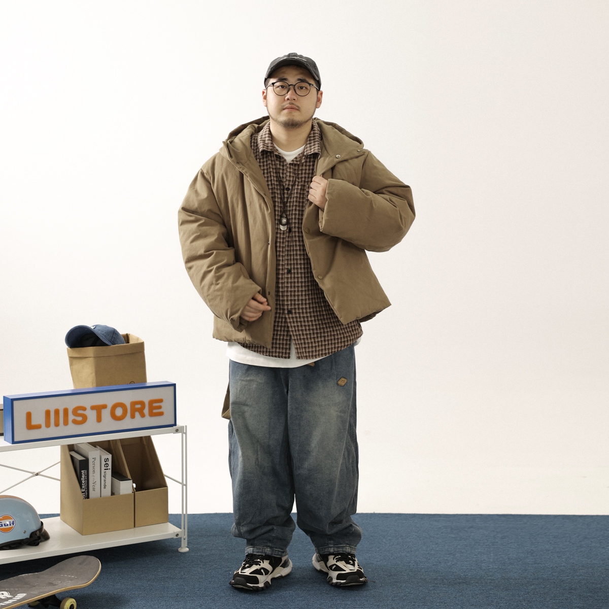 LIIISTORE2024春款復古水洗做舊牛仔褲可調腰圍濶腿直筒休閒長褲