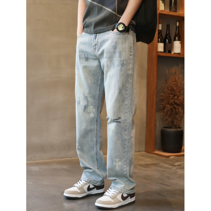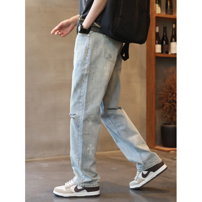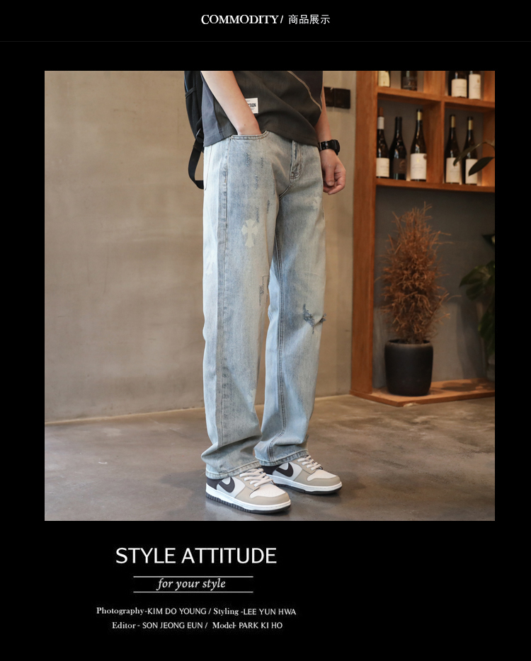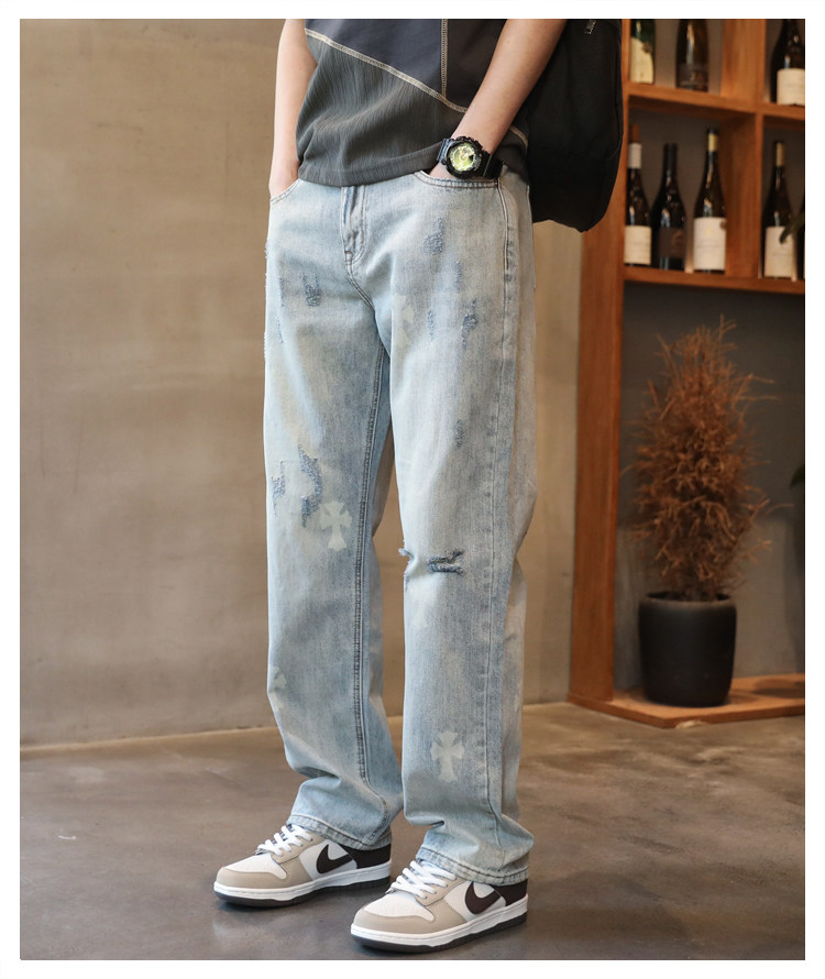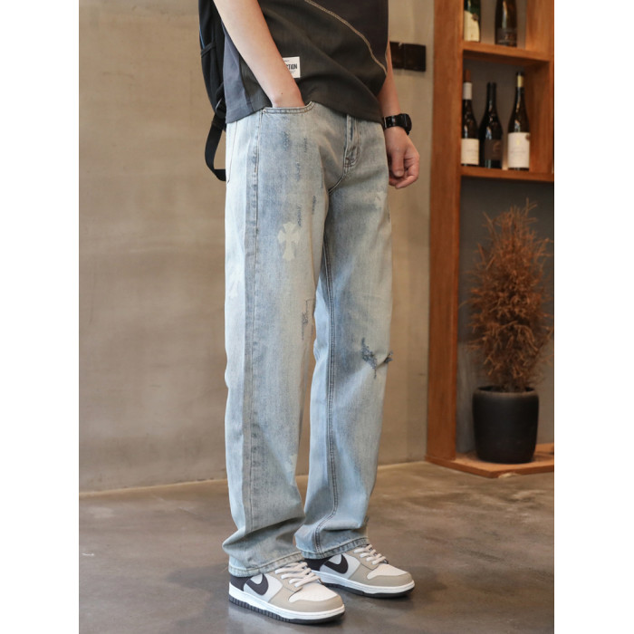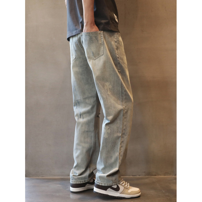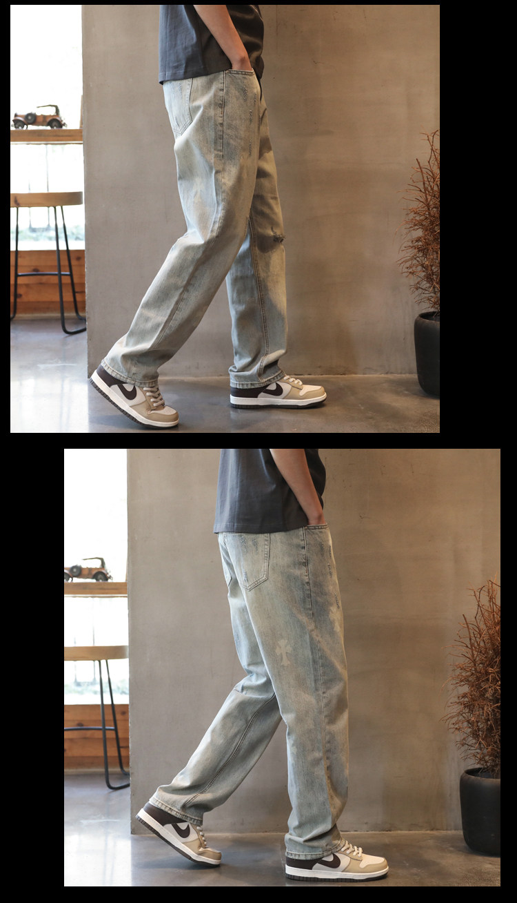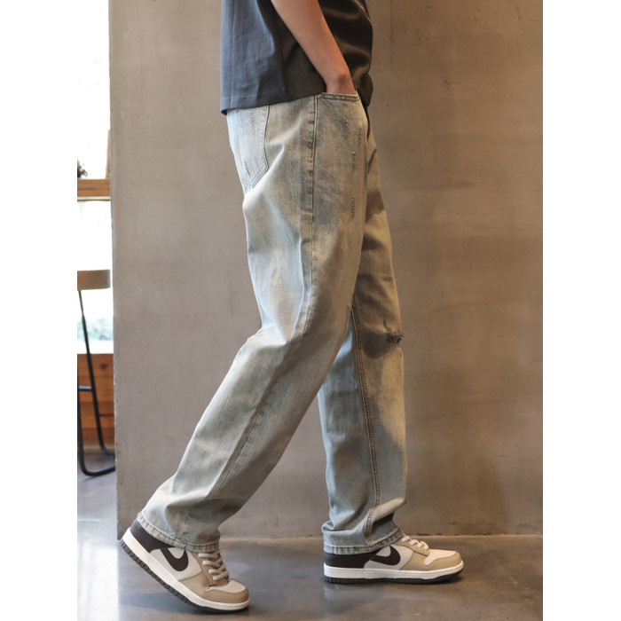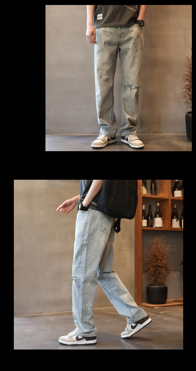 破洞牛仔褲男士直筒寬松褲子潮牌2025春秋季新款痞帥休閒淺色初秋