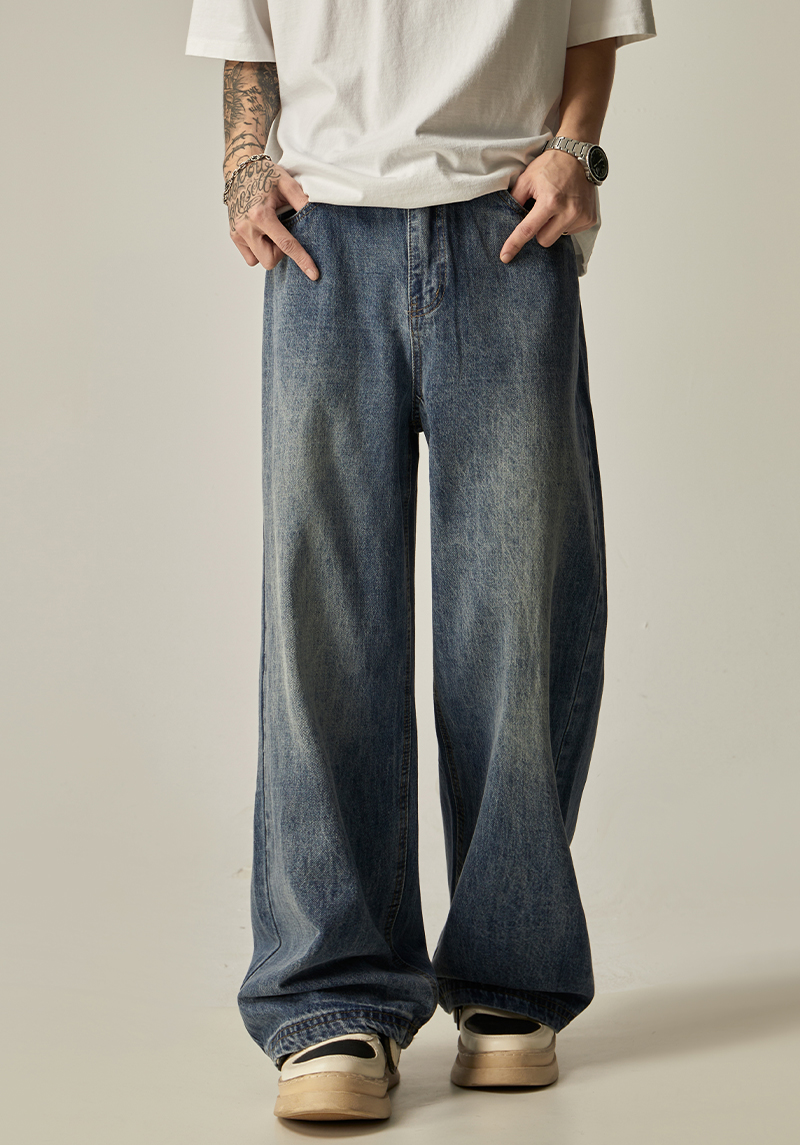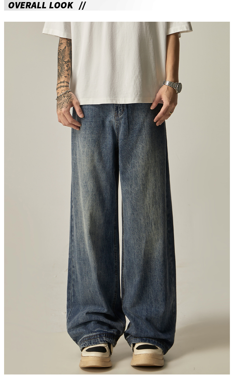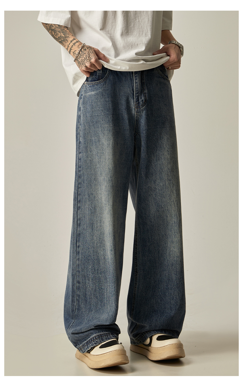 ISIETS復古cleanfit直筒褲子男美式高街寬松濶腿牛仔褲休閒長褲潮