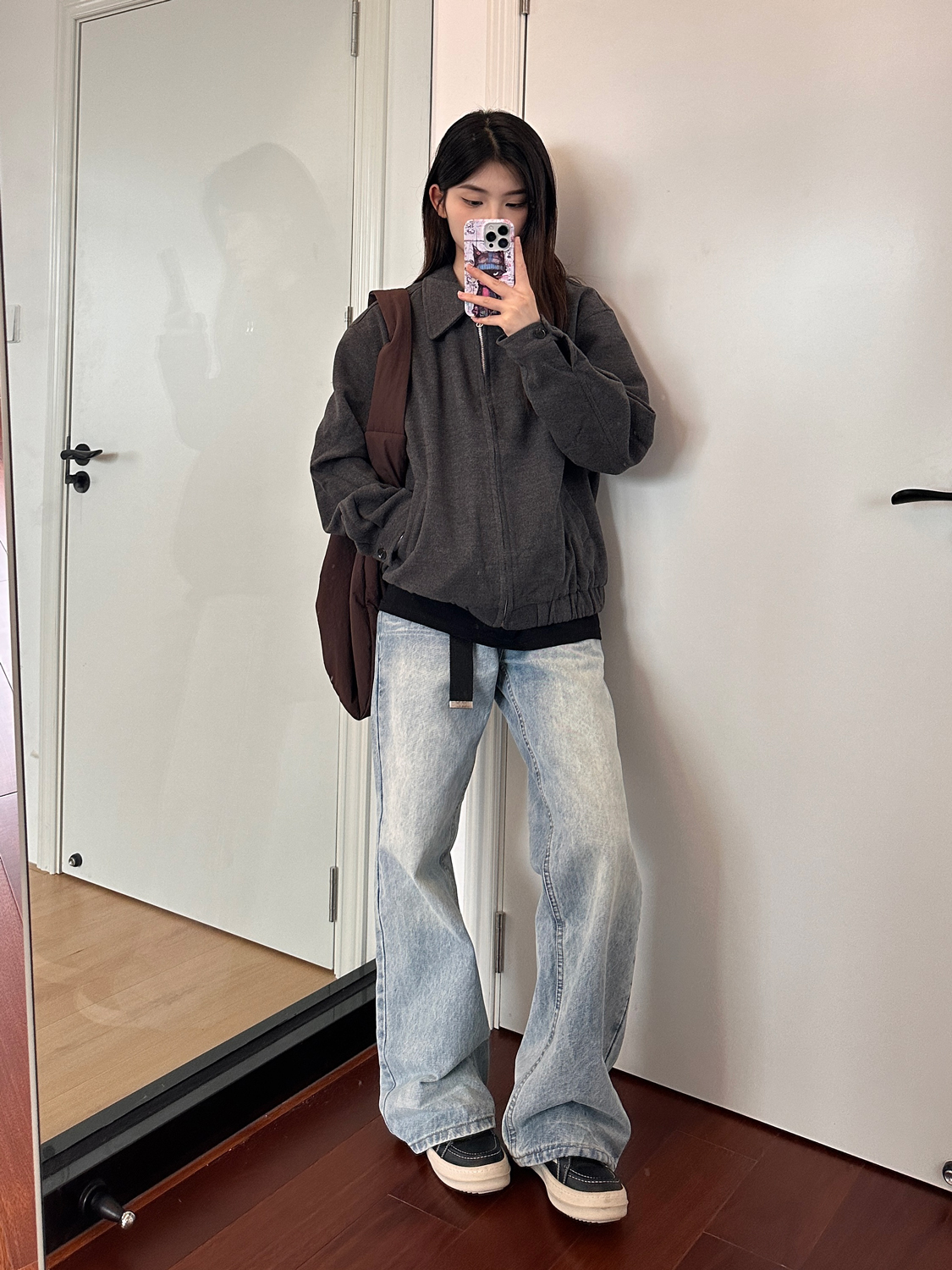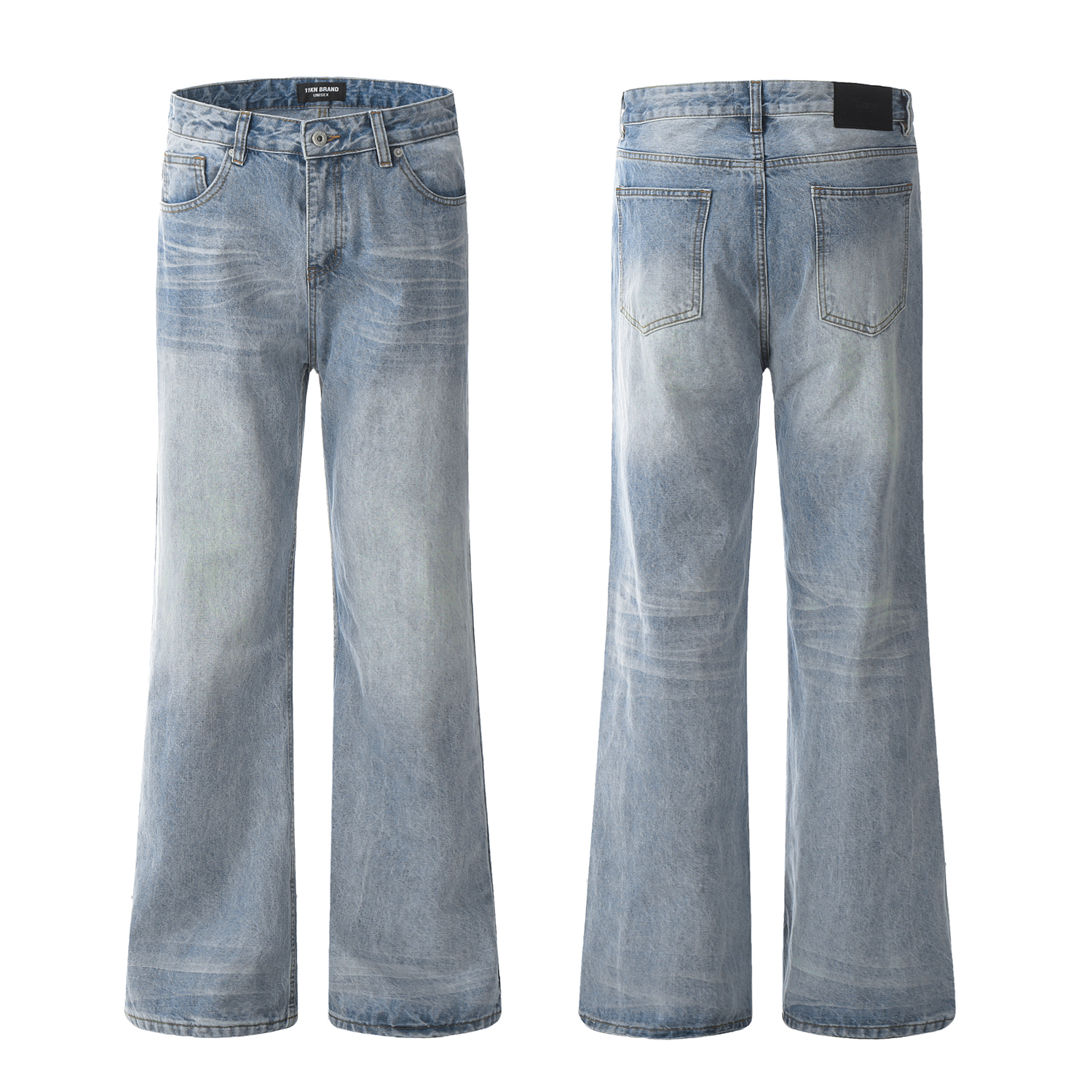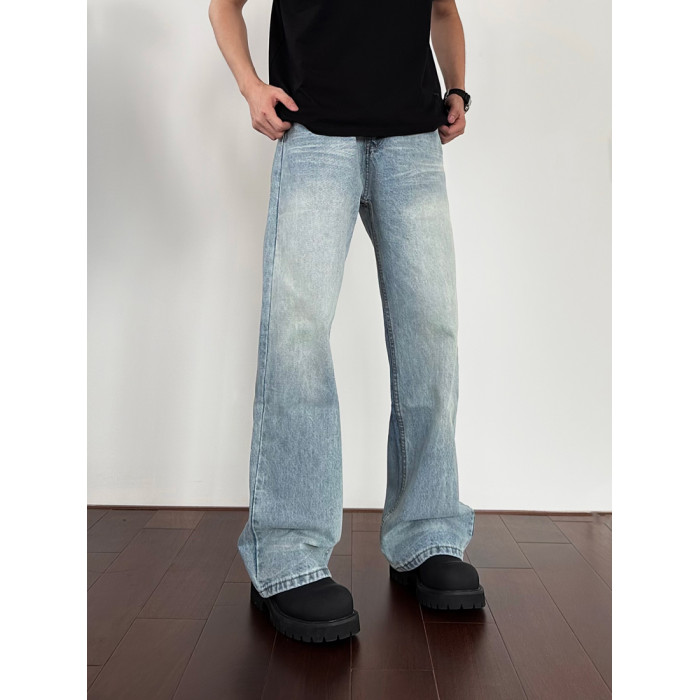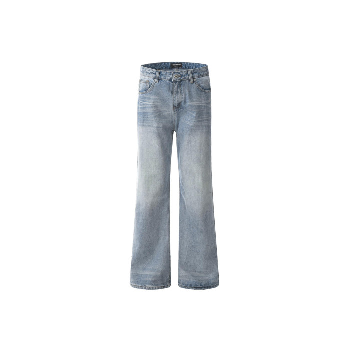 AHCN志存高遠美式水洗直筒濶腿牛仔褲男女寬松cleanfit微喇長褲子