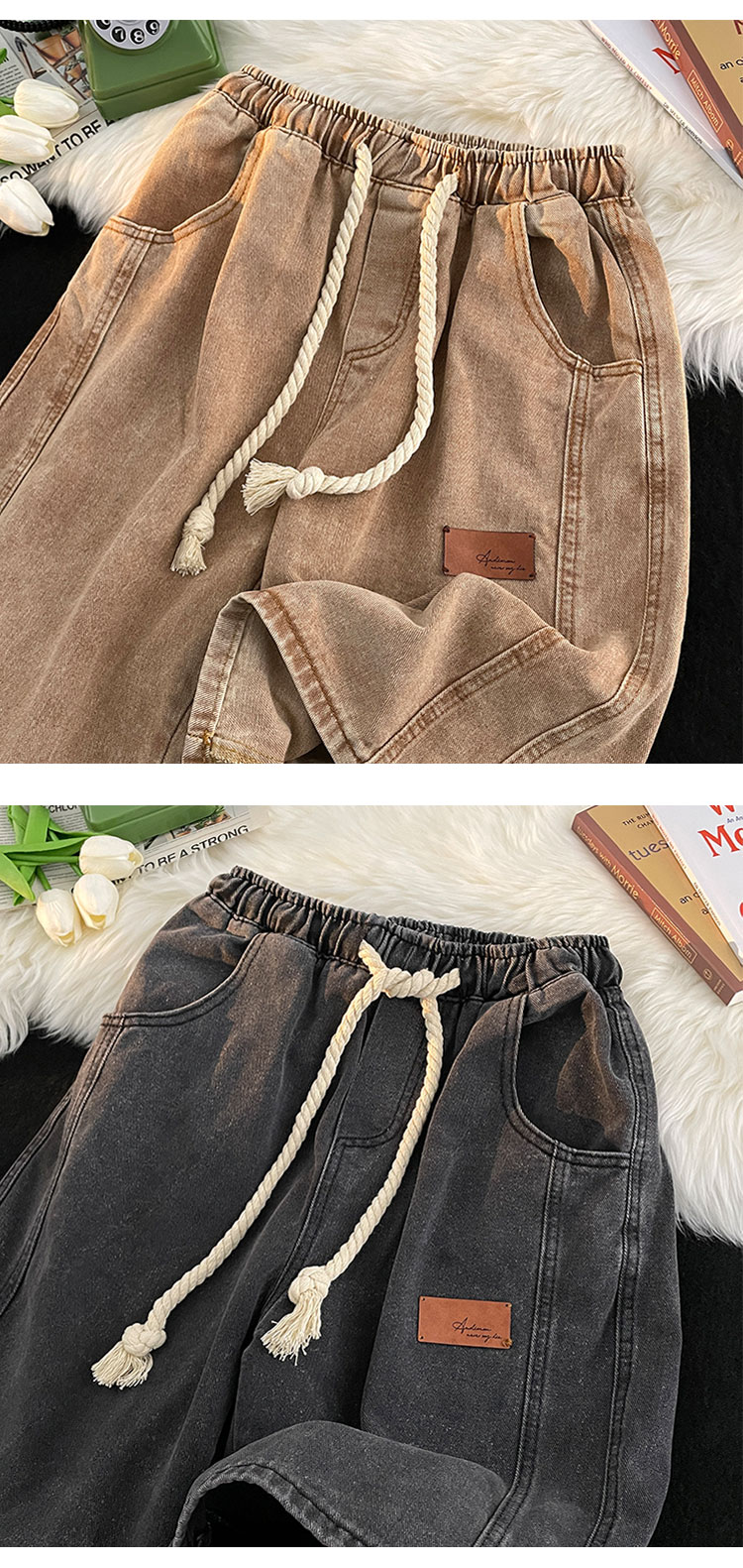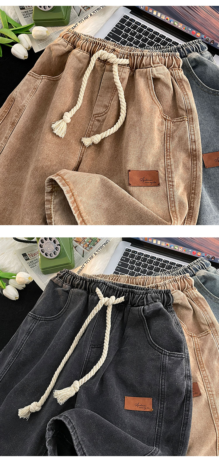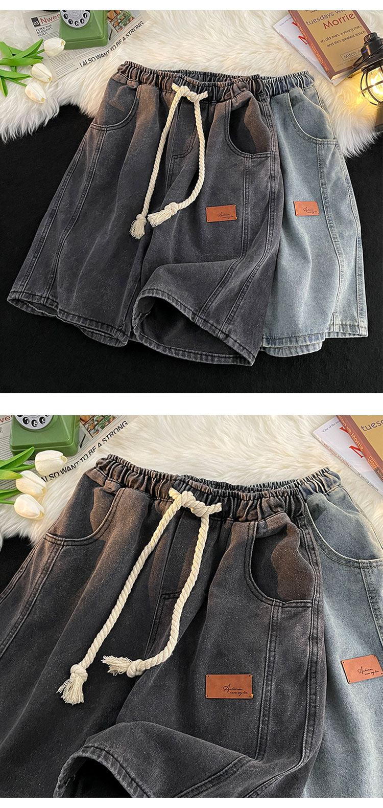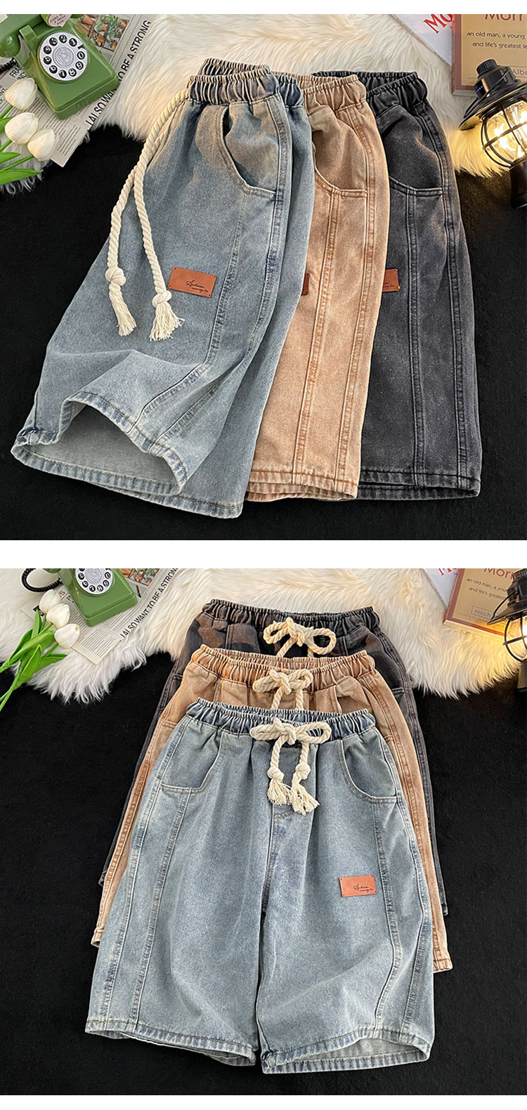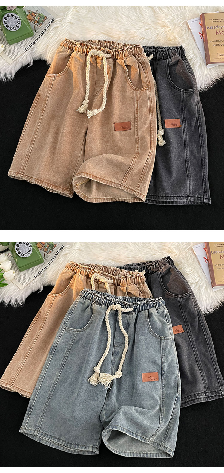 美式高街vintage牛仔短褲男款夏季潮牌痞帥寬松水洗松緊腰五分褲
