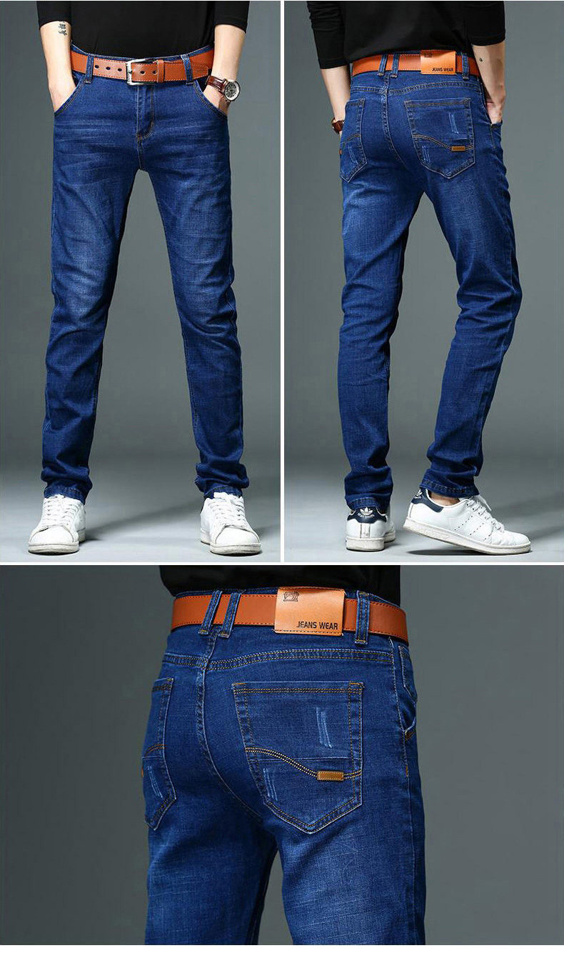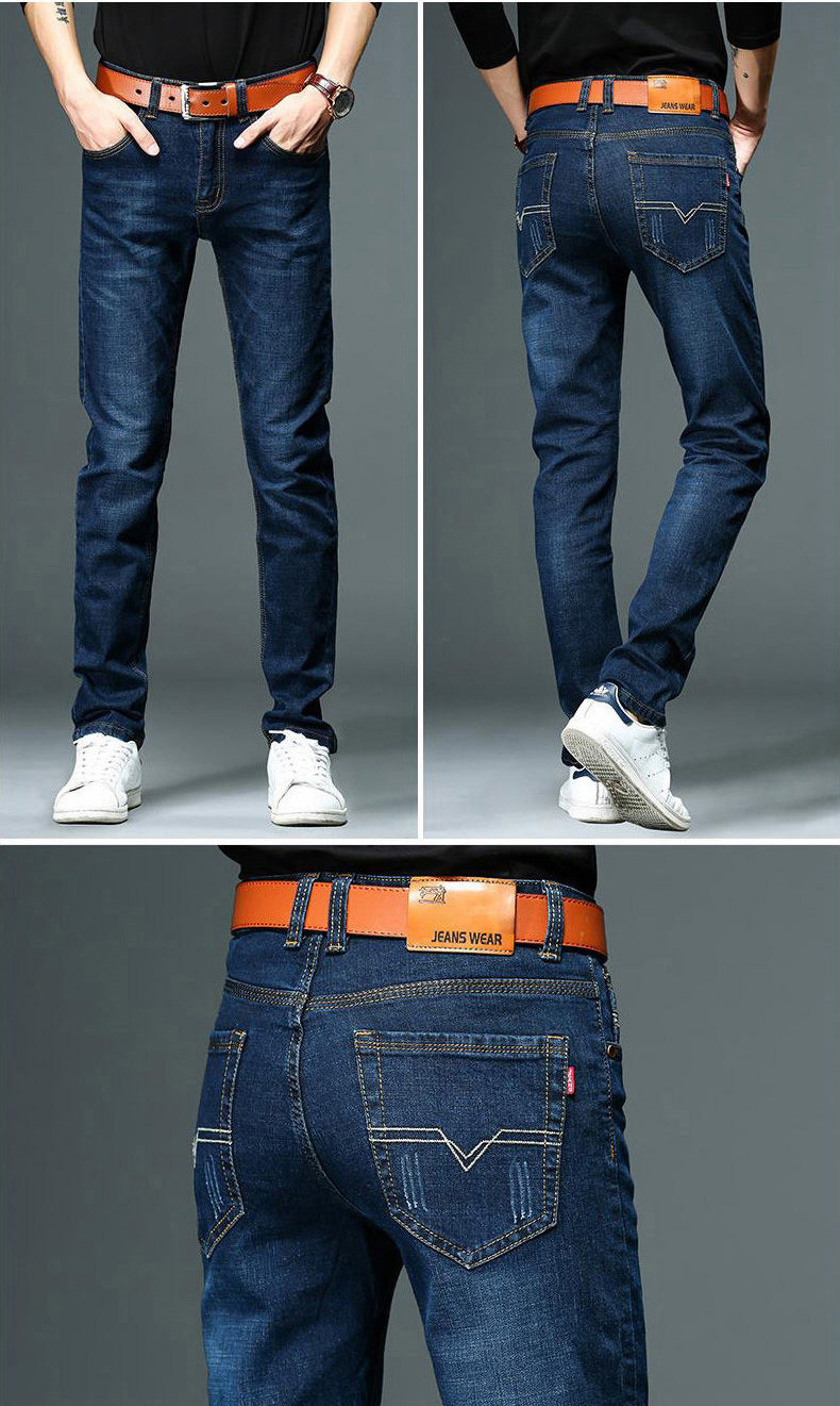男士牛仔褲加絨加厚寬鬆直筒2025新款冬季潮牌彈力藍色休閒長褲子