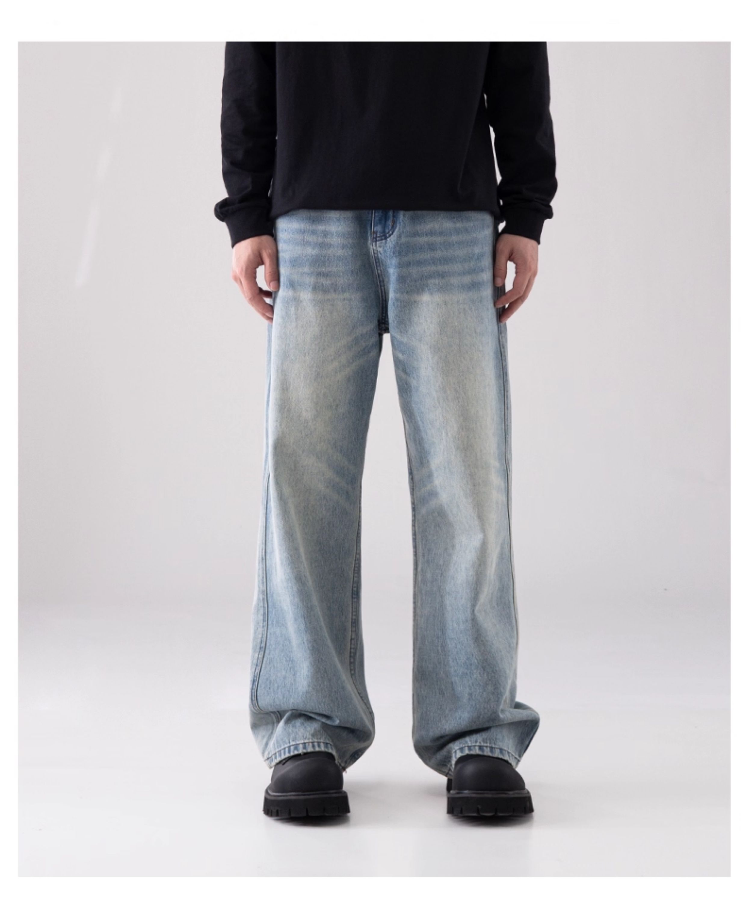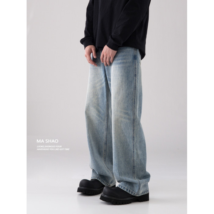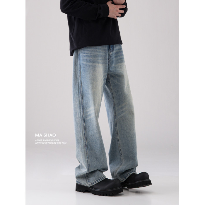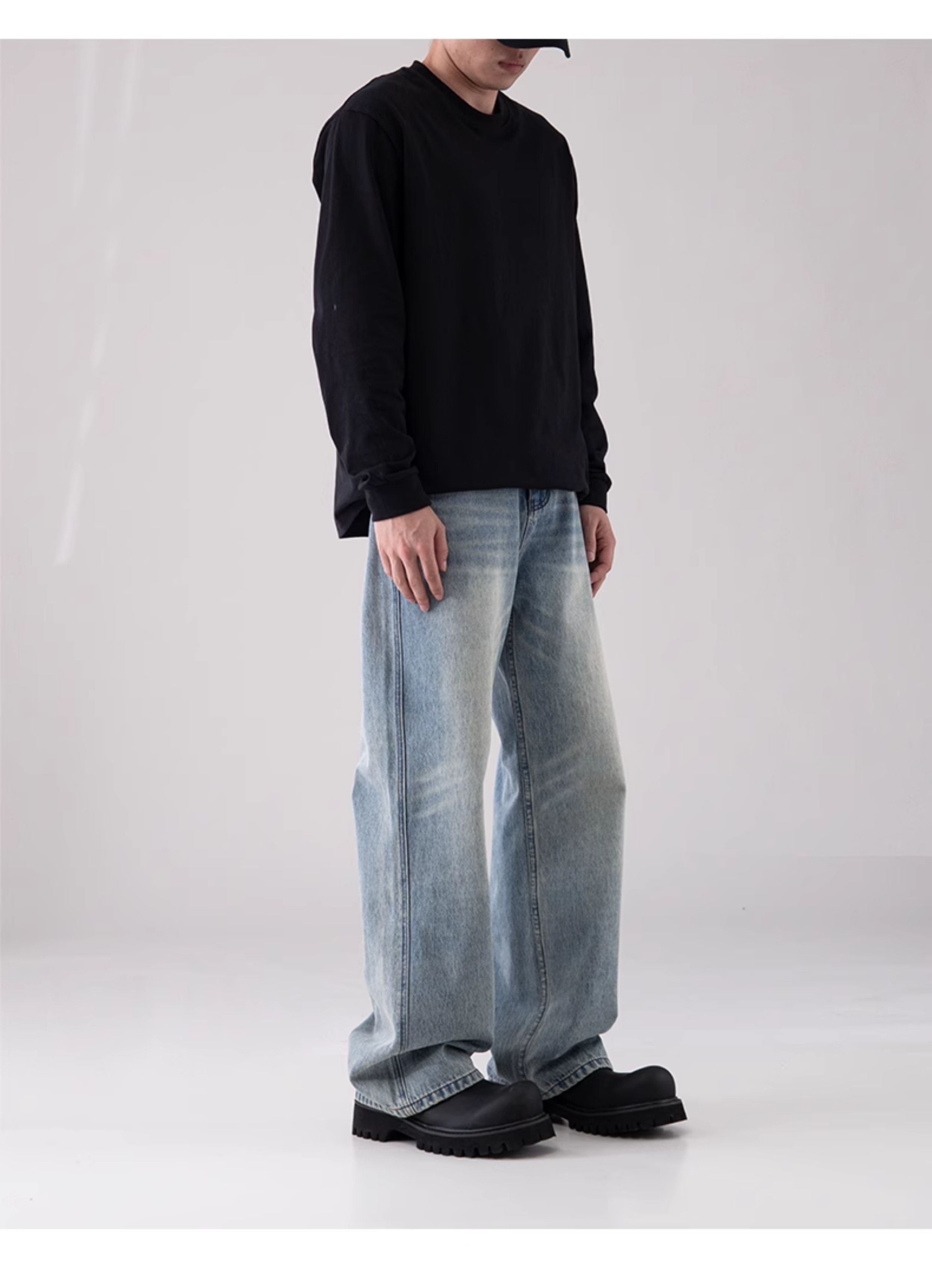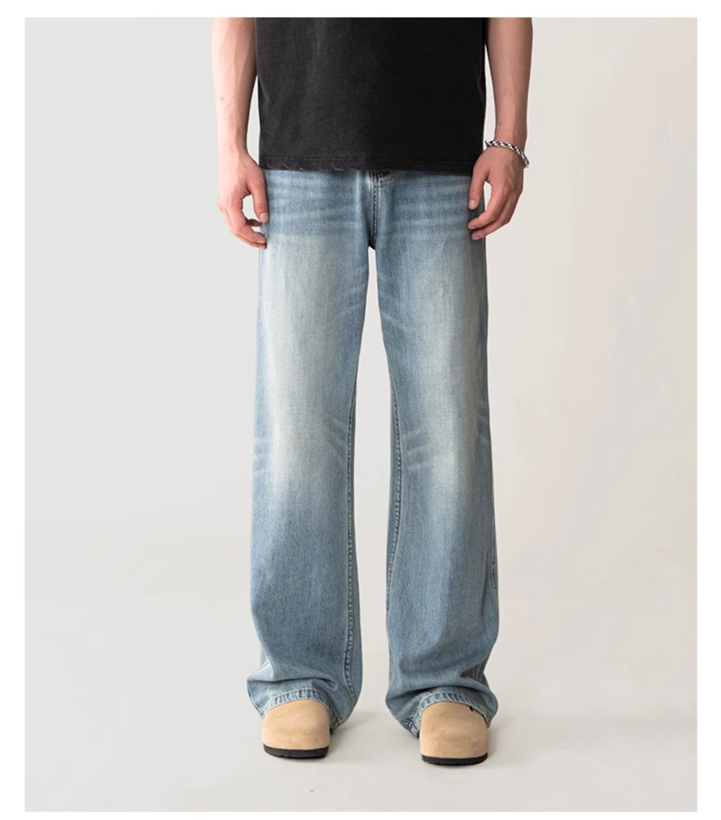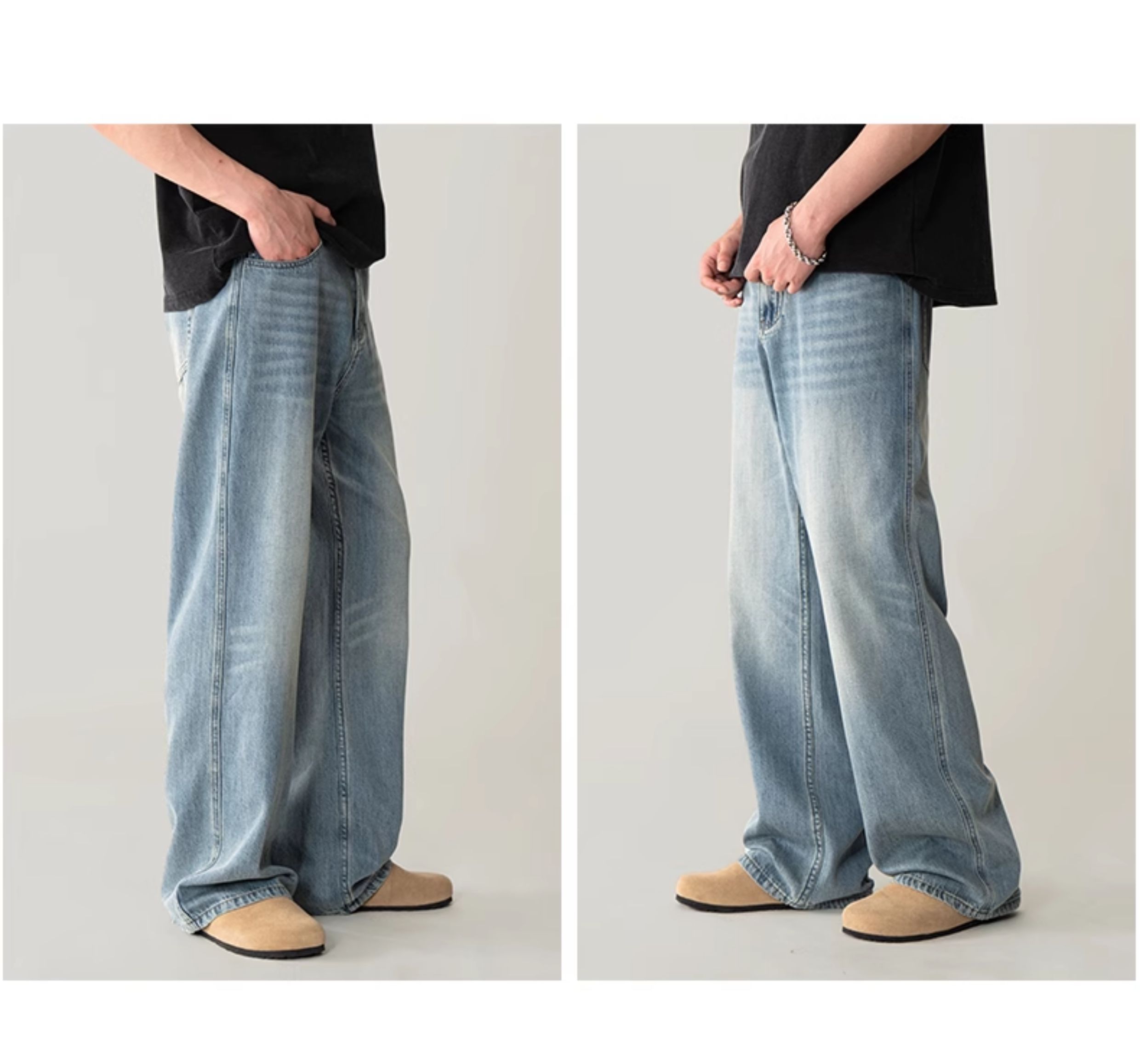 美式復古cleanfit淺藍色牛仔褲男直筒寬松濶腿長褲子2025秋季新款
