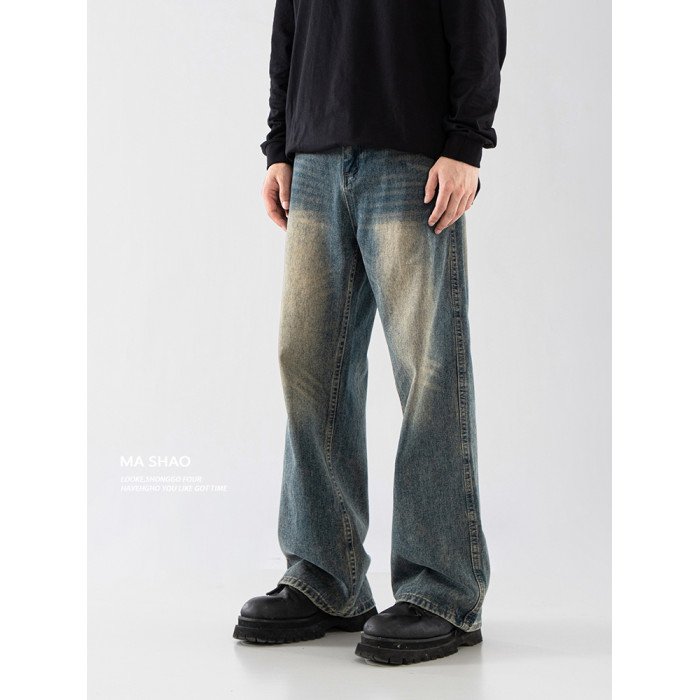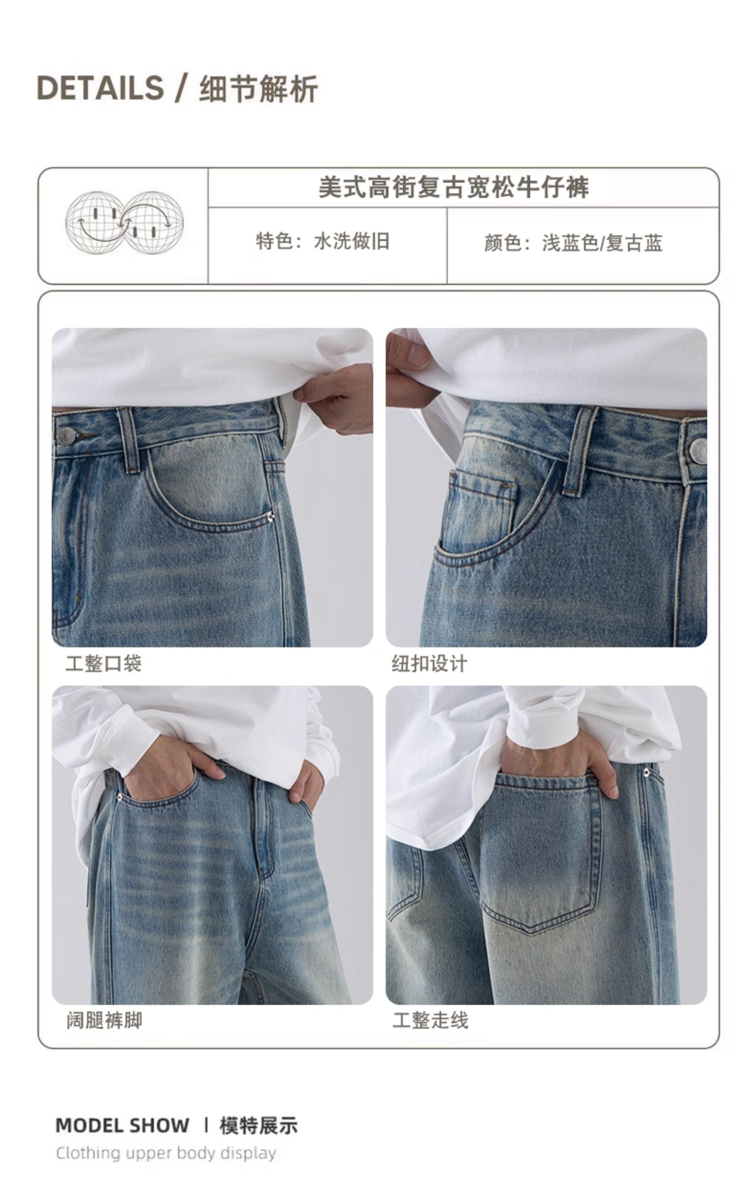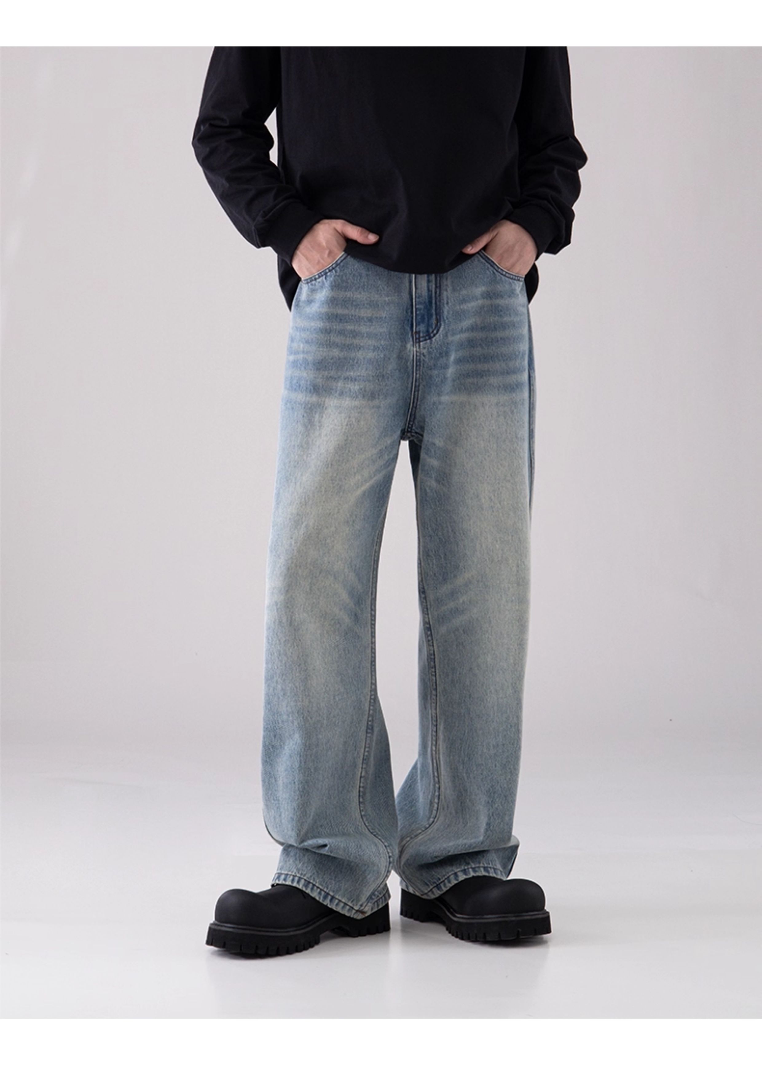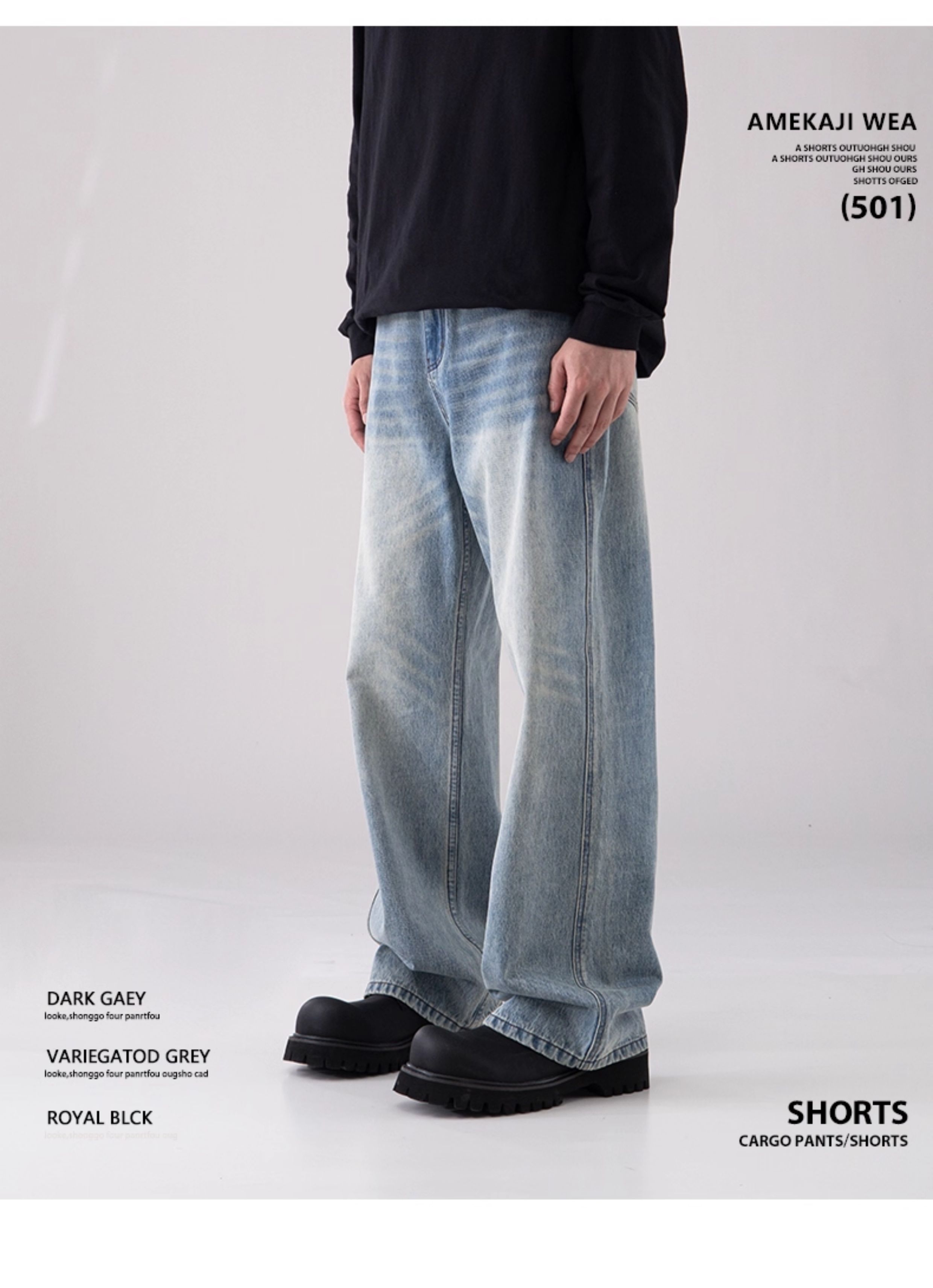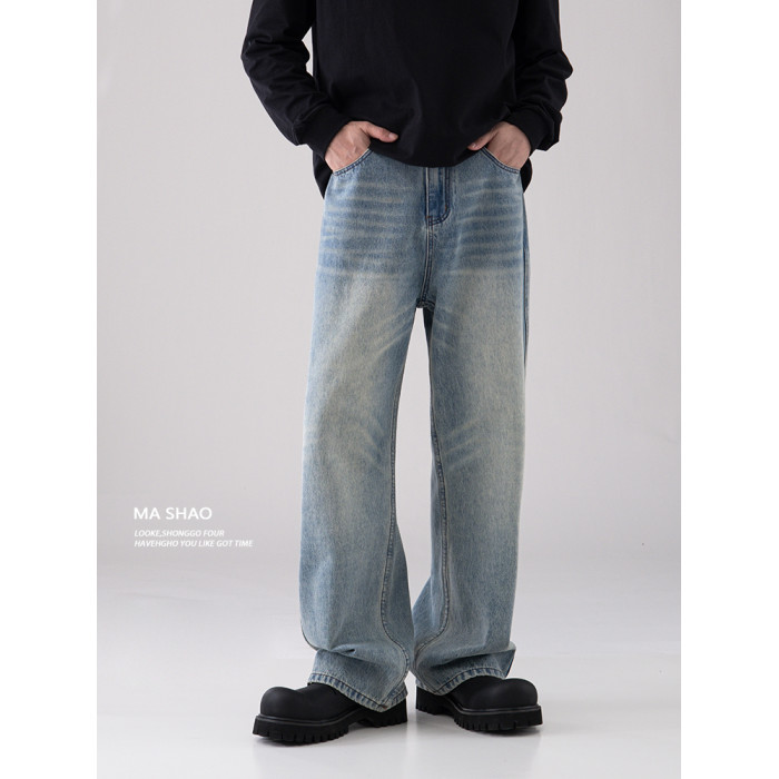美式復古cleanfit淺藍色牛仔褲男直筒寬松濶腿長褲子2025秋季新款