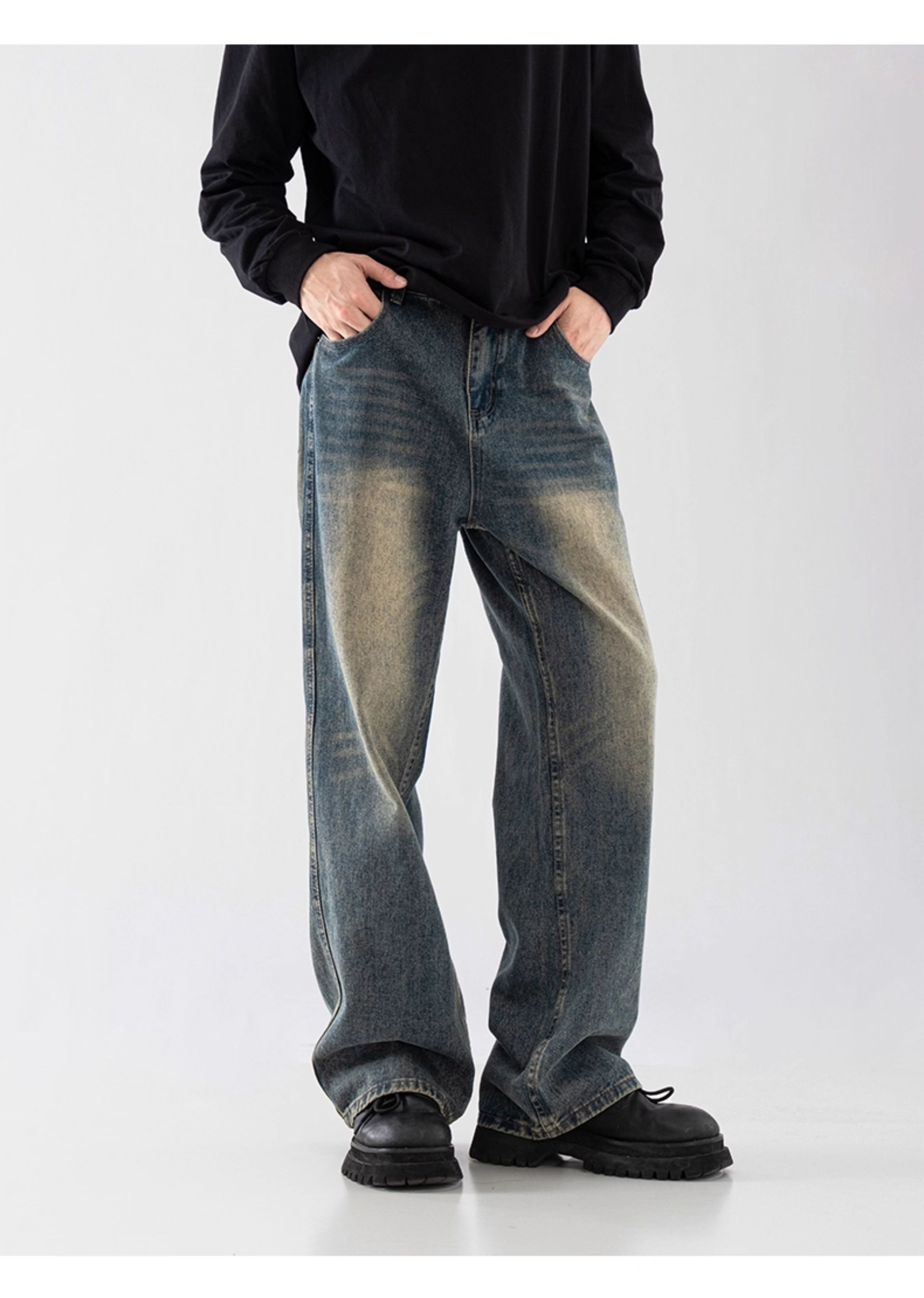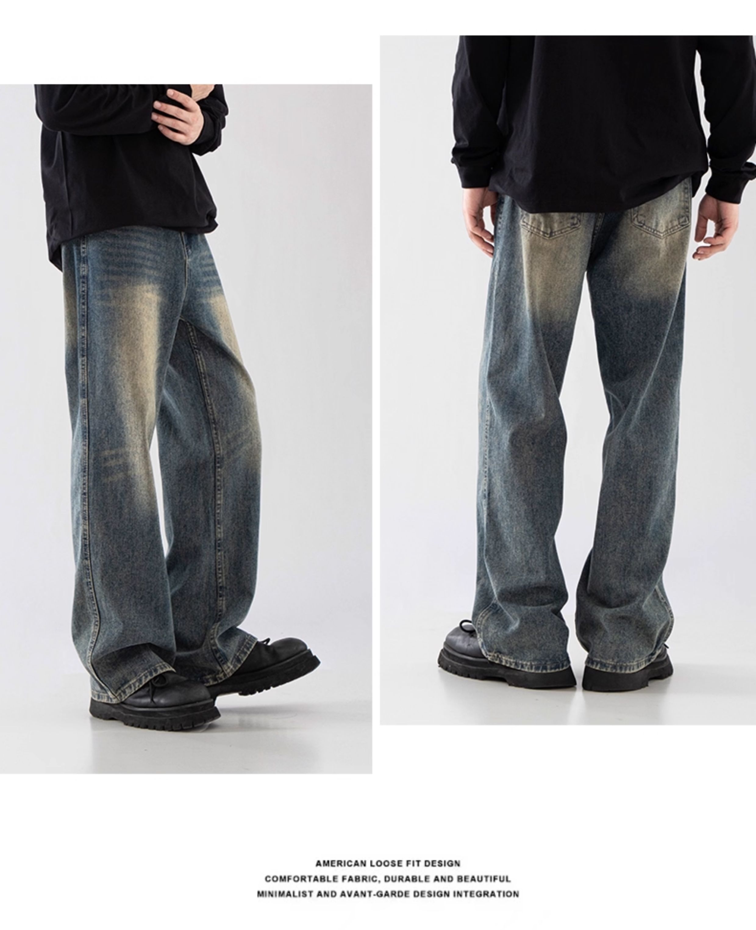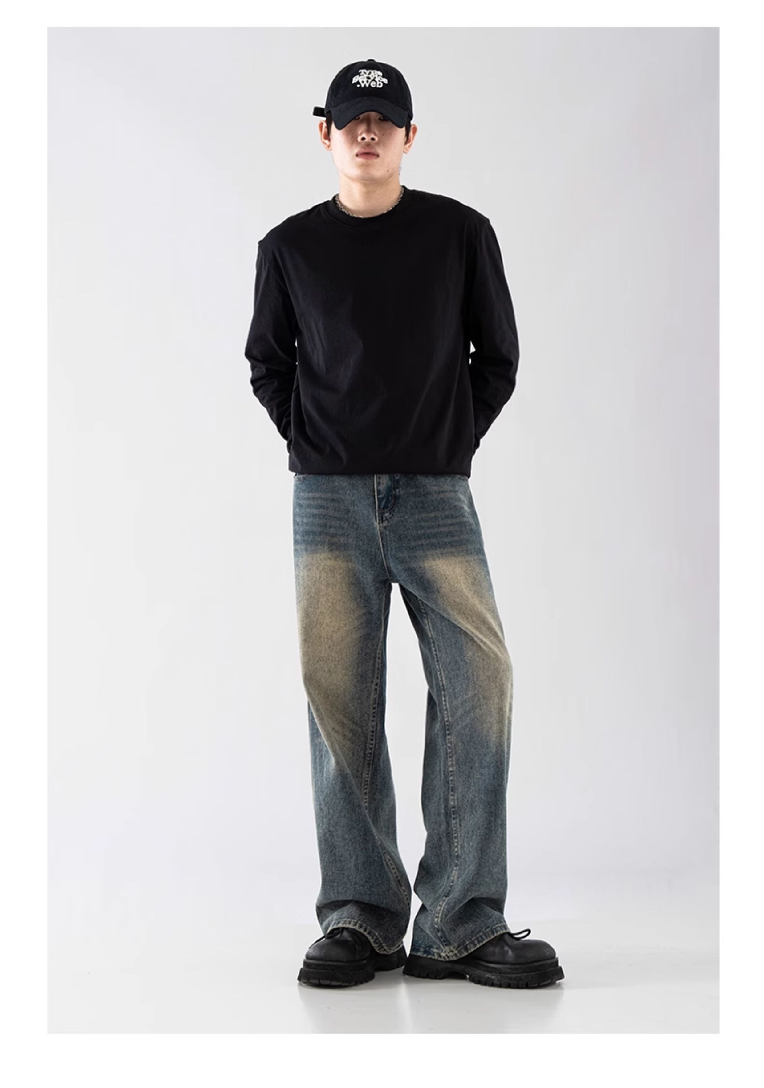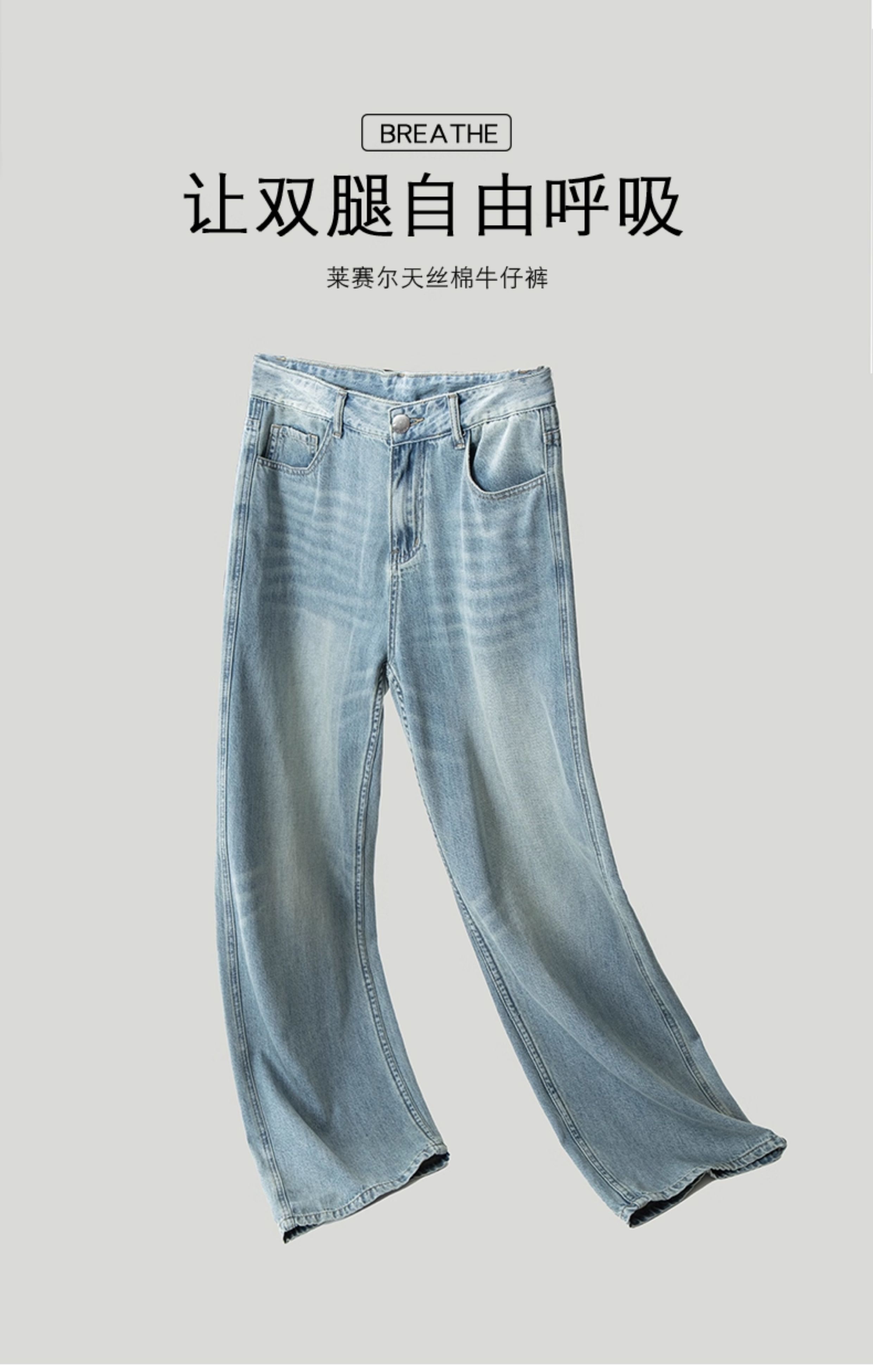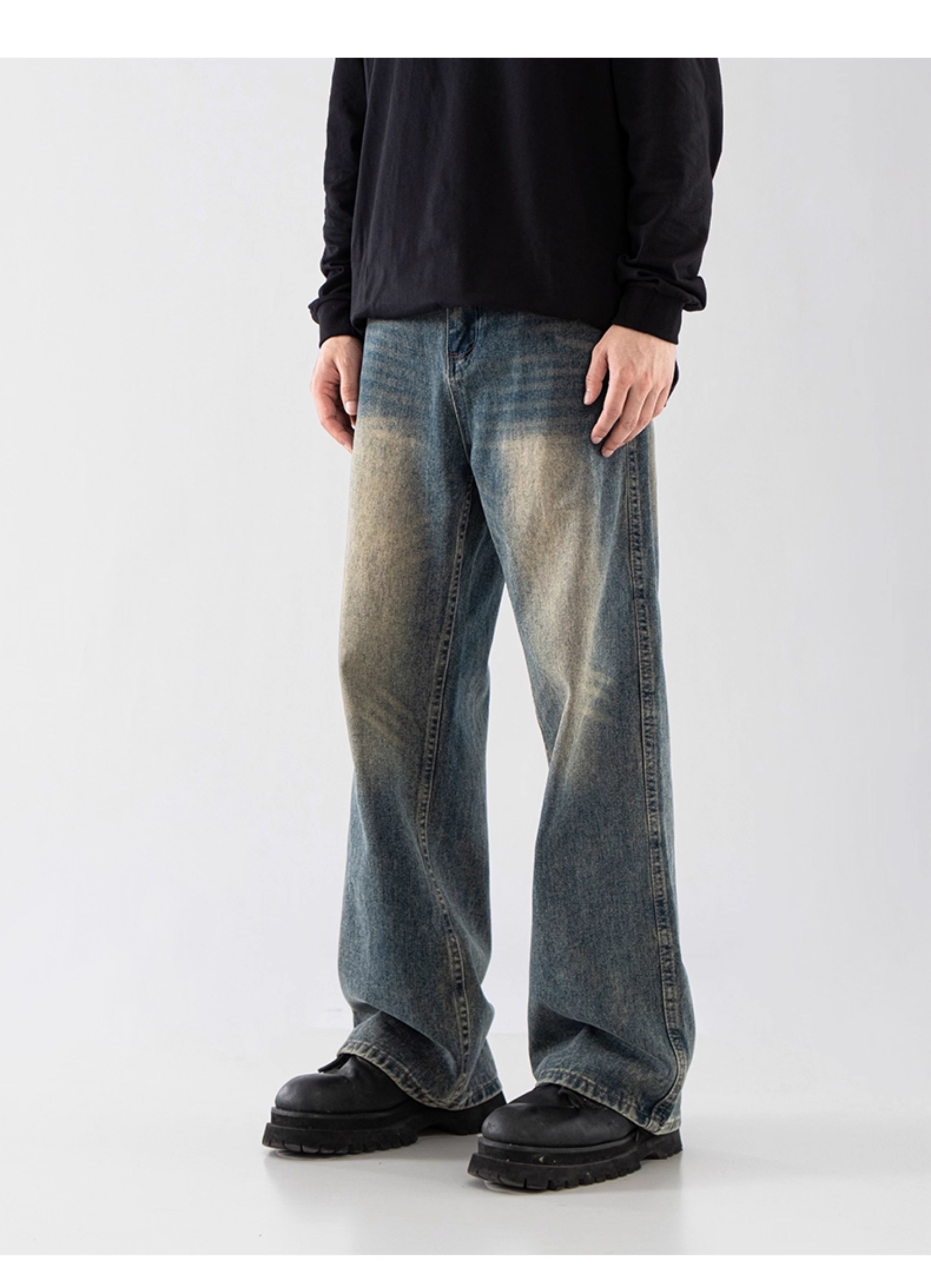美式復古cleanfit淺藍色牛仔褲男直筒寬松濶腿長褲子2025秋季新款