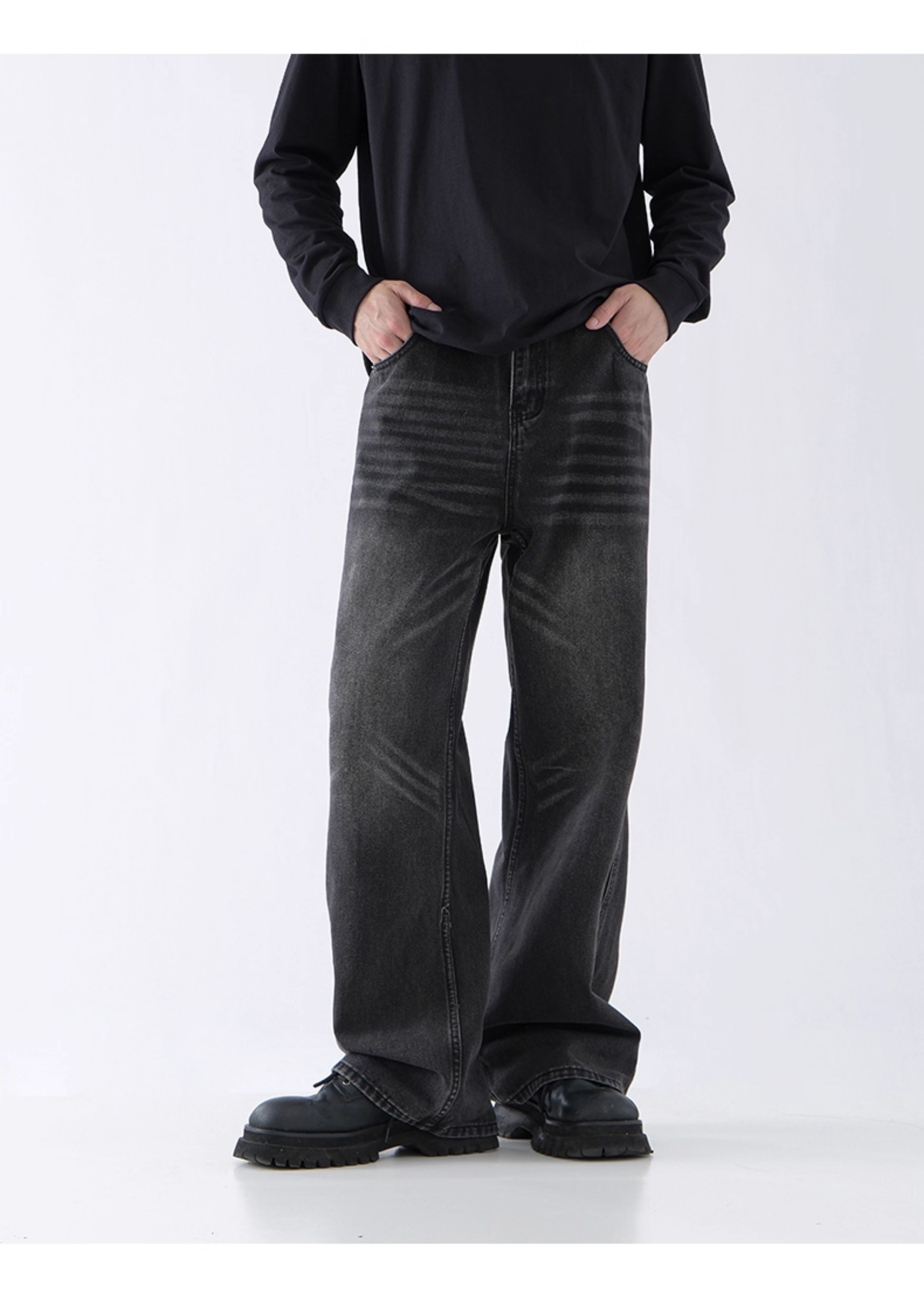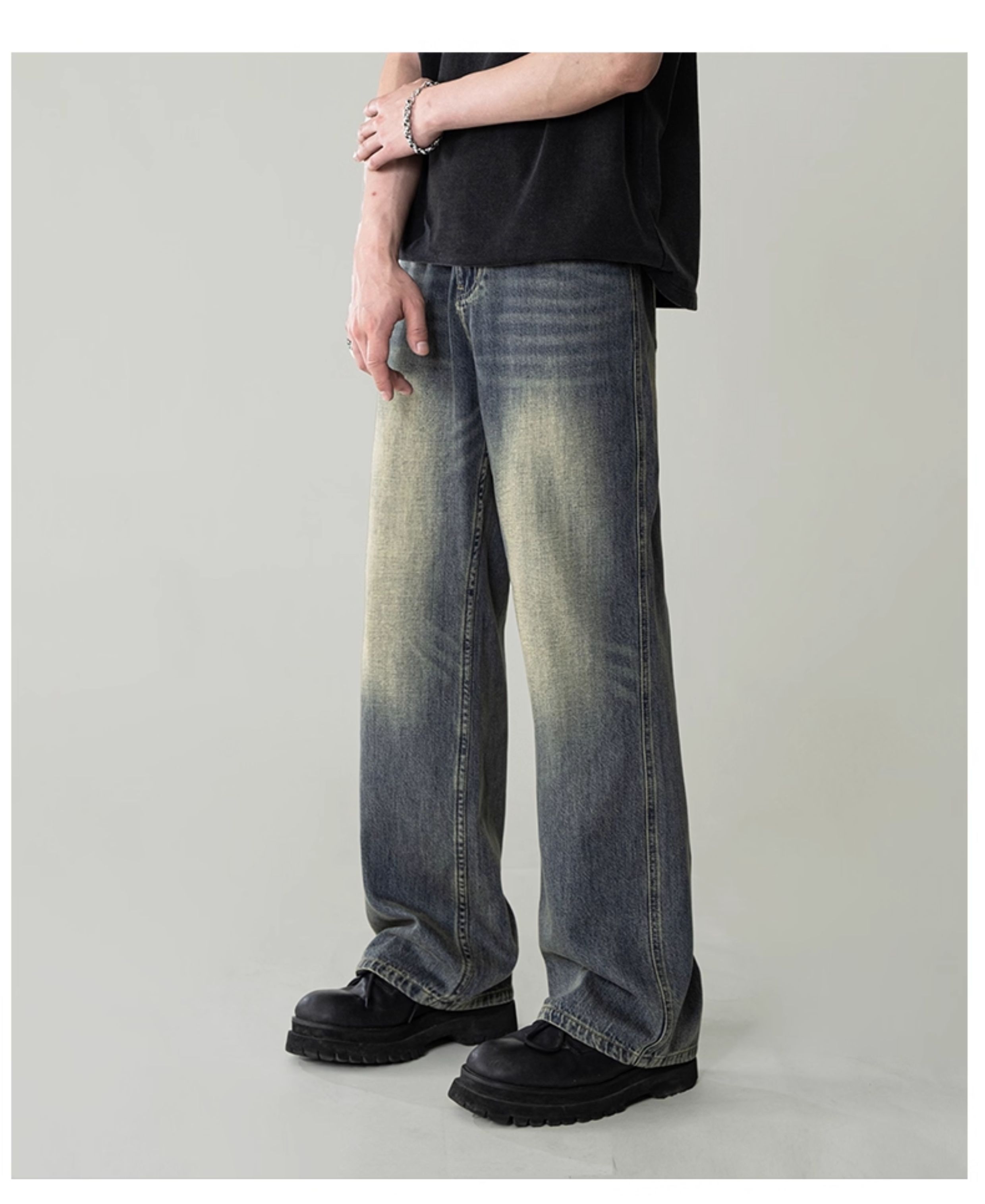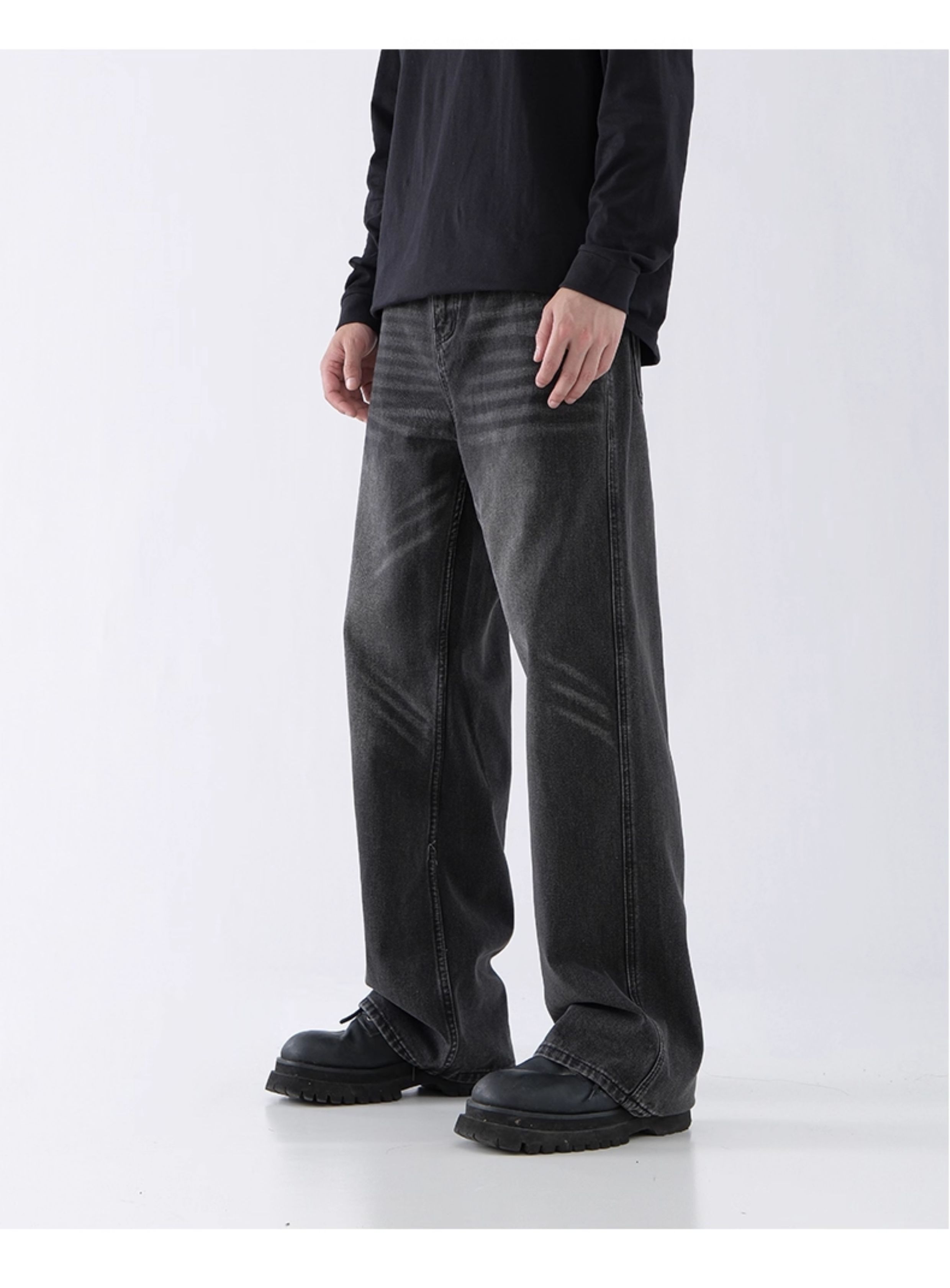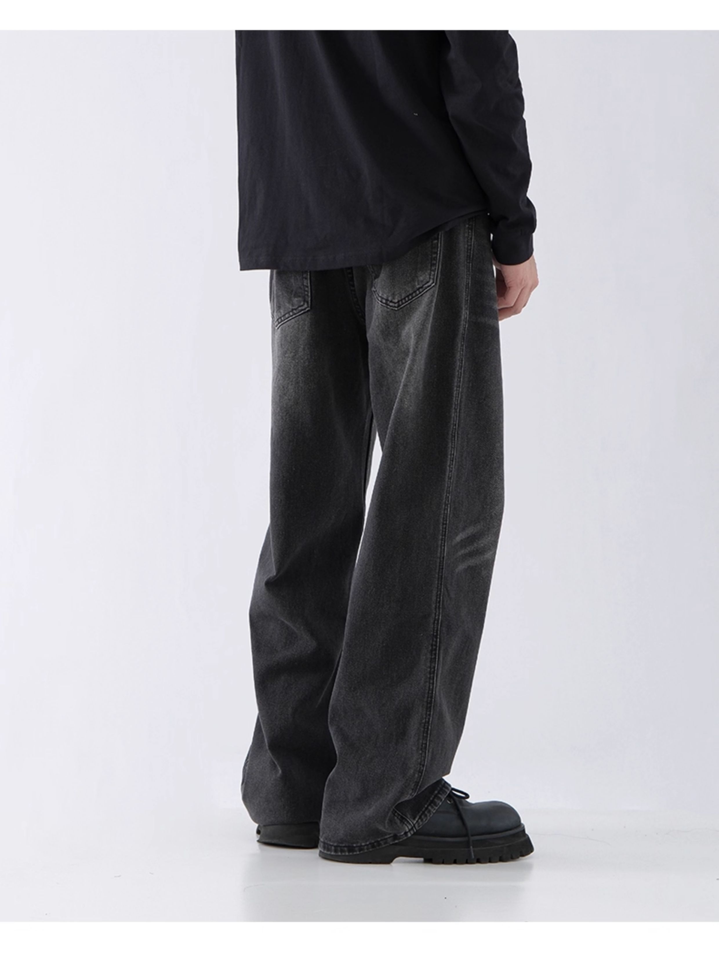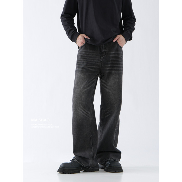 美式復古cleanfit淺藍色牛仔褲男直筒寬松濶腿長褲子2025秋季新款