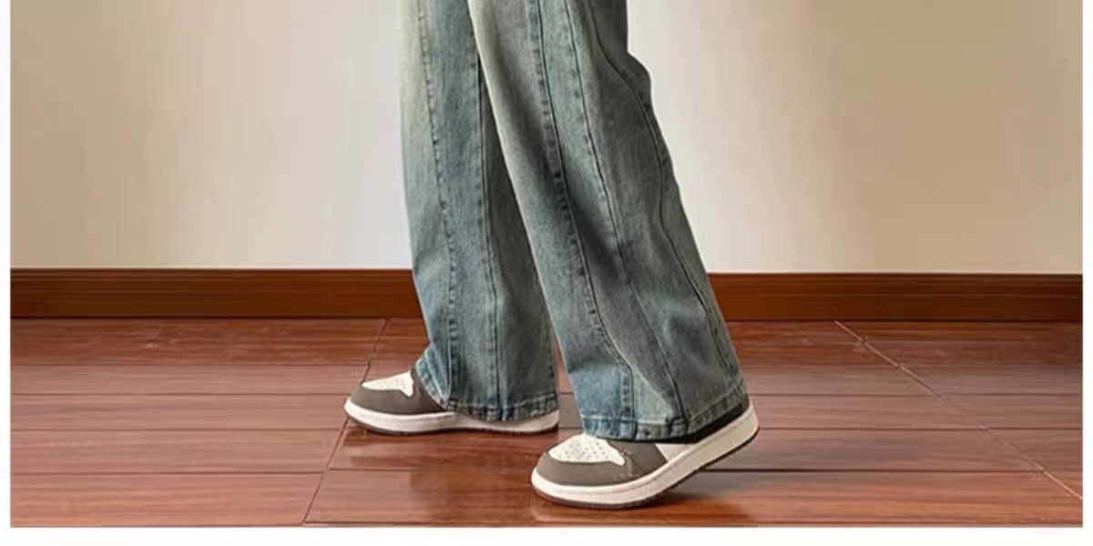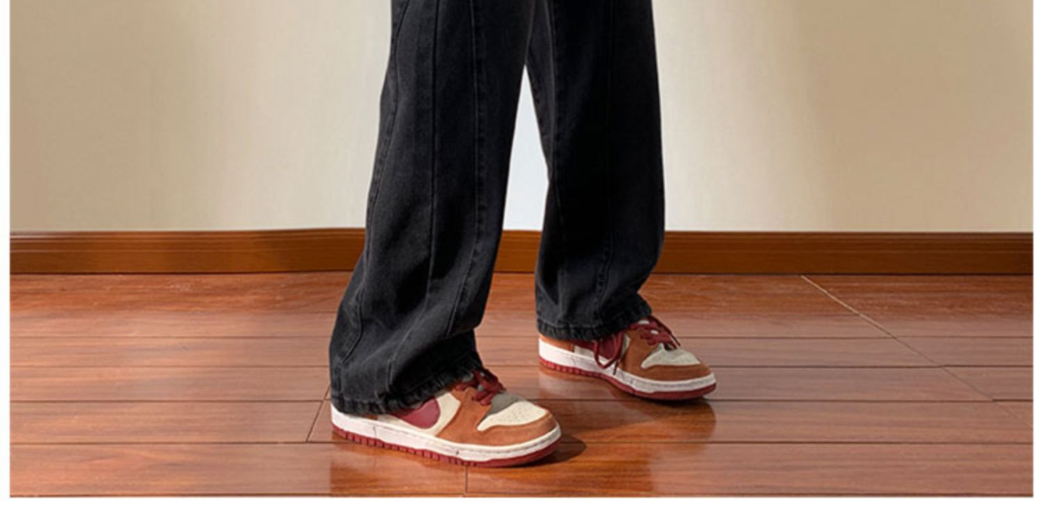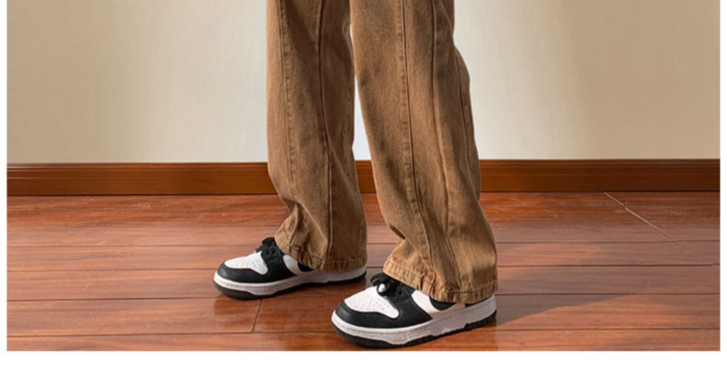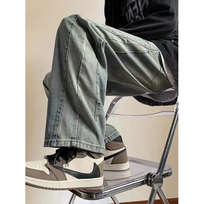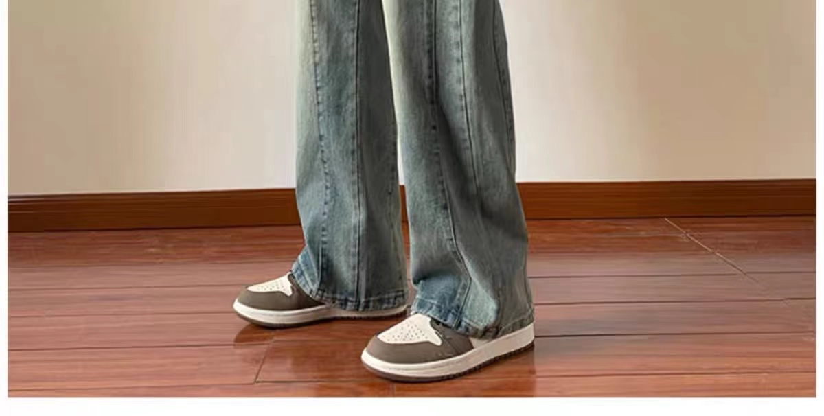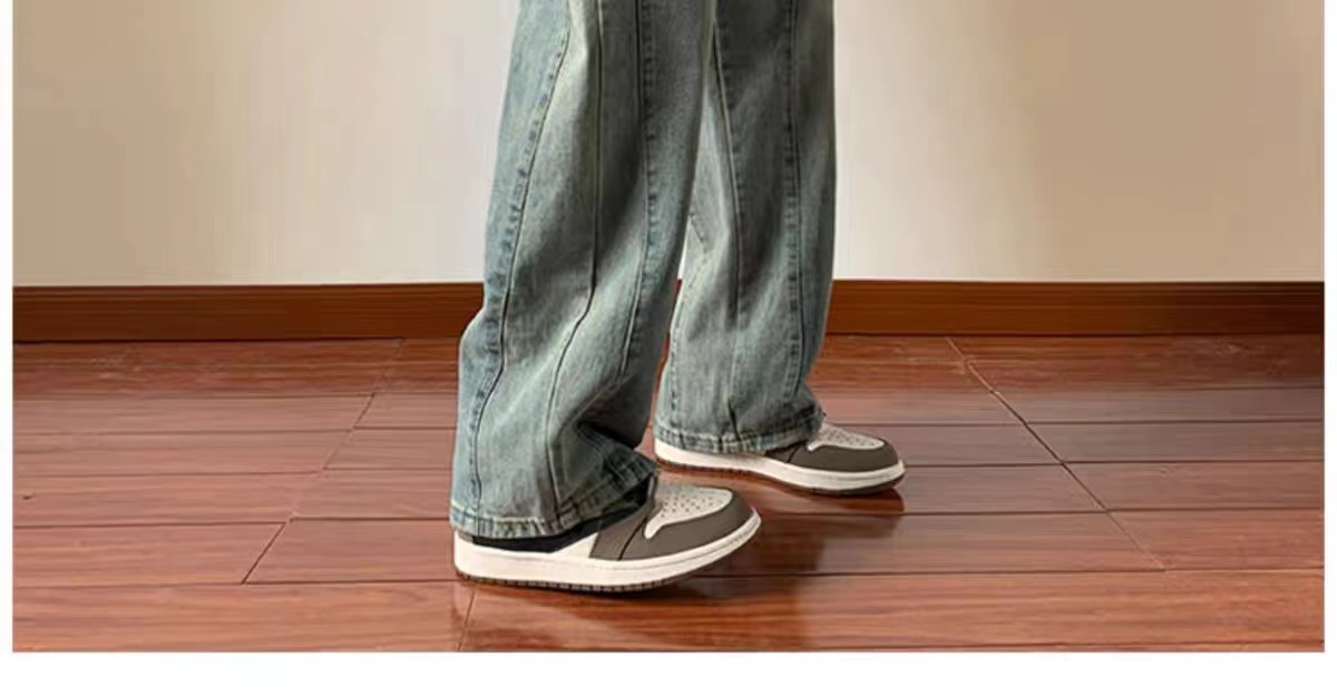 美式高街休閒褲子男松緊腰寬松抽繩百搭直筒濶腿褲秋季新款牛仔褲