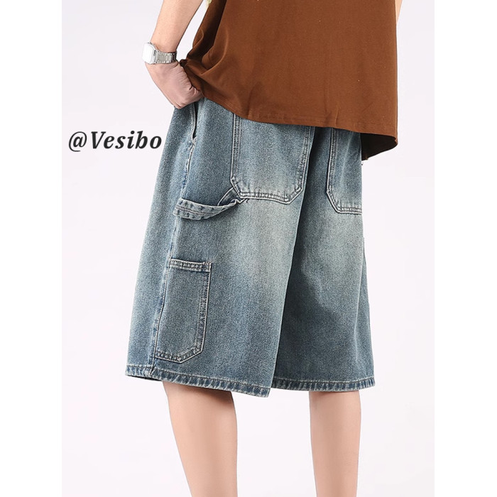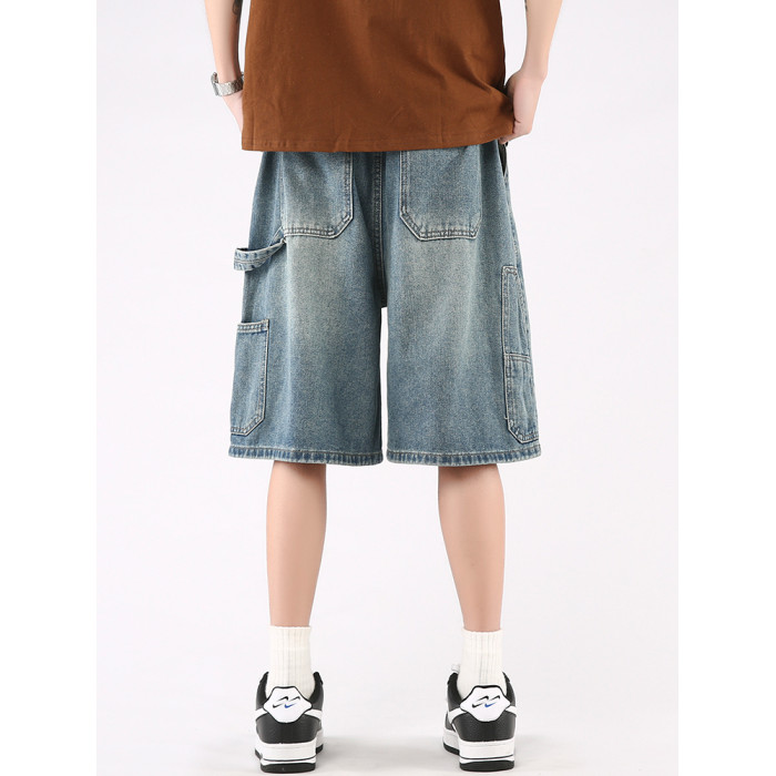 牛仔短褲男夏季高街潮牌2025新款休閒潮流五分褲寬松大碼濶腿褲子