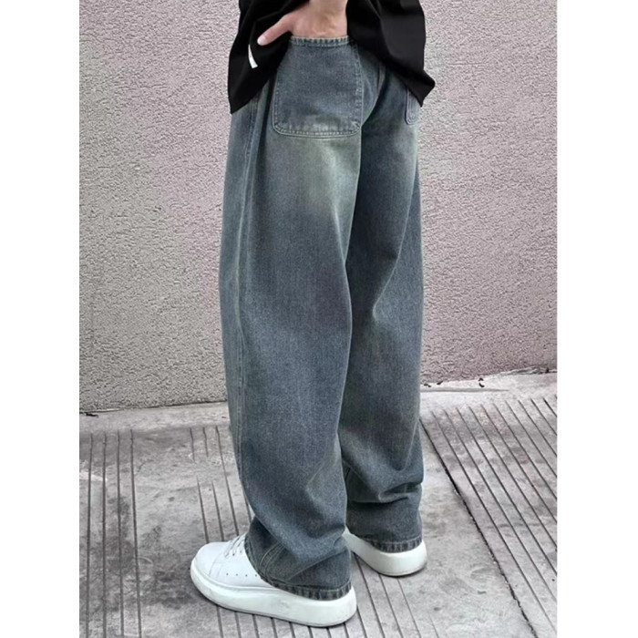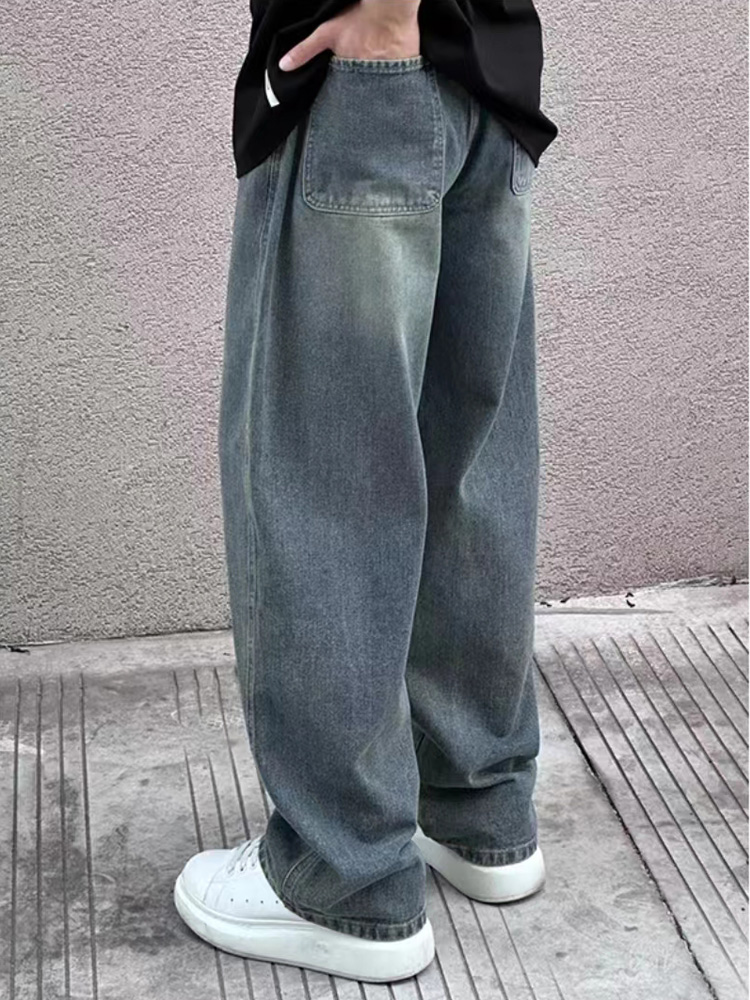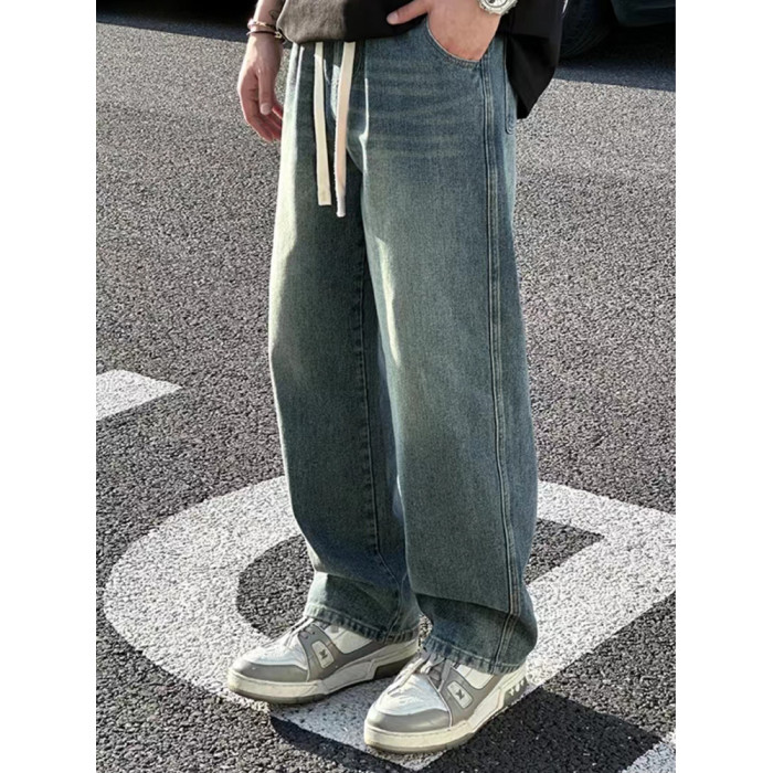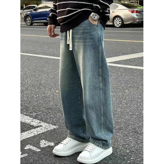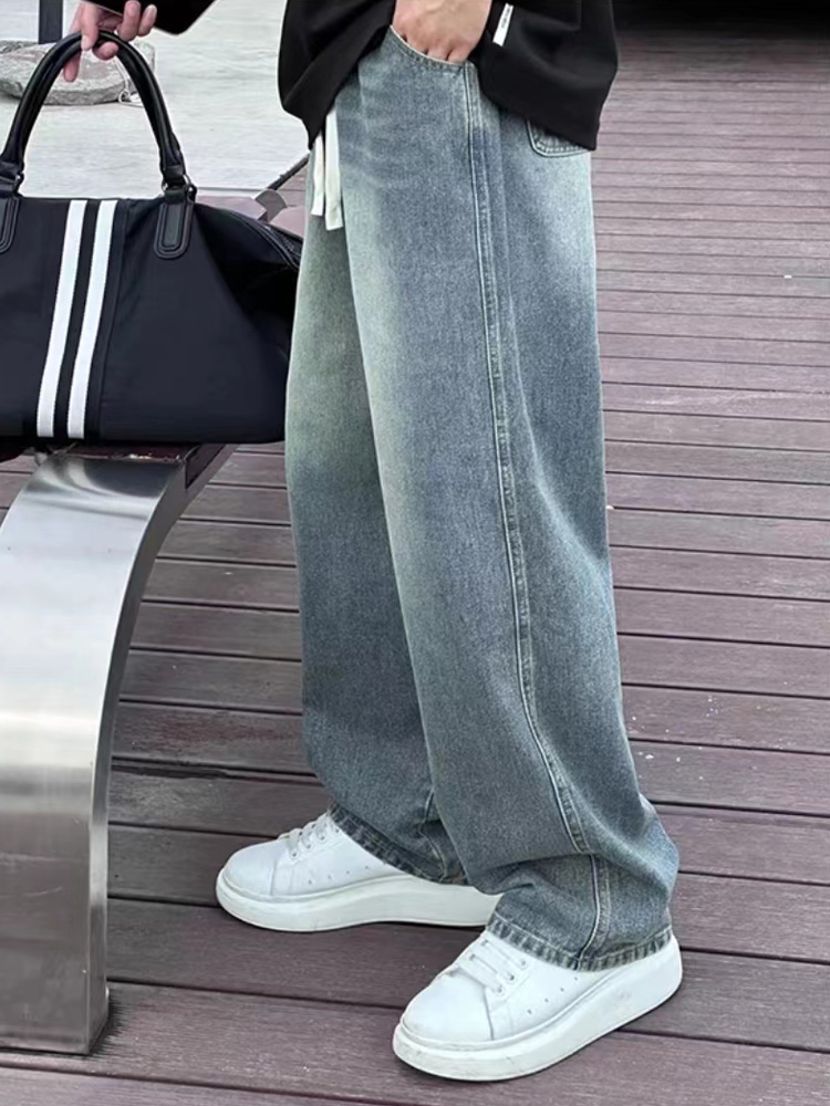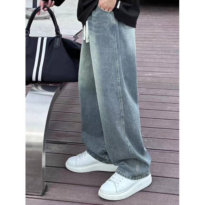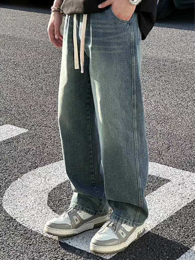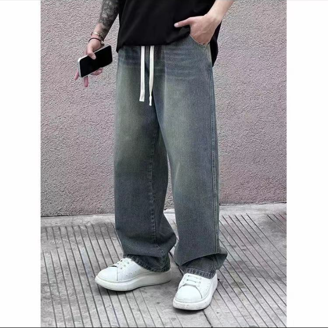 牛仔褲男士直筒寬松2025新款潮牌美式復古休閒男裝松緊百搭長褲子