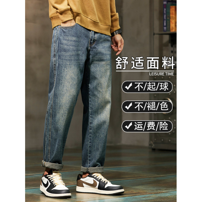 美式復古秋冬牛仔褲男士加絨寬松直筒潮牌2025新款水洗休閒長褲子