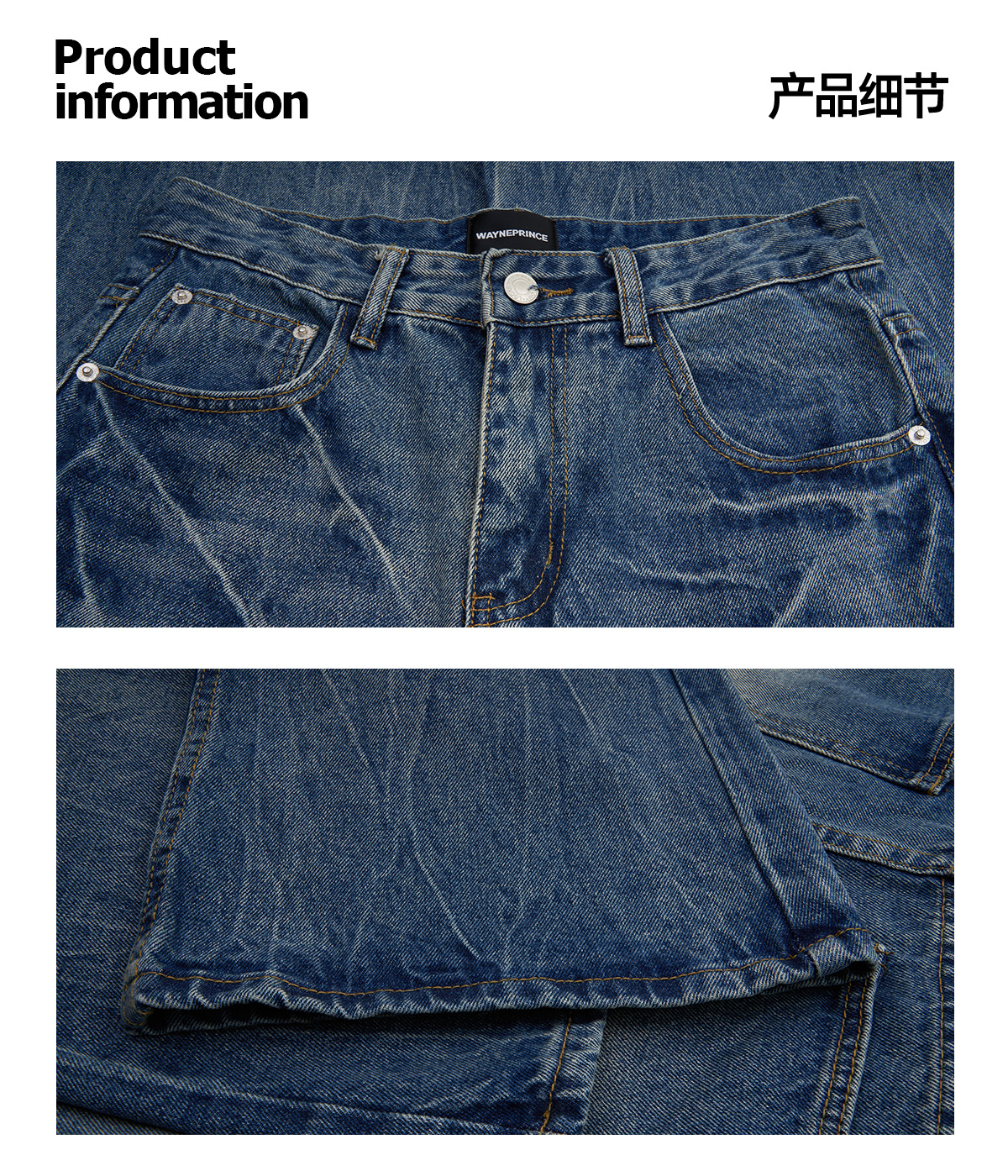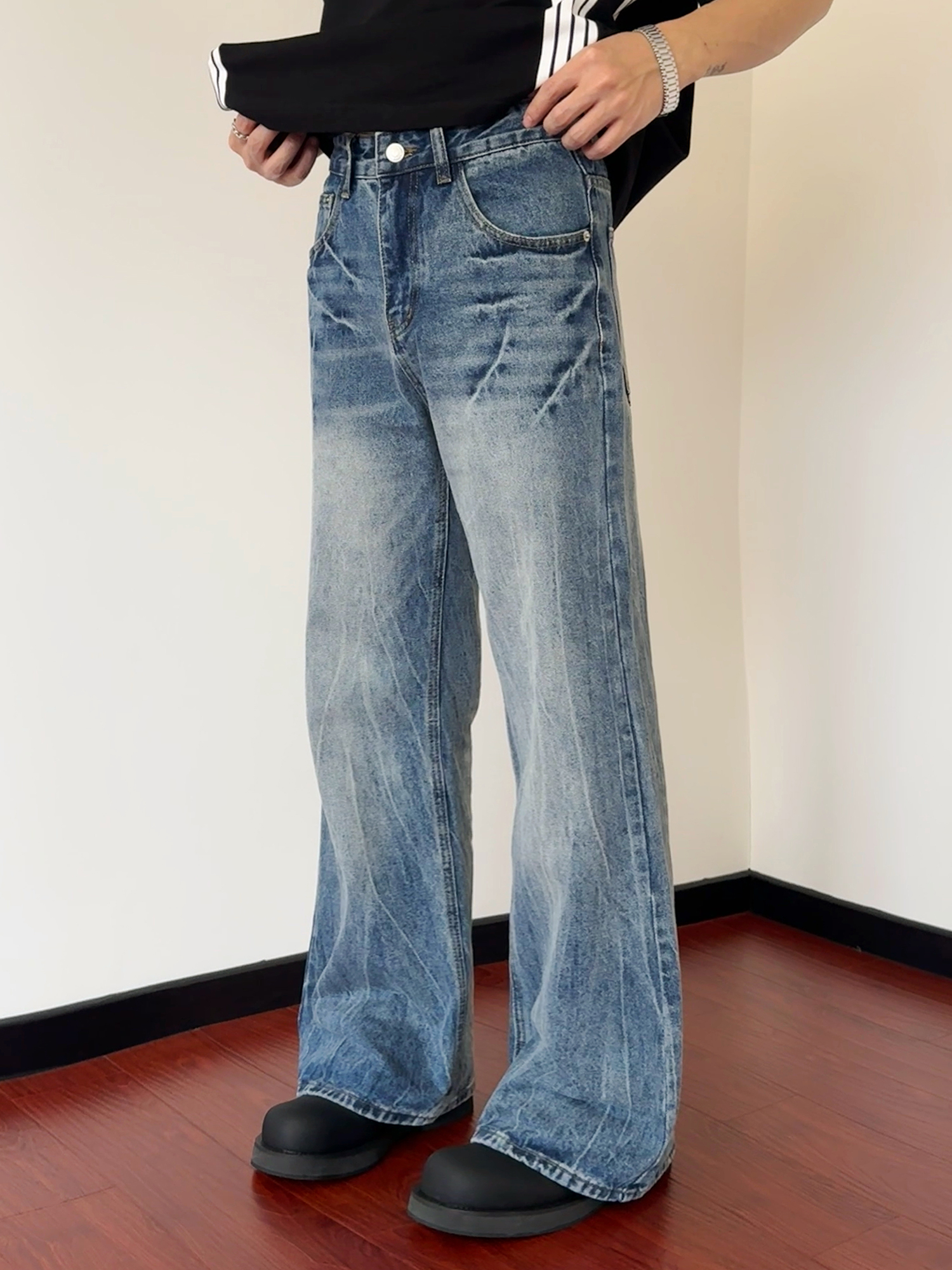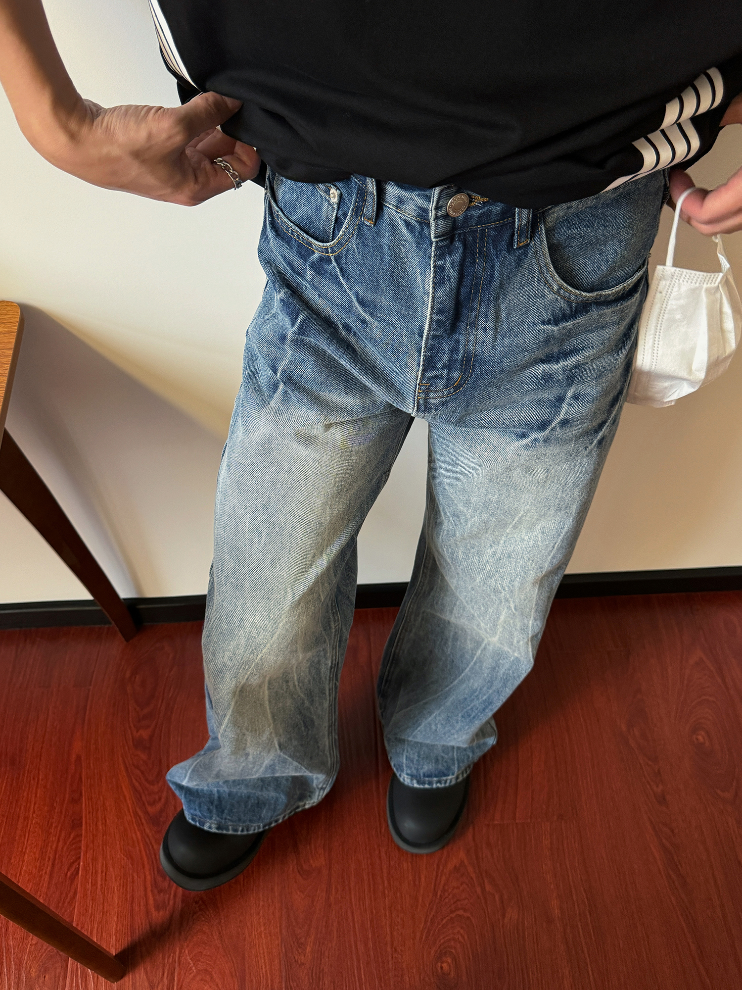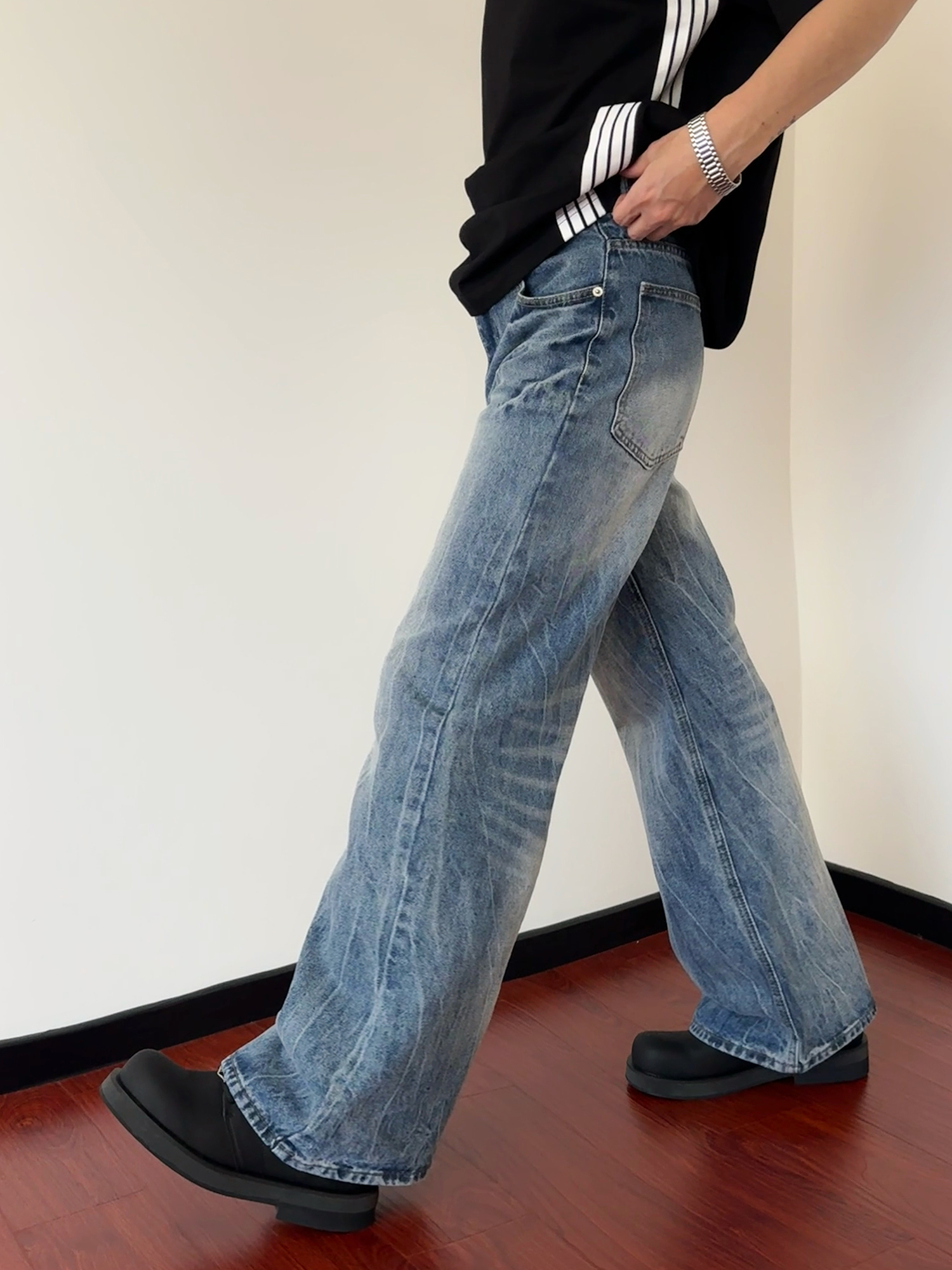 19studio WAYNEPRINCE美式復古高街cleanfit牛仔褲男直筒水洗長褲