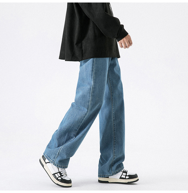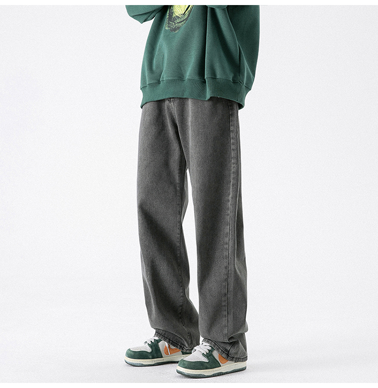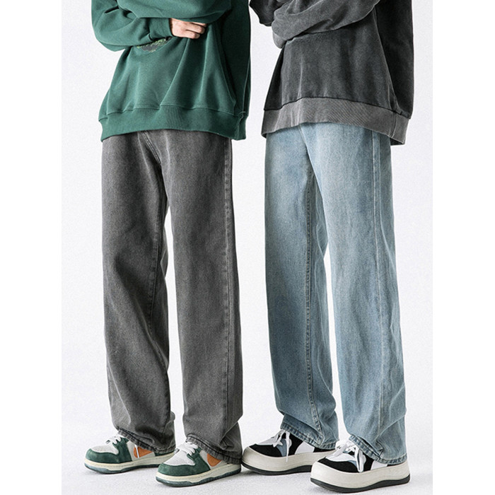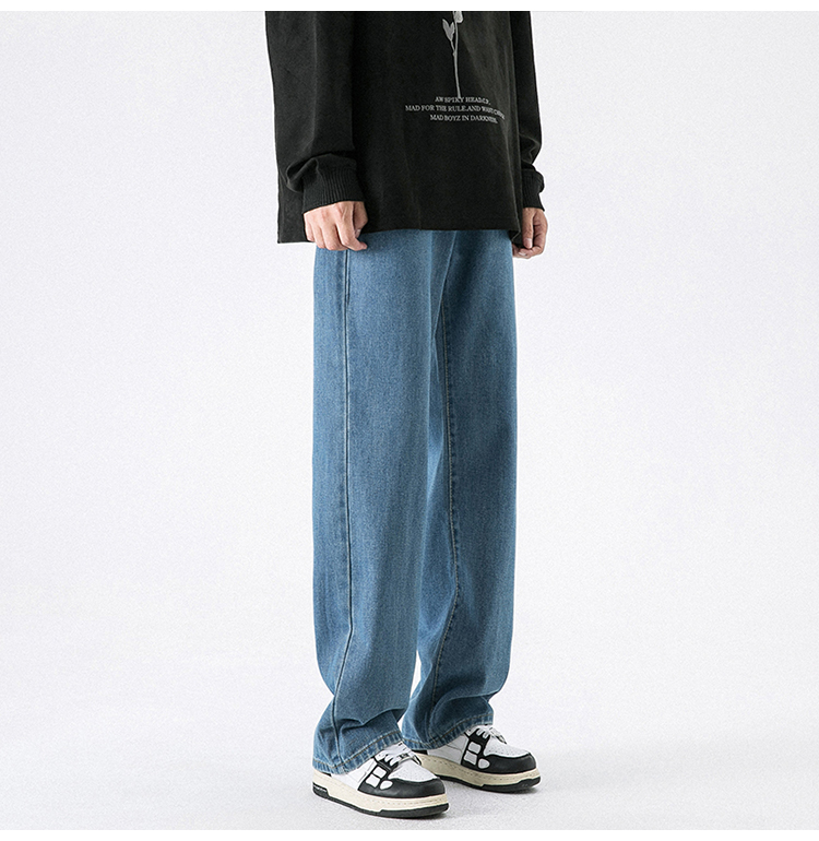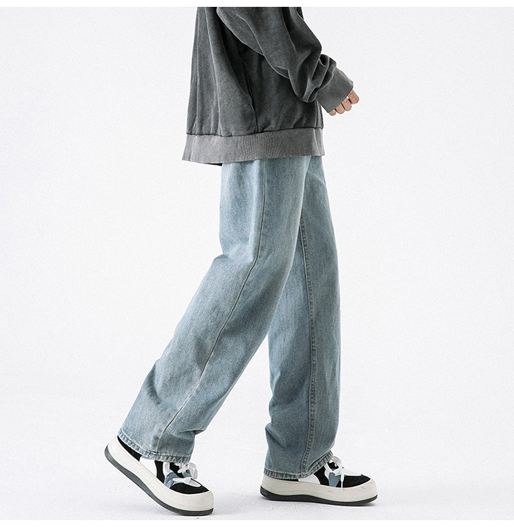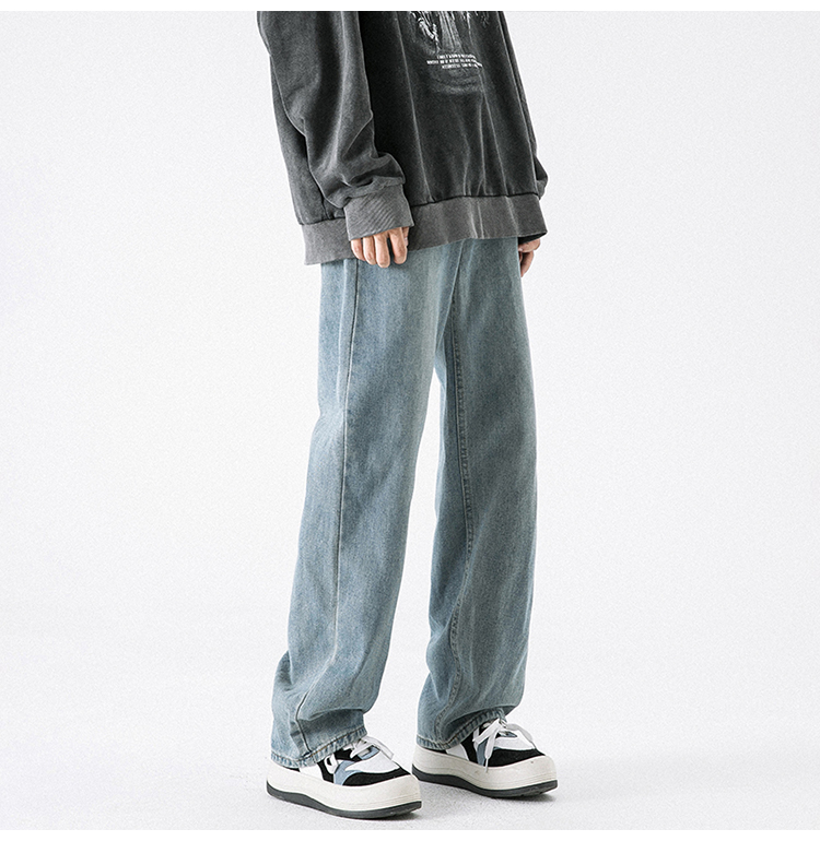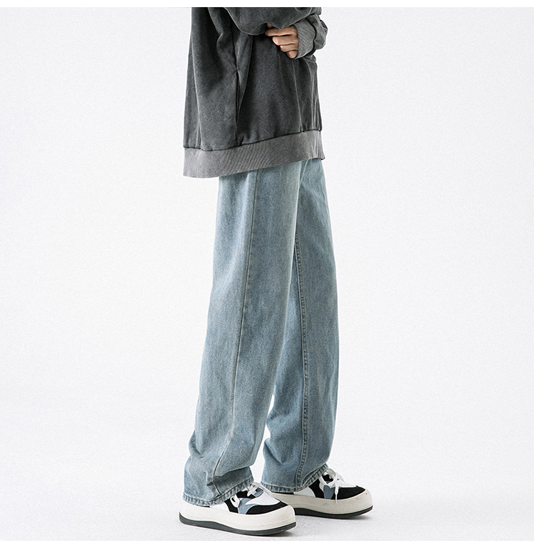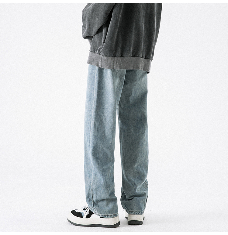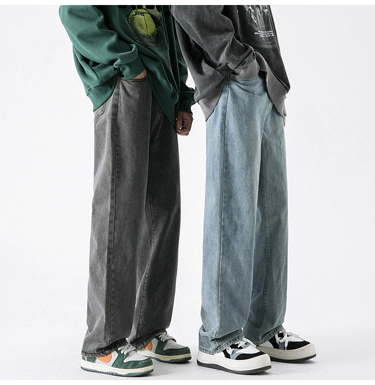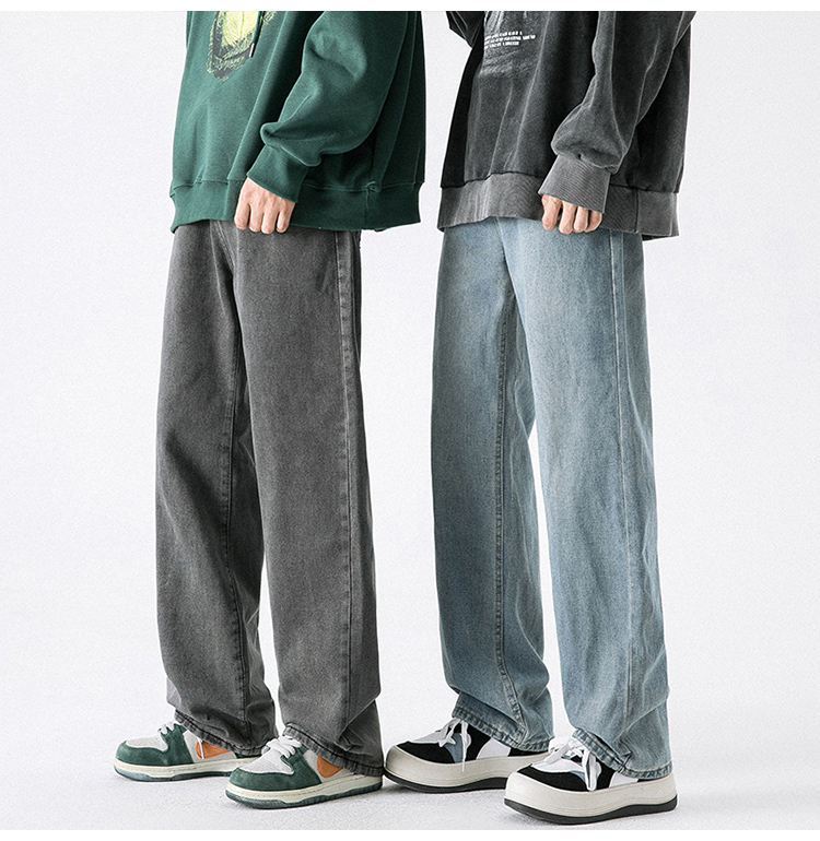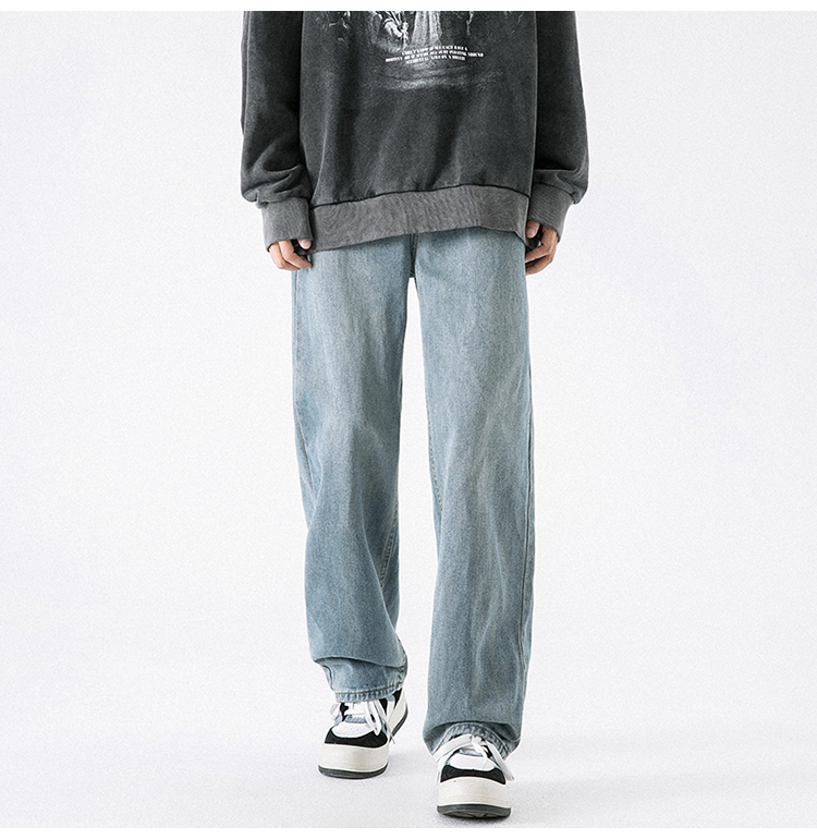 牛仔褲男士秋季美式寬松直筒褲潮牌垂感簡約垂感休閒拖地長褲子女