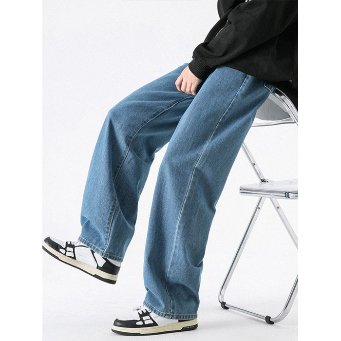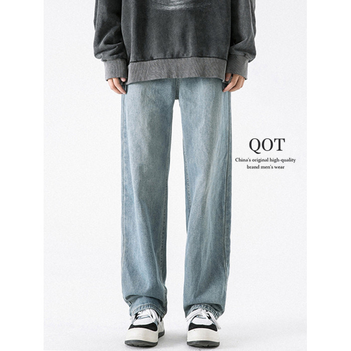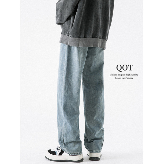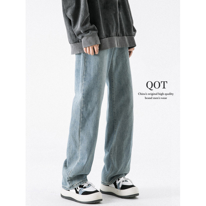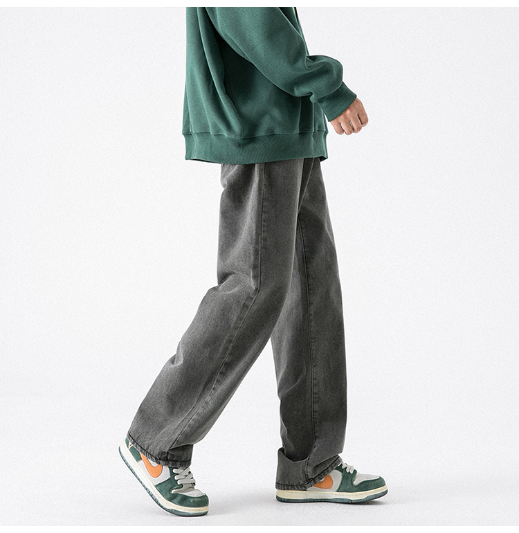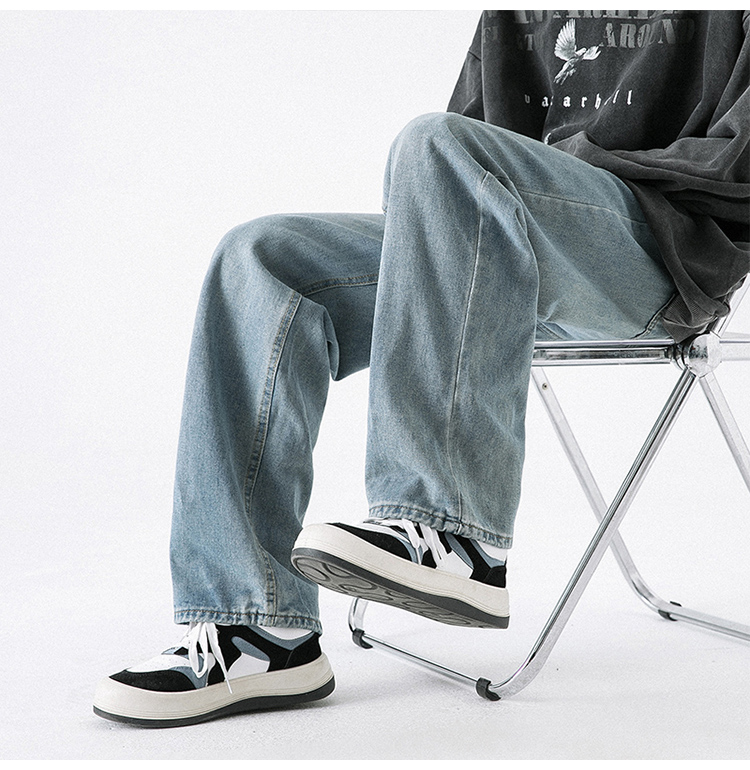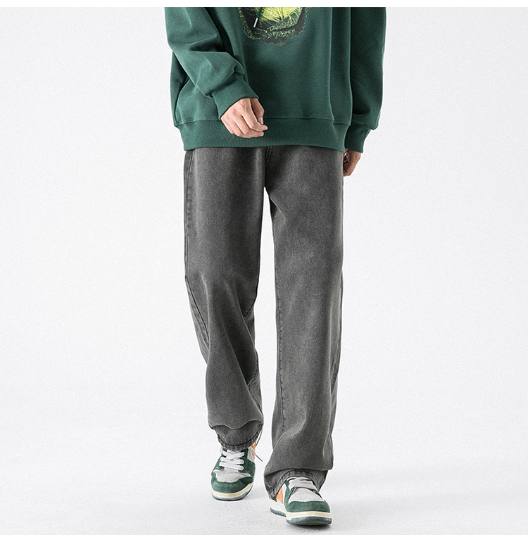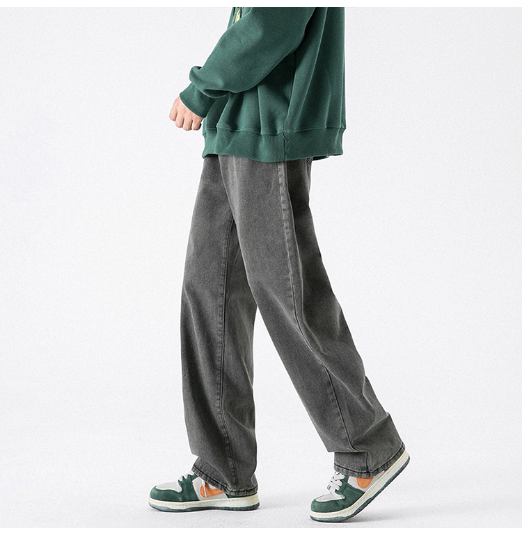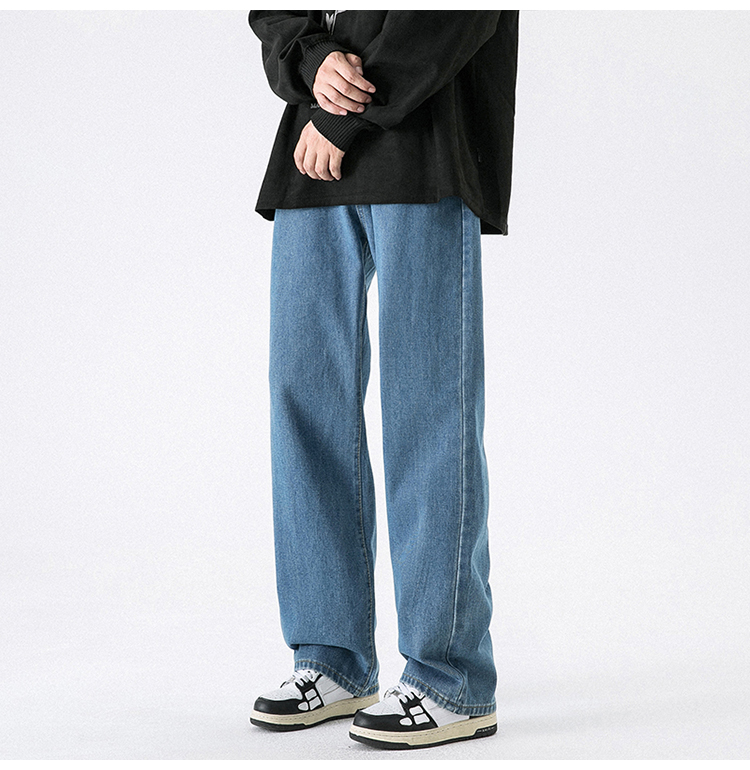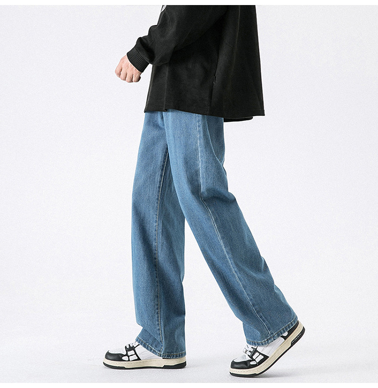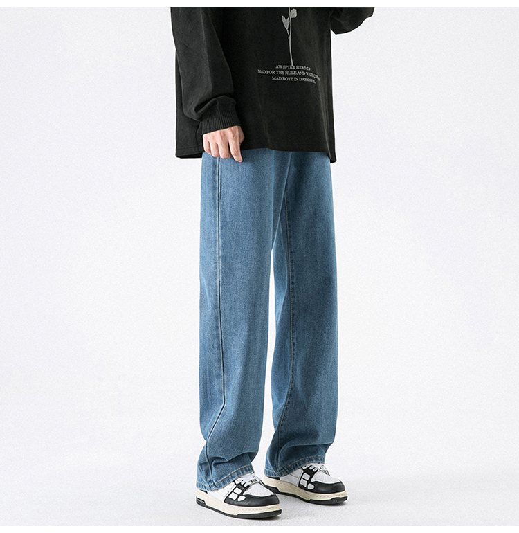 牛仔褲男士秋季美式寬松直筒褲潮牌垂感簡約垂感休閒拖地長褲子女
