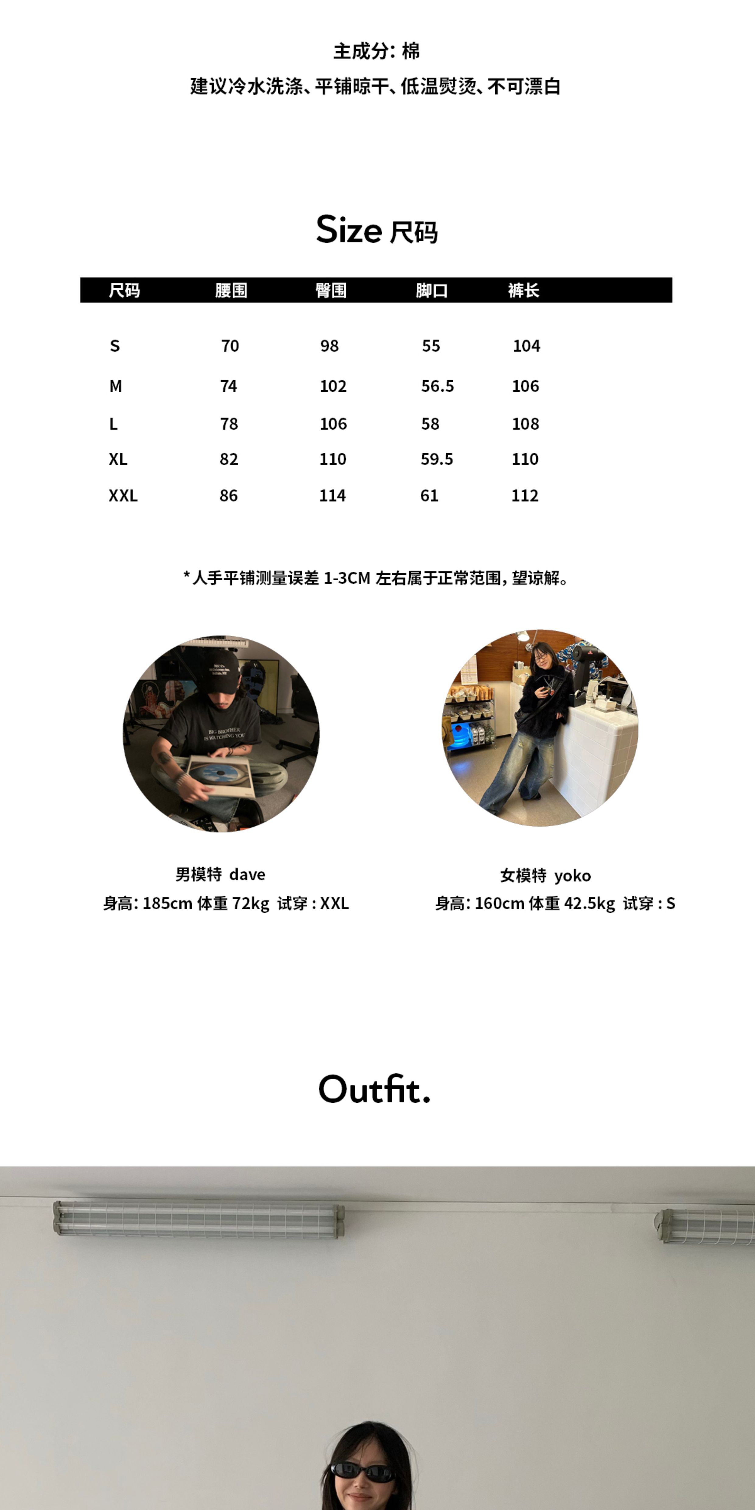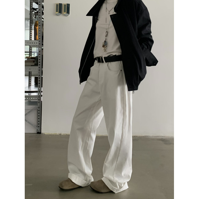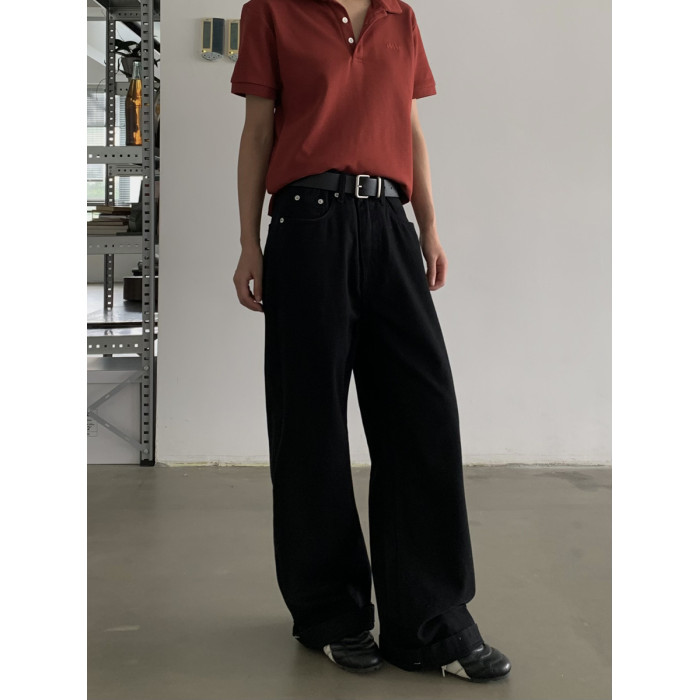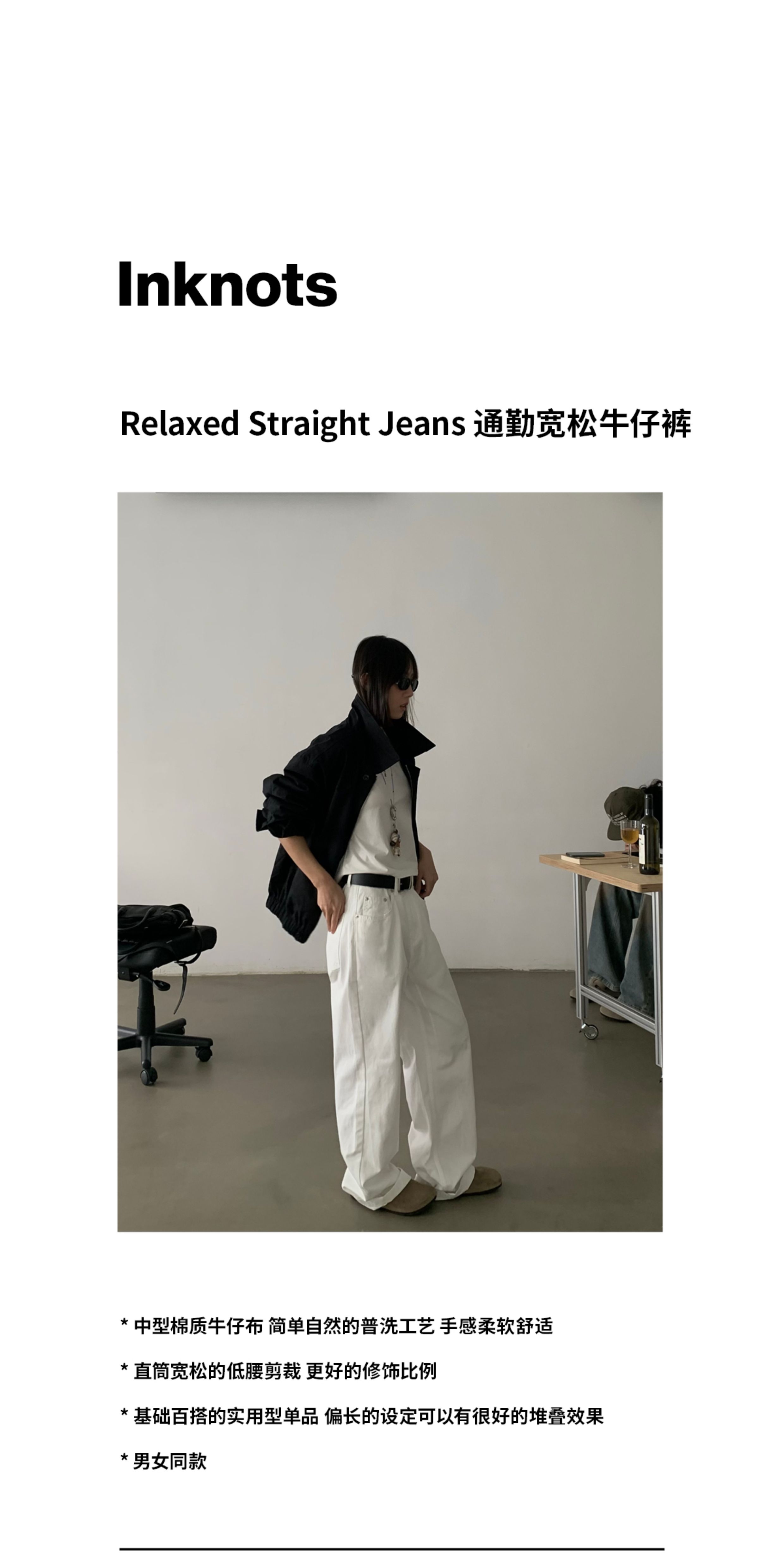 INKNOTS美式復古基礎寬松直筒純色牛仔褲男女濶腿潮牌拖地休閒褲