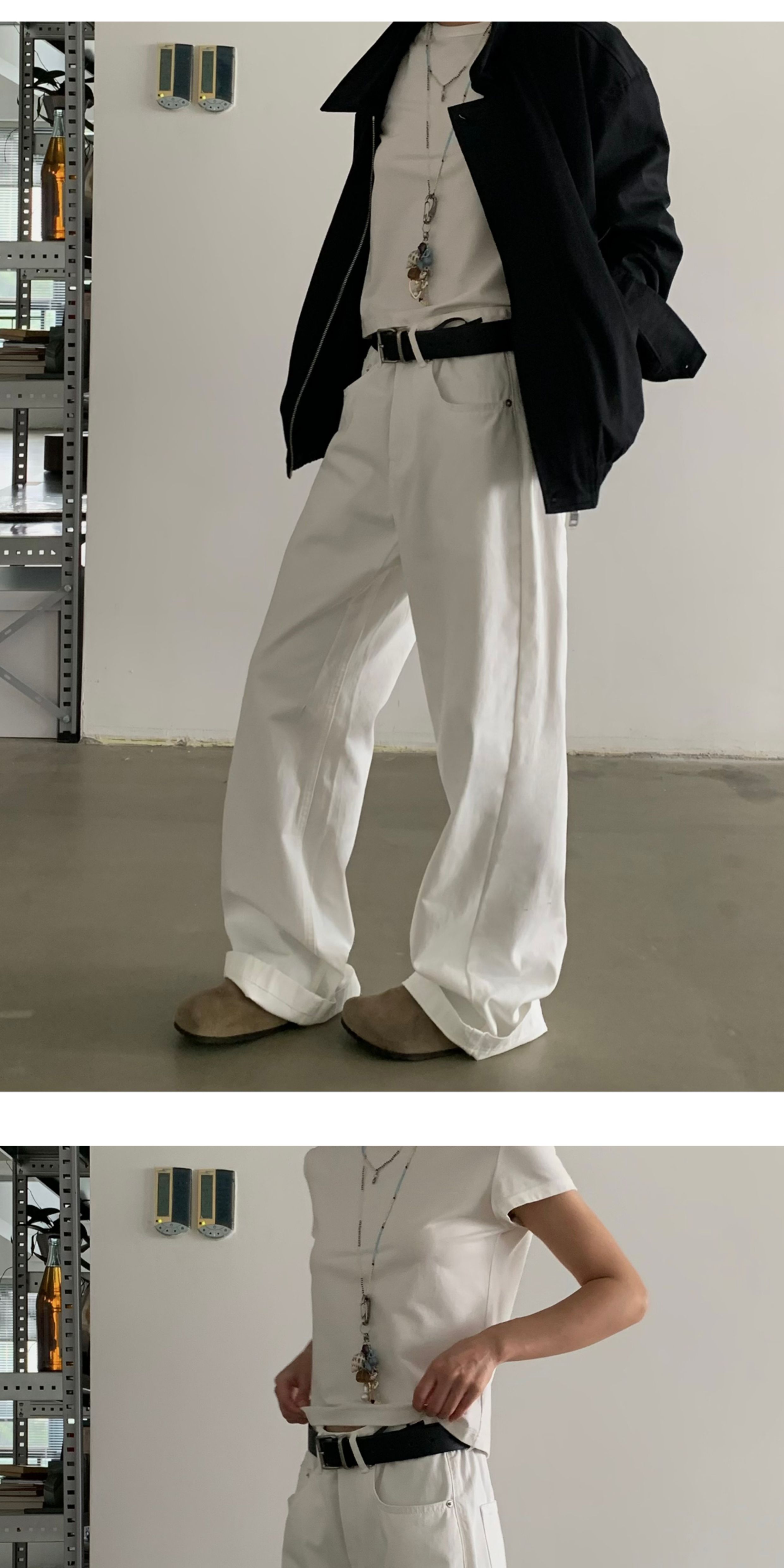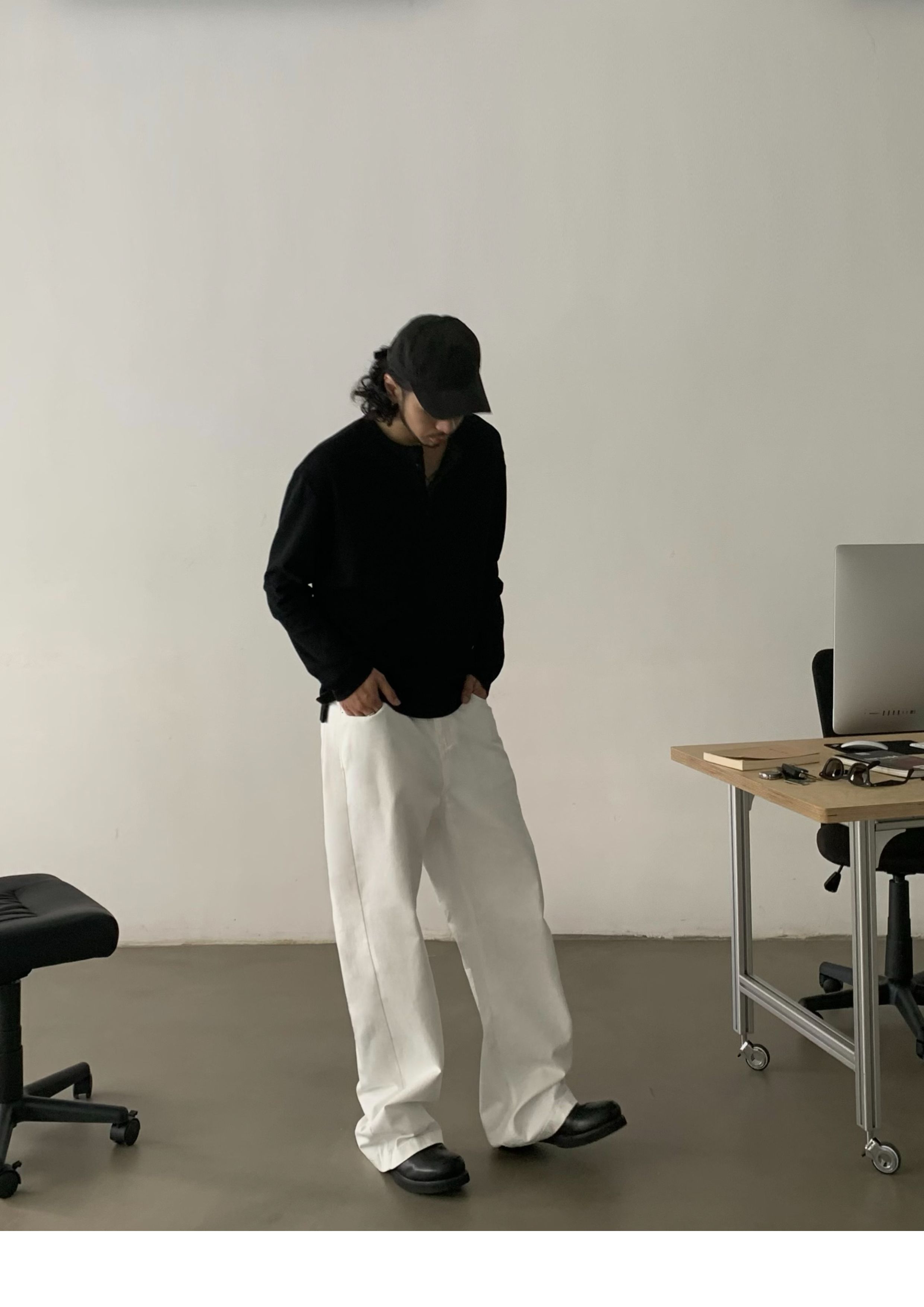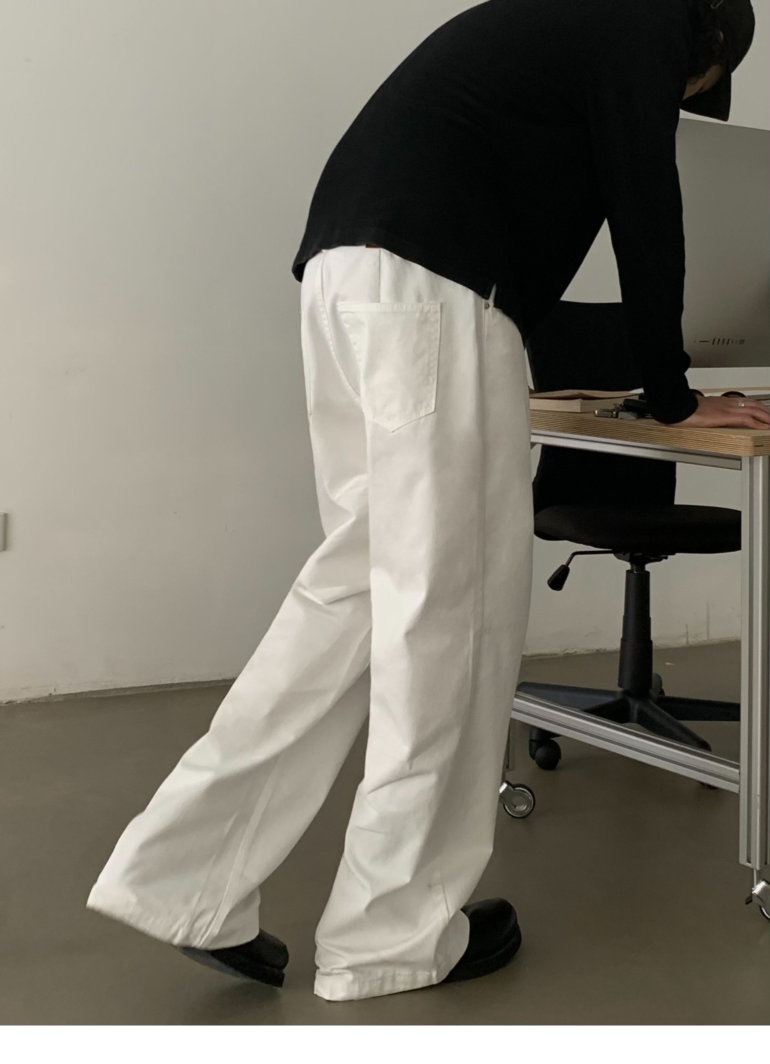 INKNOTS美式復古基礎寬松直筒純色牛仔褲男女濶腿潮牌拖地休閒褲