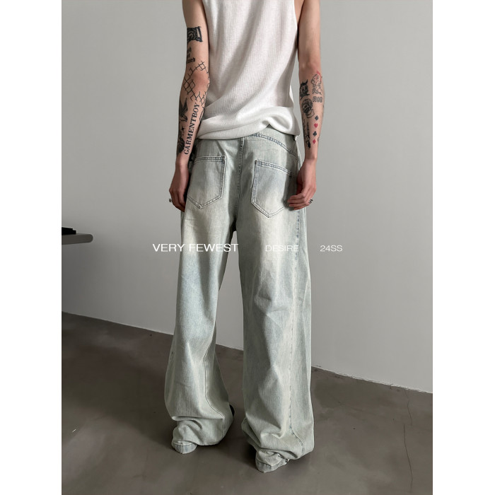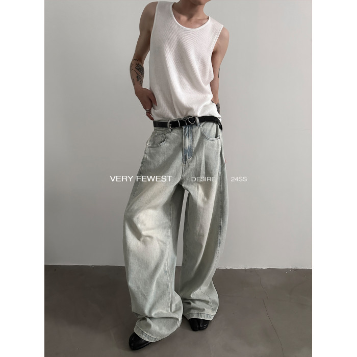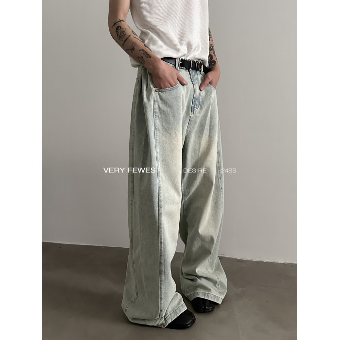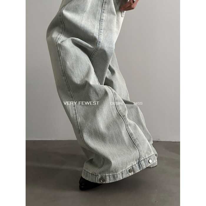 VERY FEWEST 小衆做舊黃水洗濶腿牛仔褲金屬紐釦調節設計拖地褲
