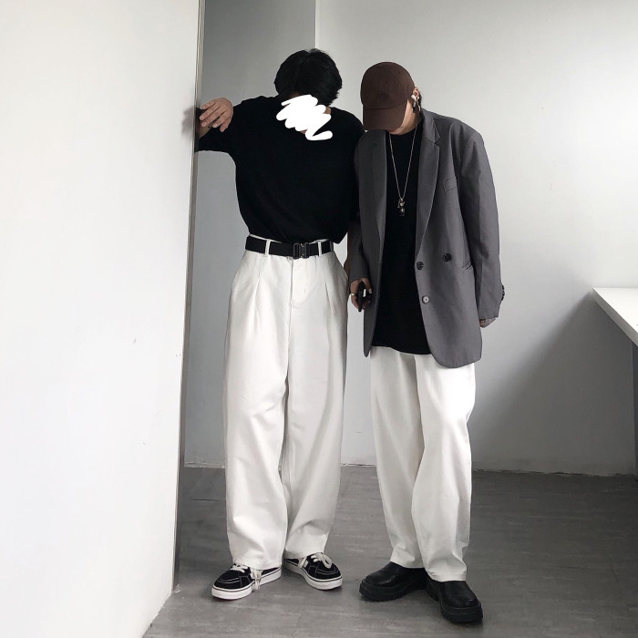 oversize美式港風高腰寬松ins復古慵懶休閒直筒濶腿牛仔拖地褲男