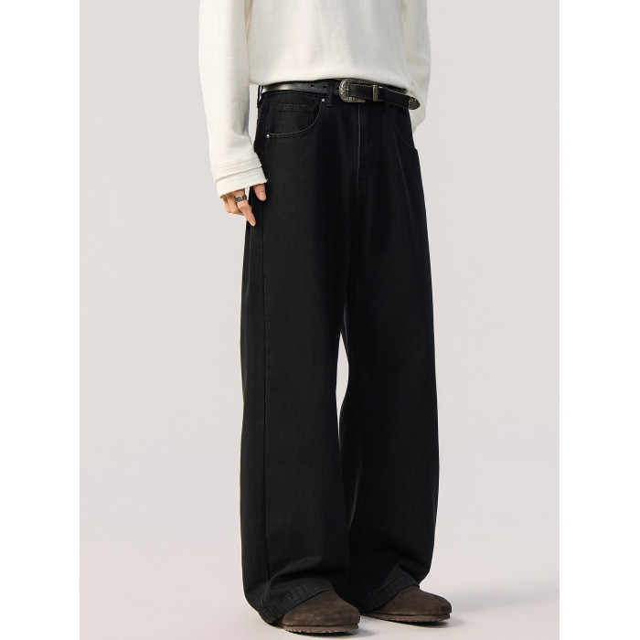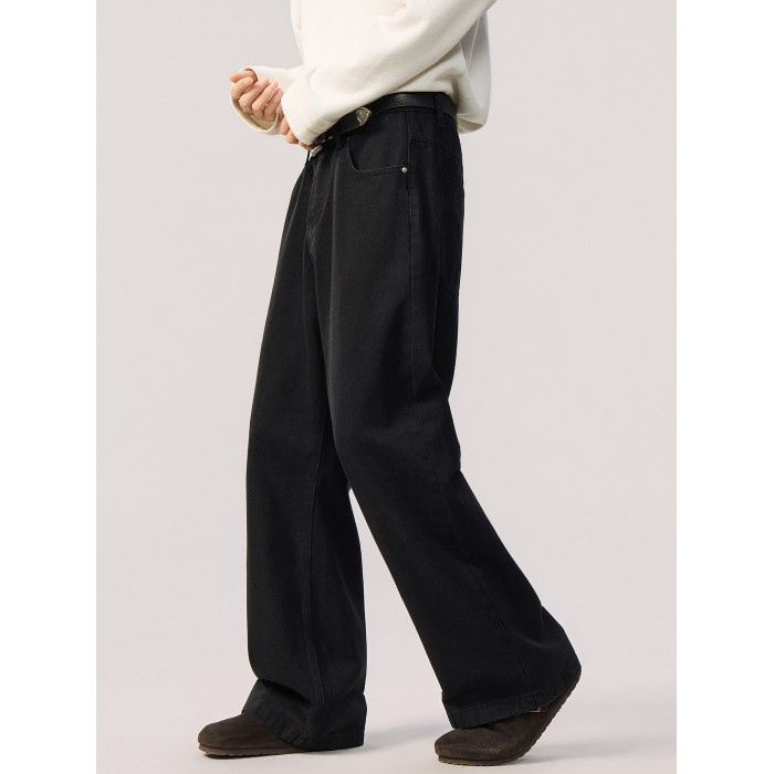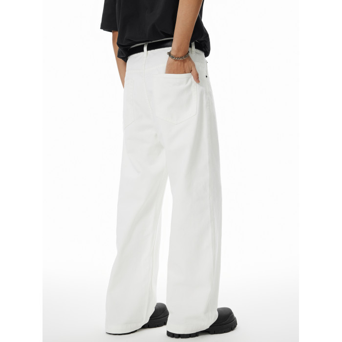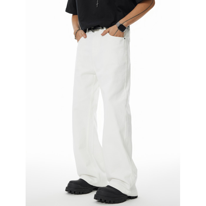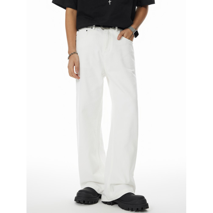 GTRG2025年春秋純白色四季款感濶腿長褲休閒百搭垂感直筒牛仔褲男