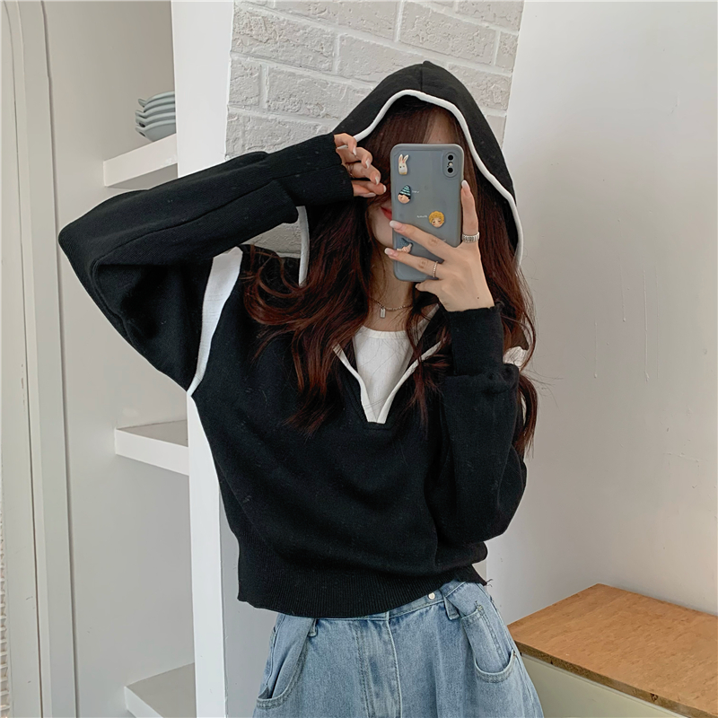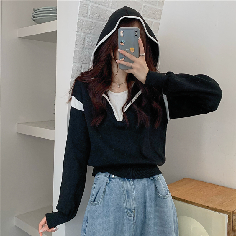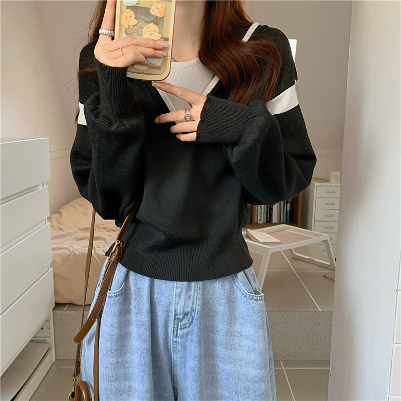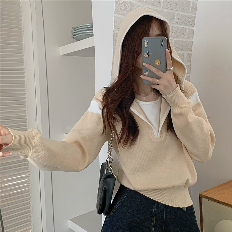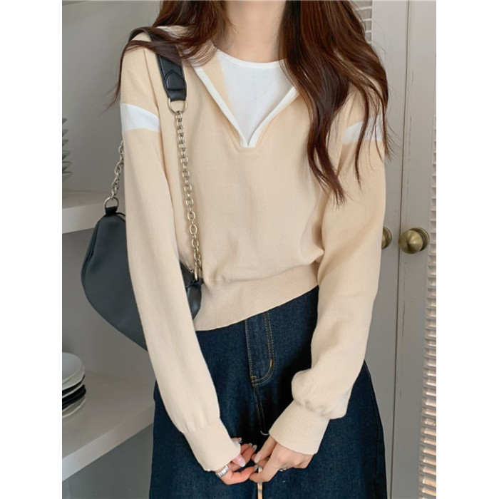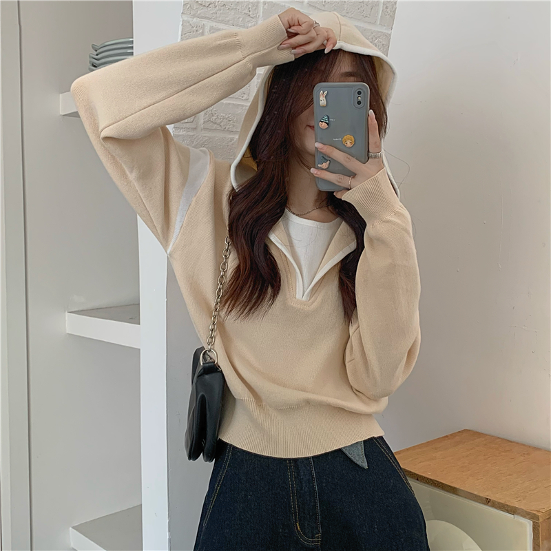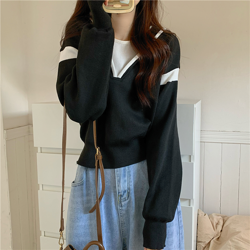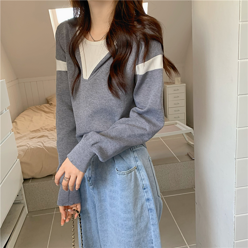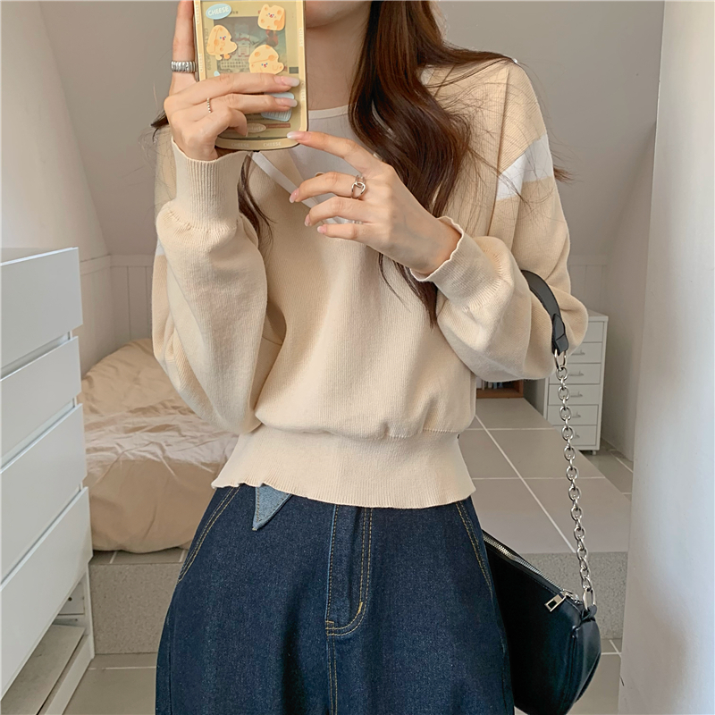 假兩件南瓜橘色長袖上衣女春秋義烏打底內搭歐貨衛衣T恤配工裝褲