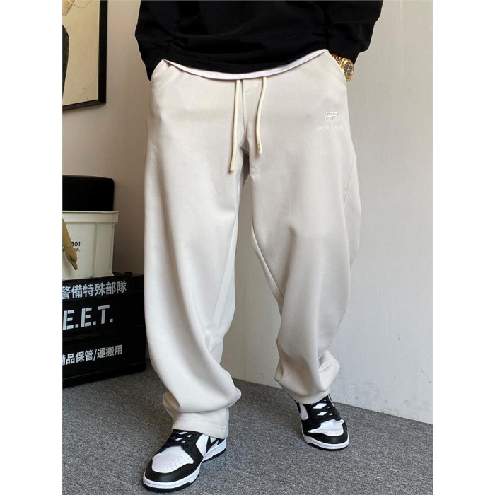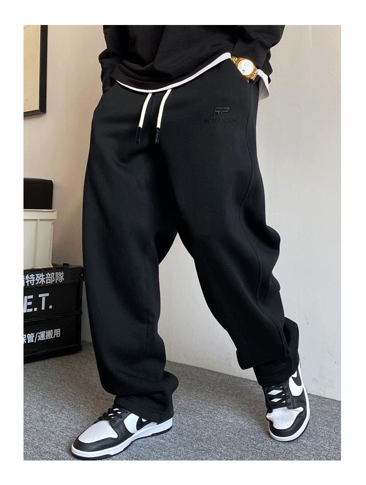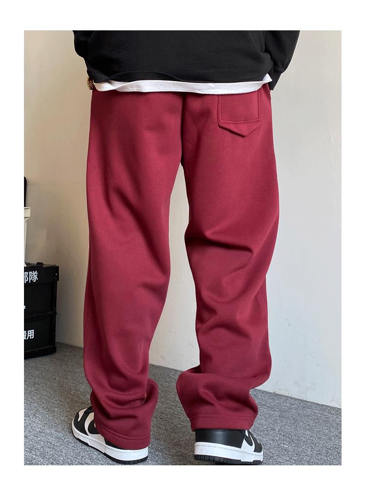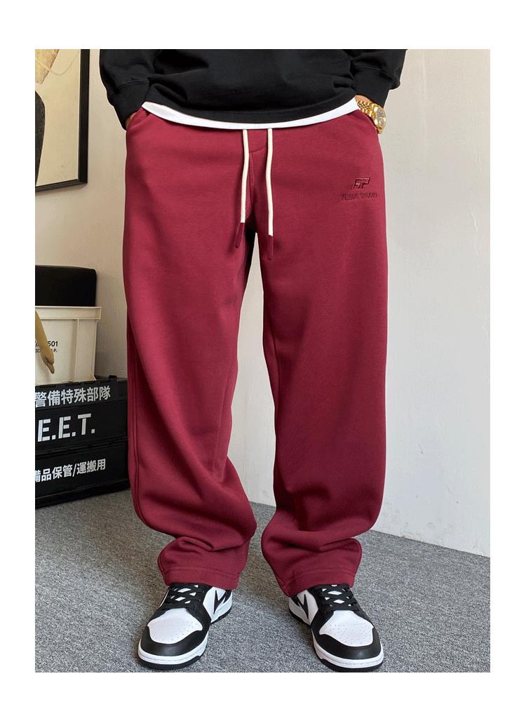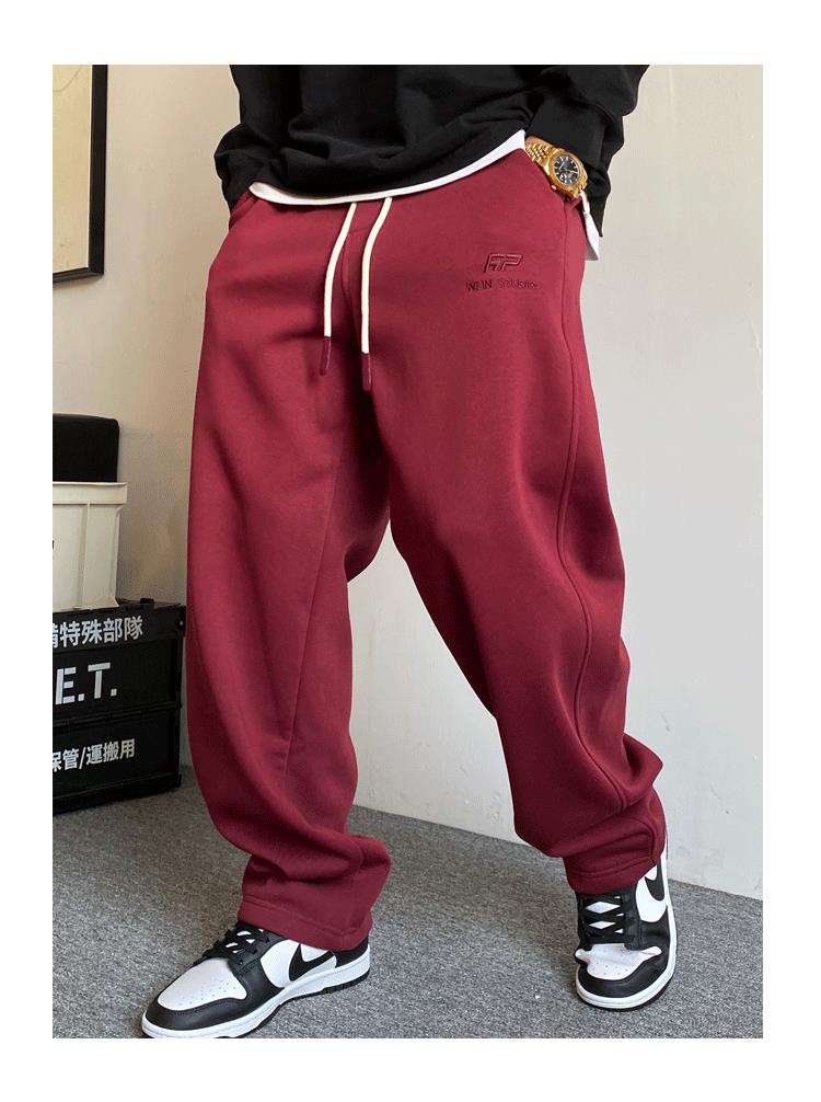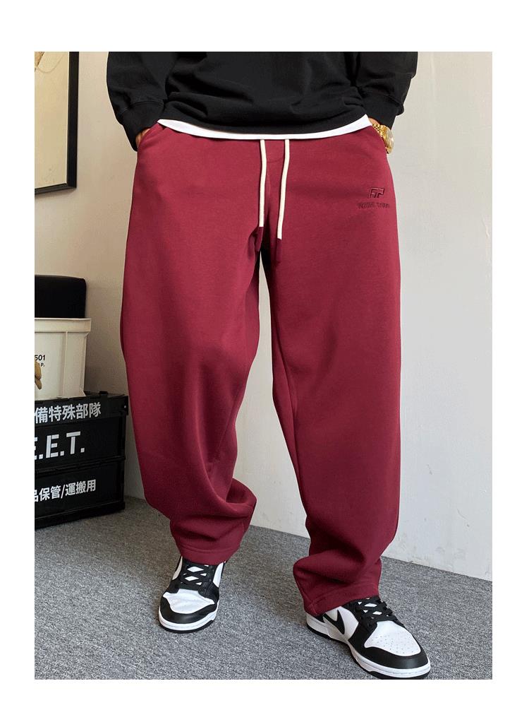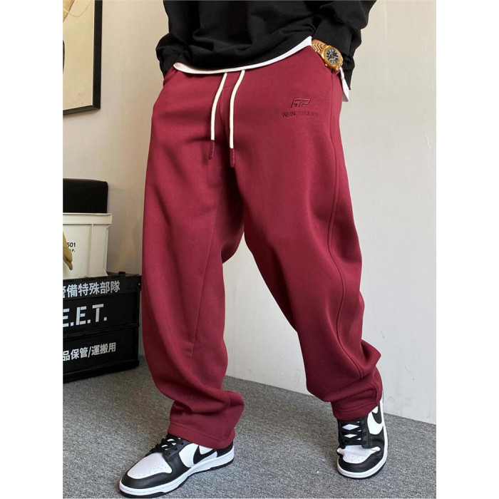 加肥加大碼休閒高級酒紅色衛褲男寬松抽繩百搭高街濶腿運動褲子潮