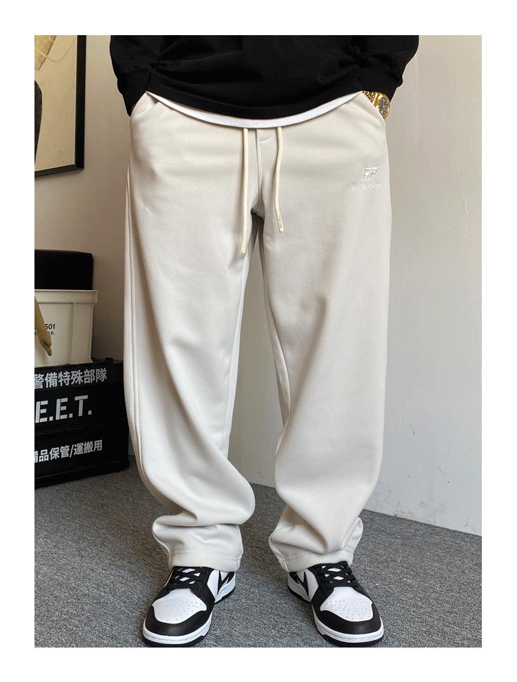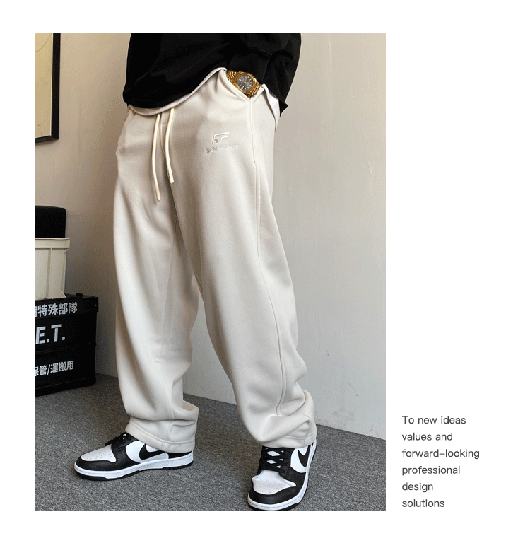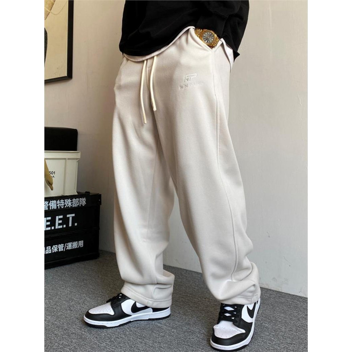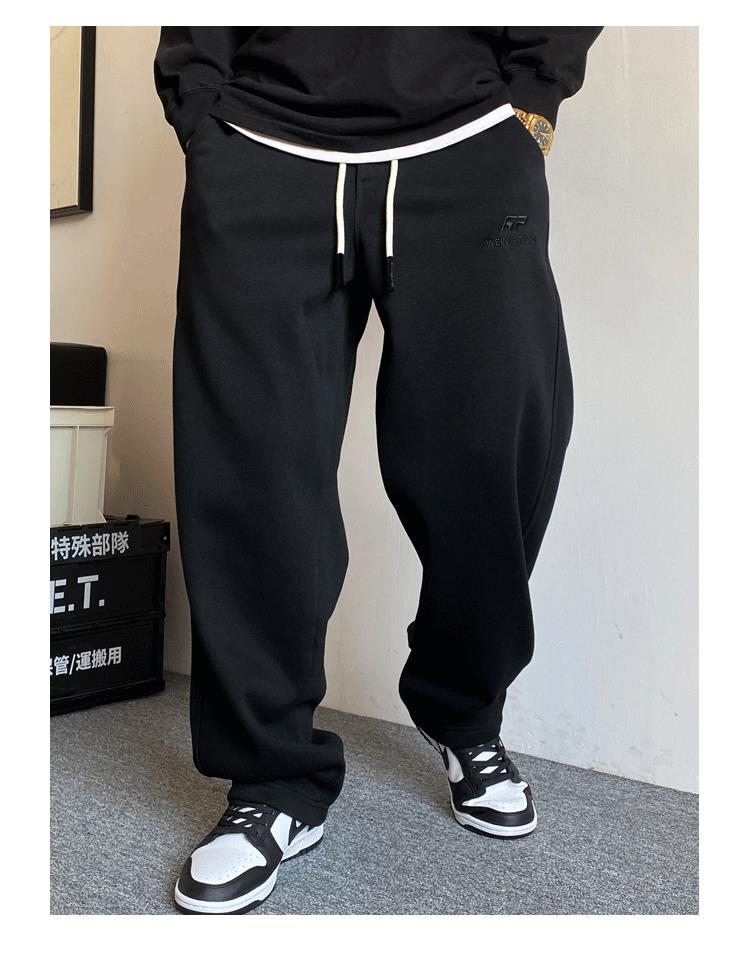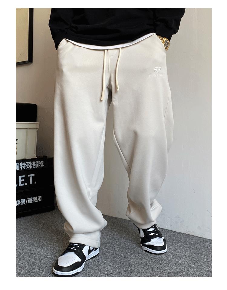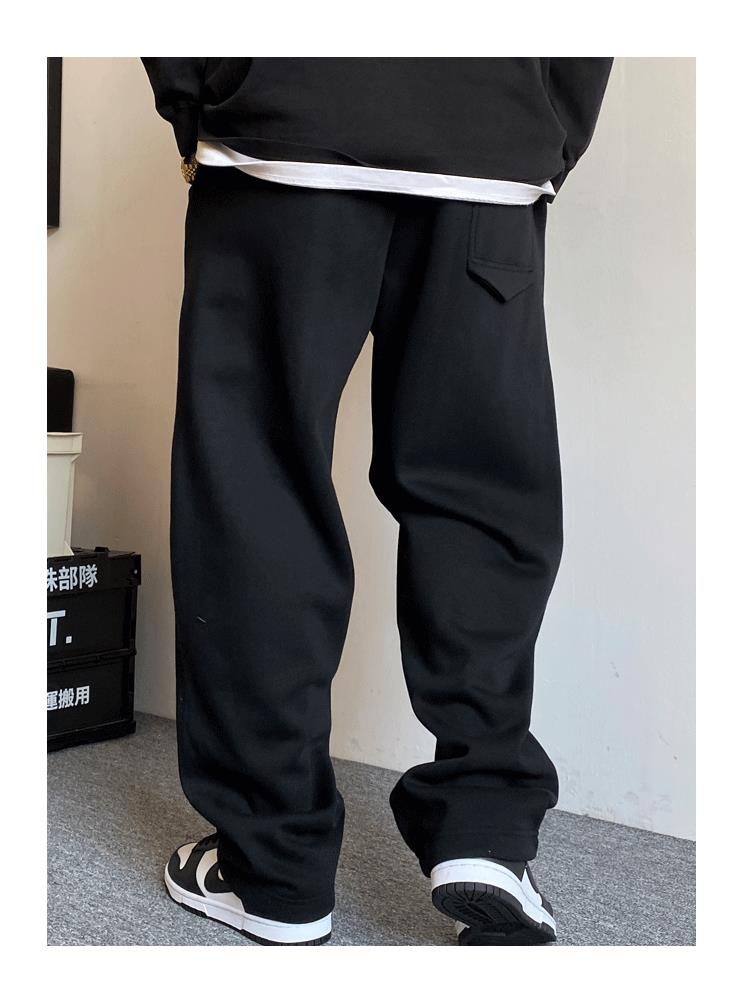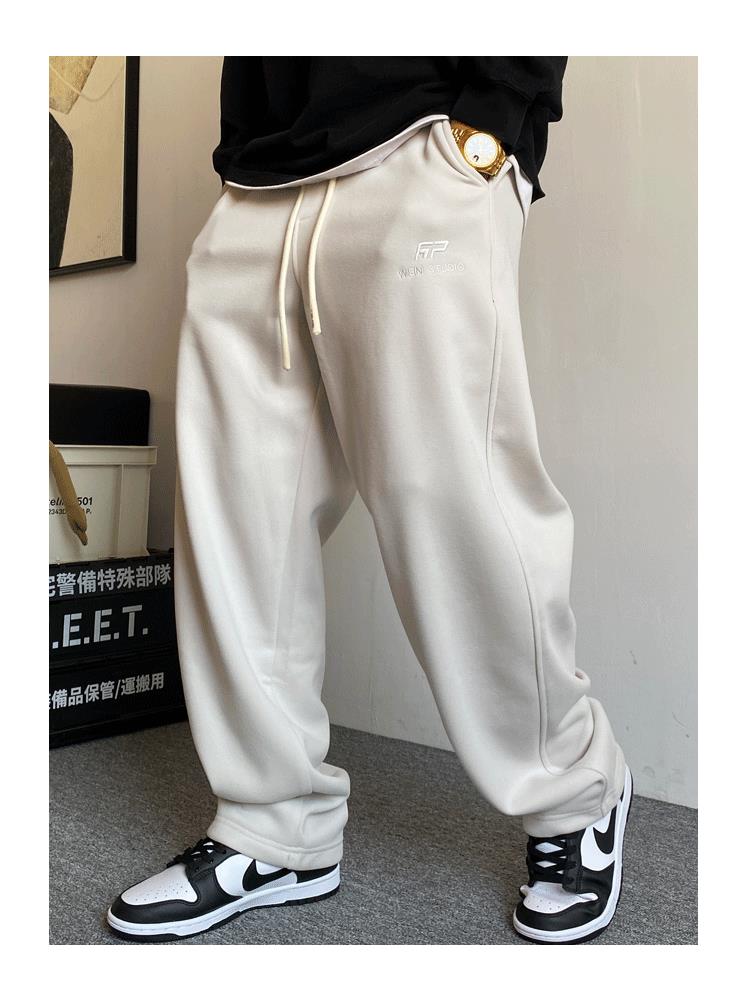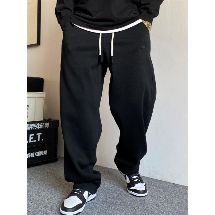 加肥加大碼休閒高級酒紅色衛褲男寬松抽繩百搭高街濶腿運動褲子潮