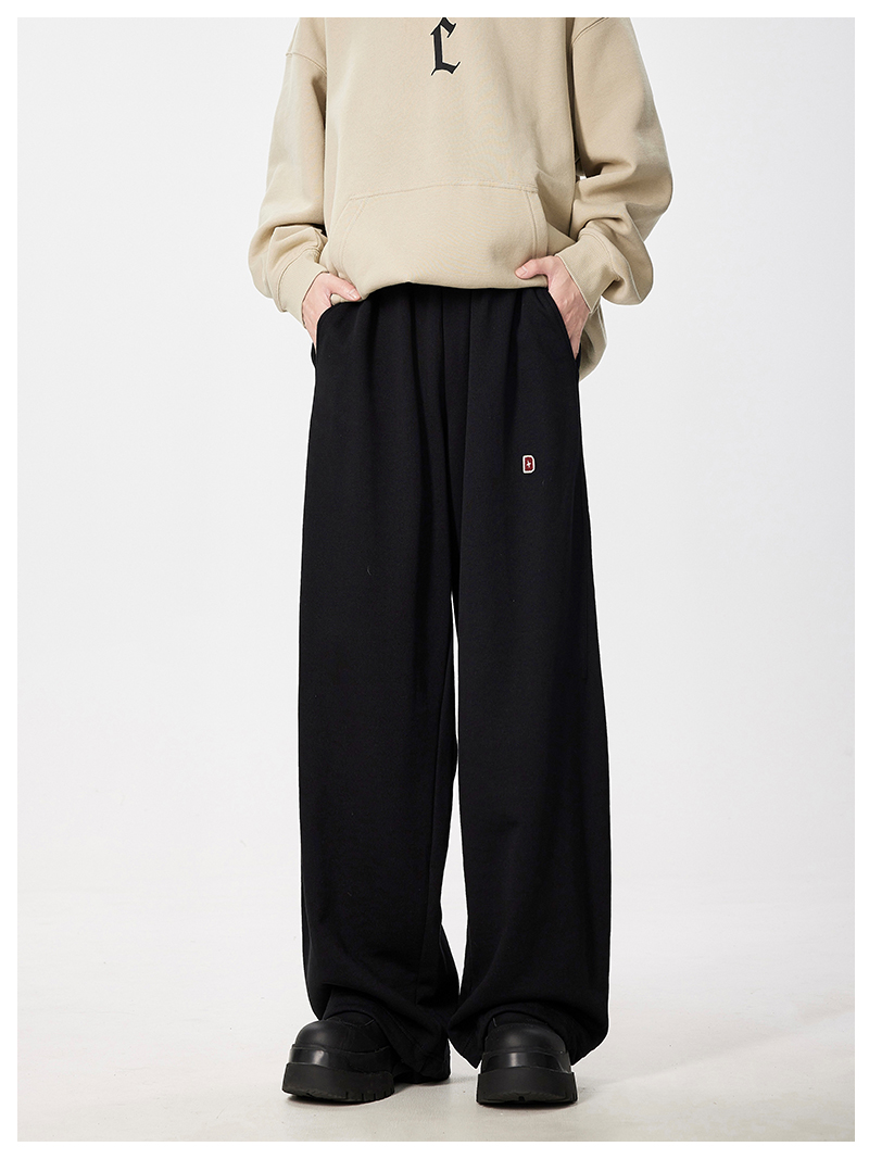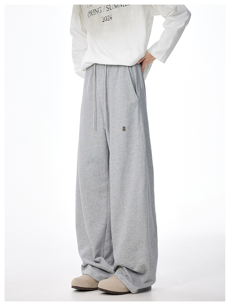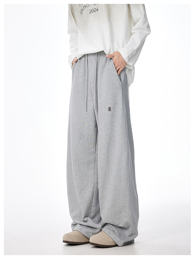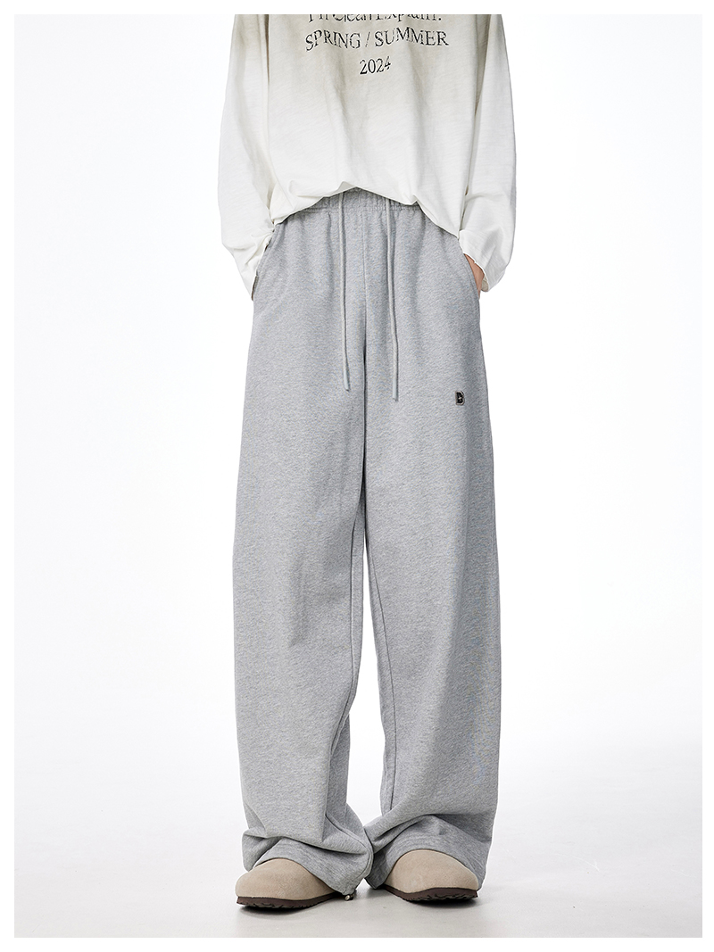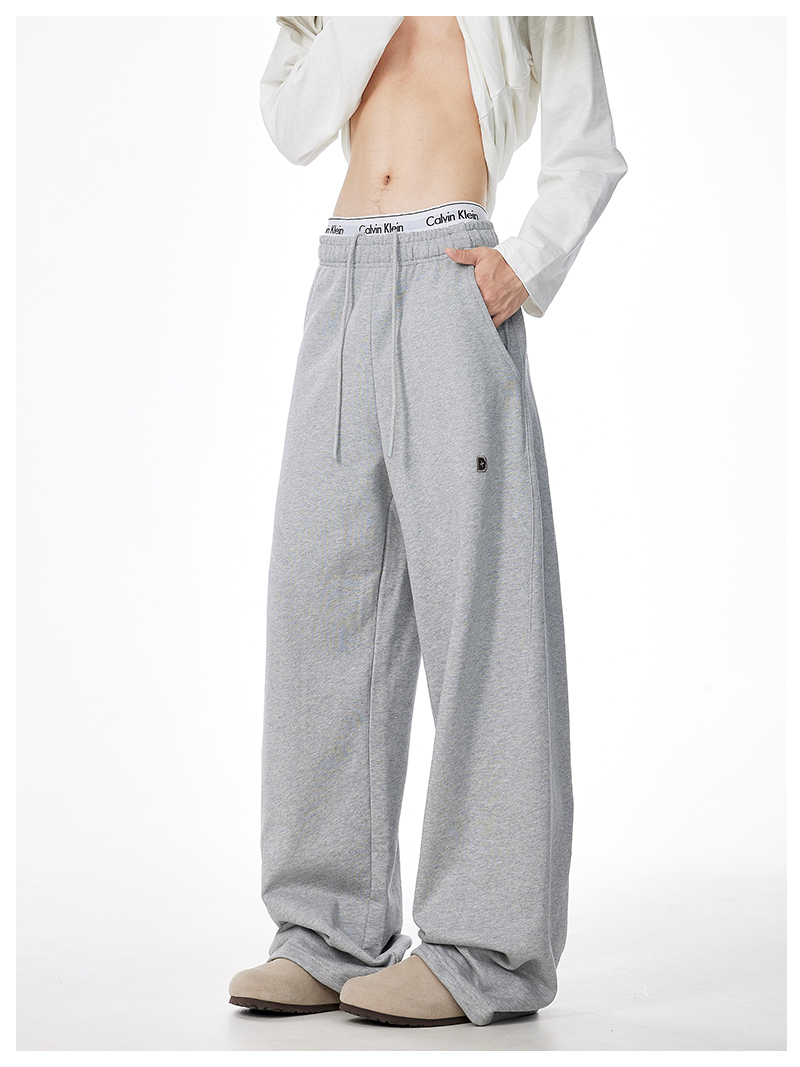 灰色運動衛褲男潮牌高街新款直筒拖地寬松垂感cleanfit休閒長褲子