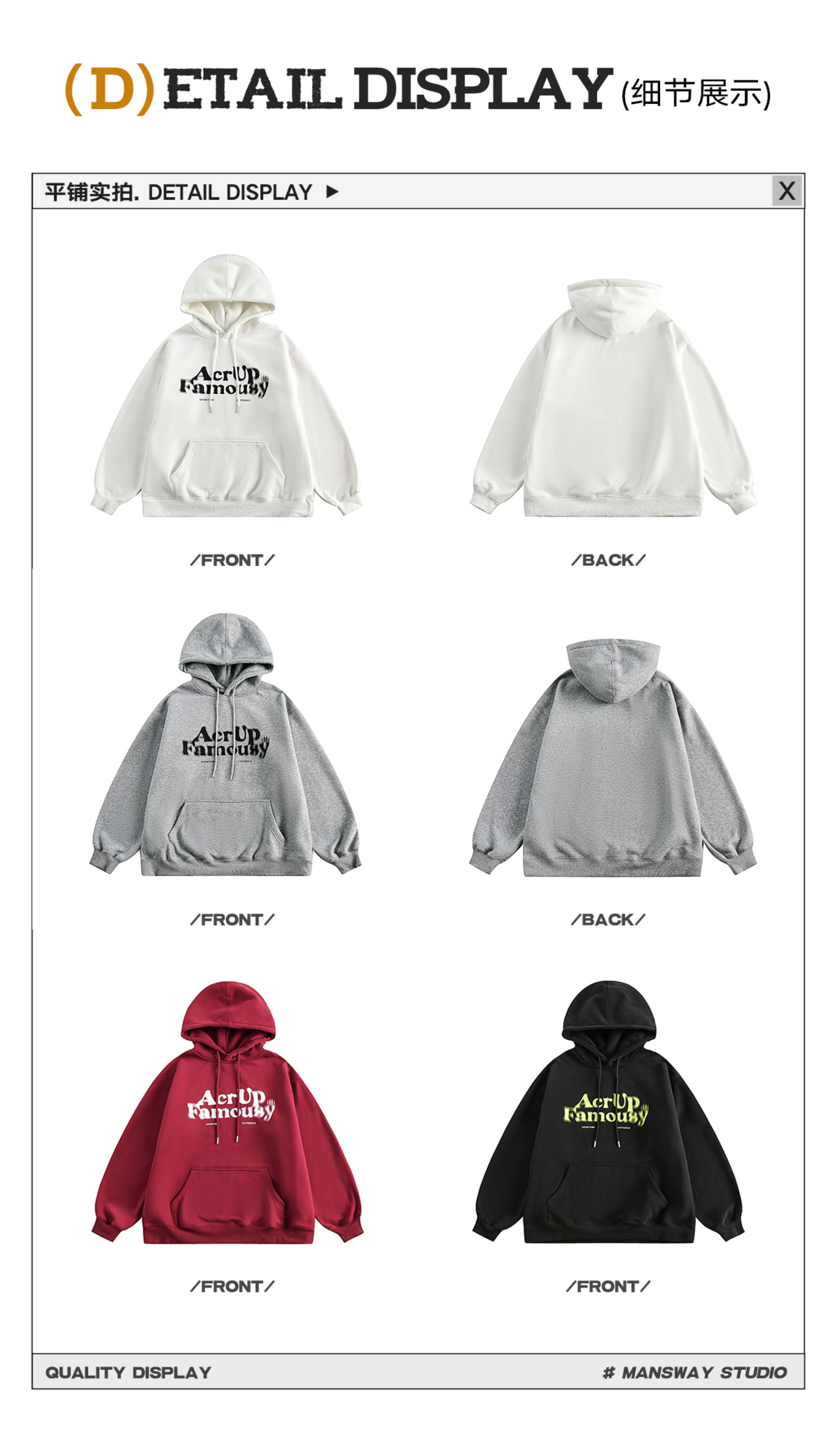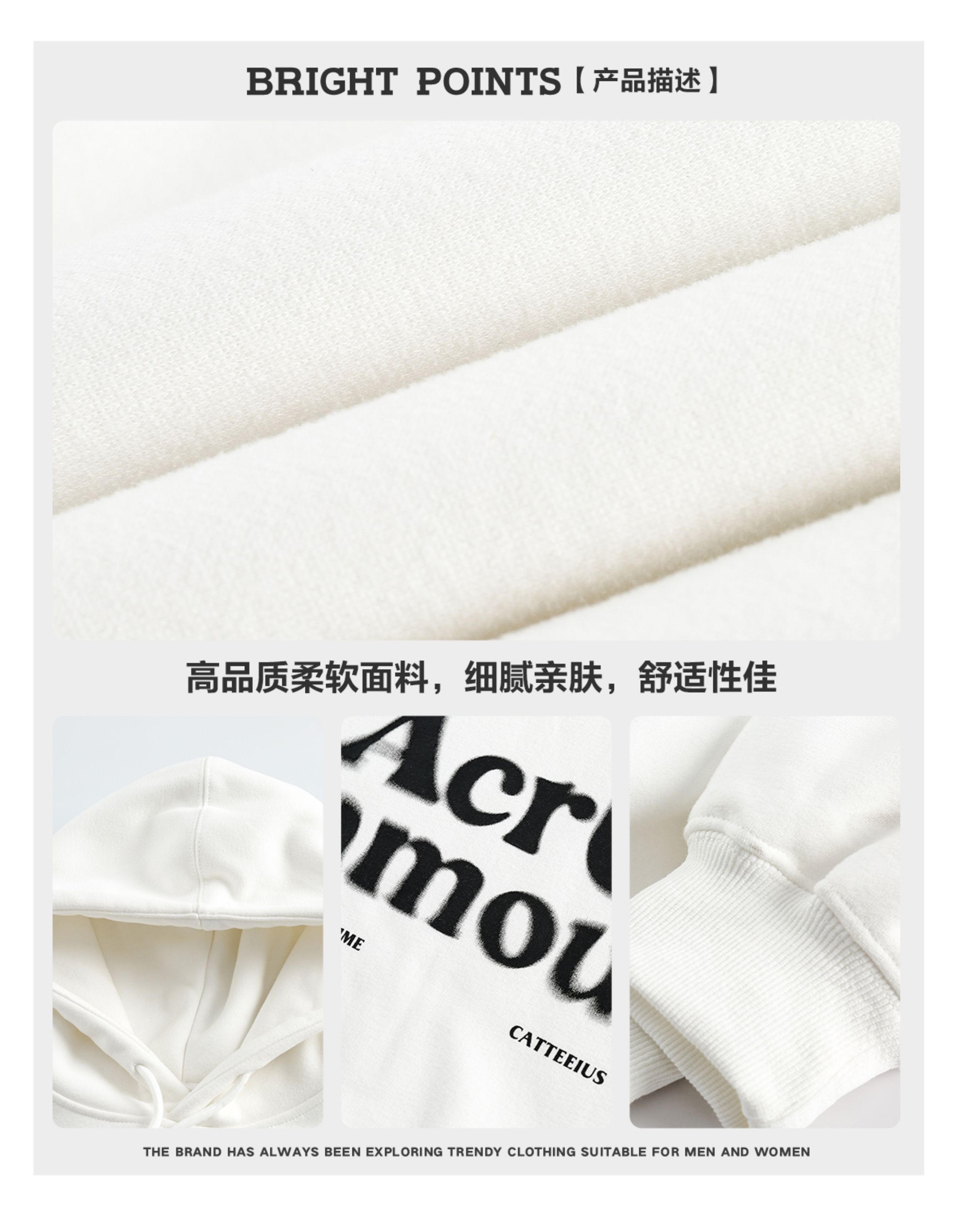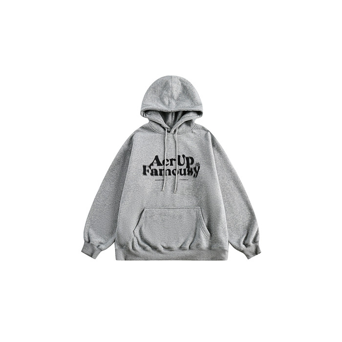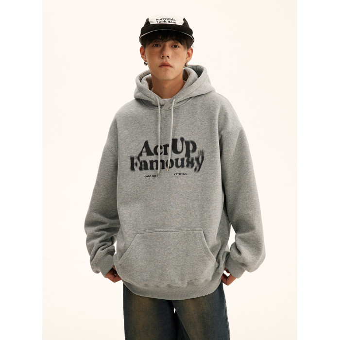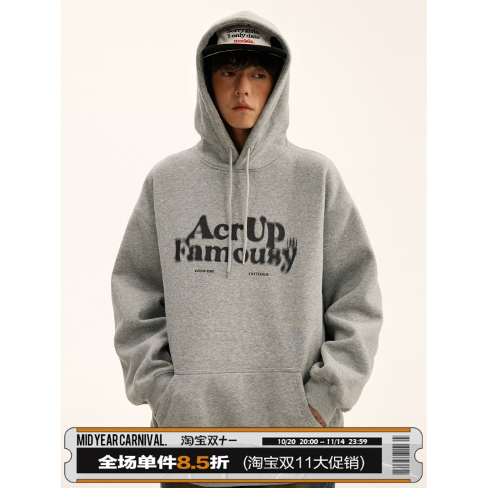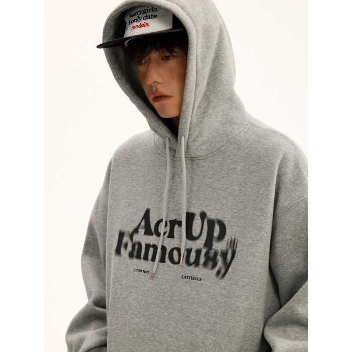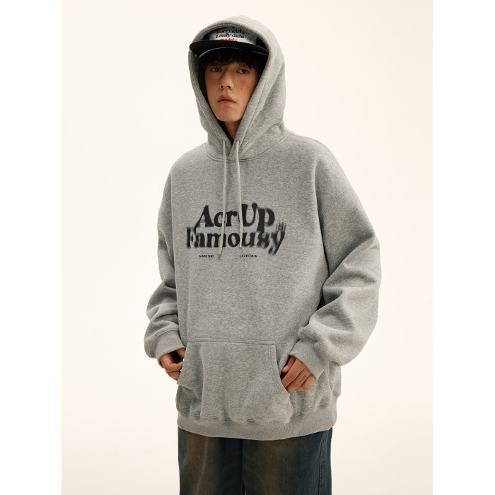 男道秋冬重磅模糊字母連帽加絨印花衛衣男士美式寬松高街套頭上衣