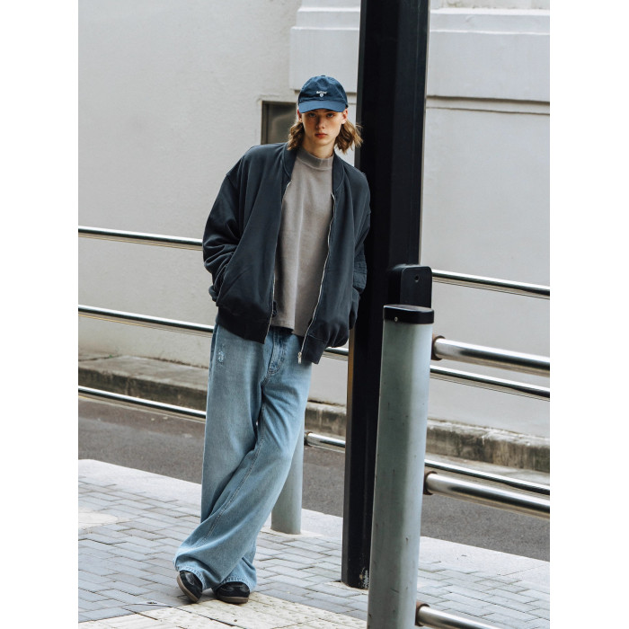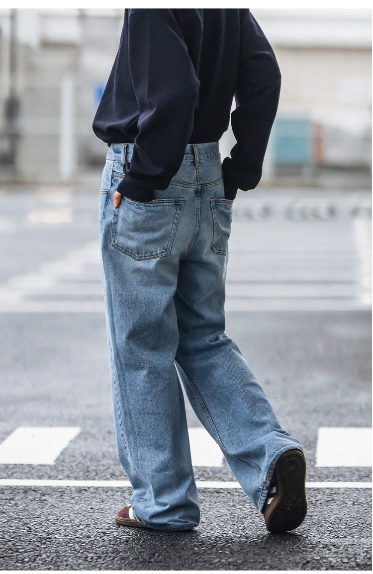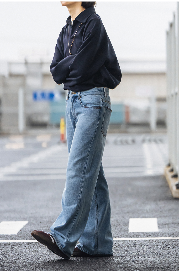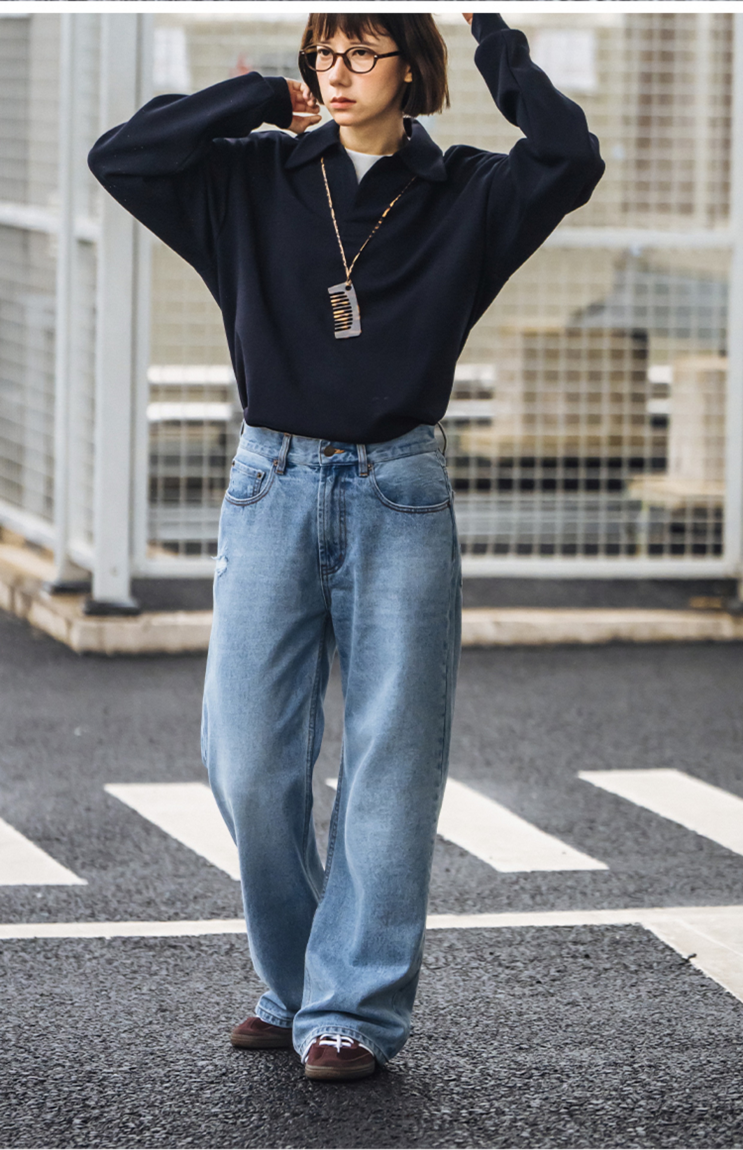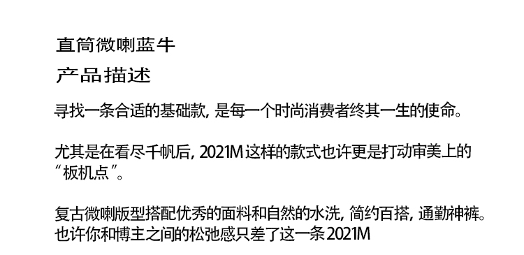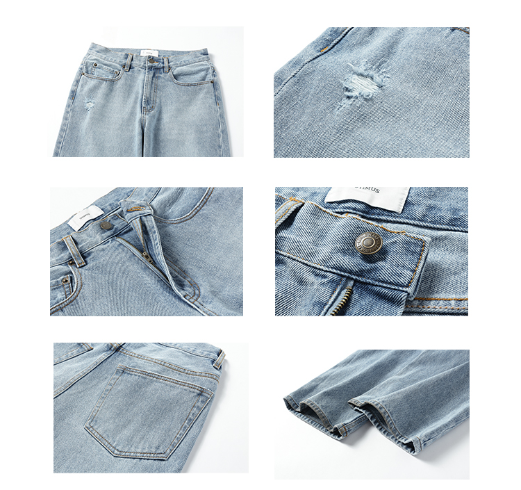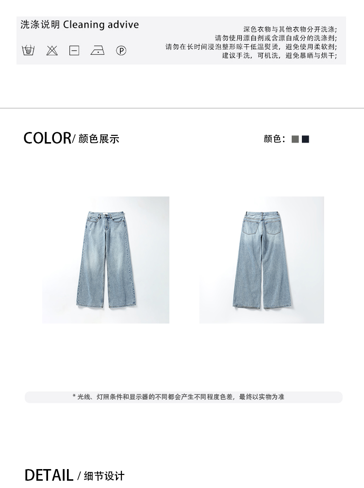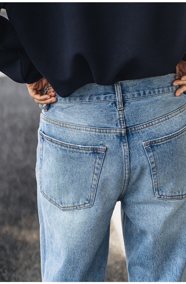 UTIMUS藍色牛仔褲2021M版型寬松微喇藍牛長褲高腰直筒褲淺藍色