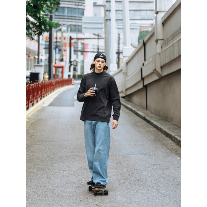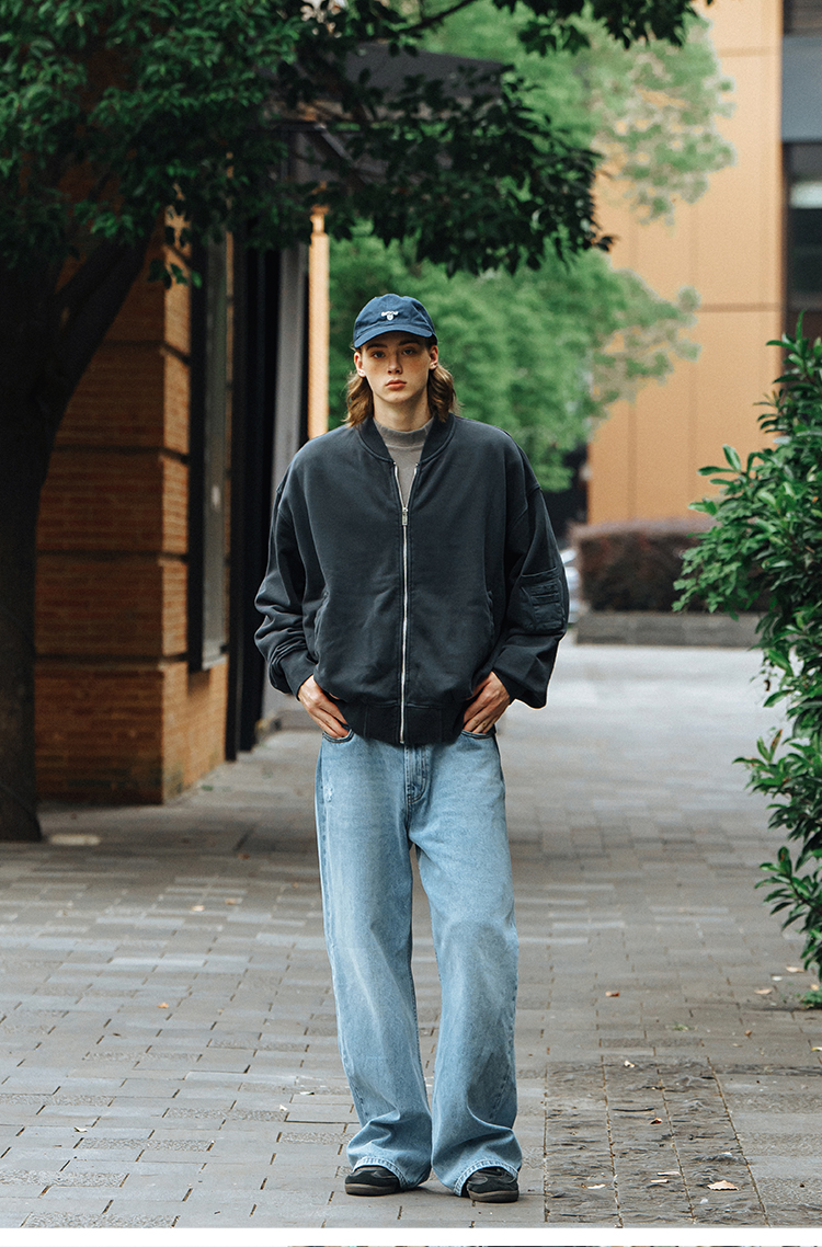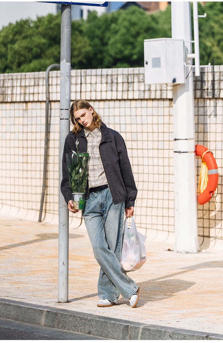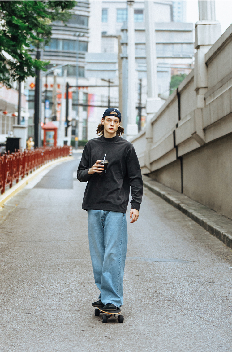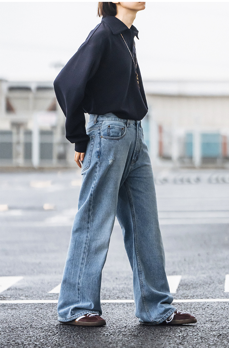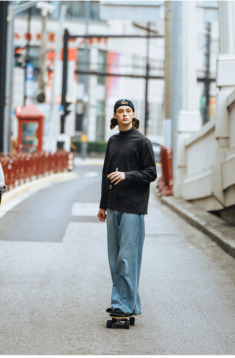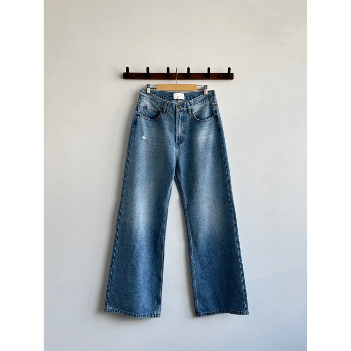 UTIMUS藍色牛仔褲2021M版型寬松微喇藍牛長褲高腰直筒褲淺藍色