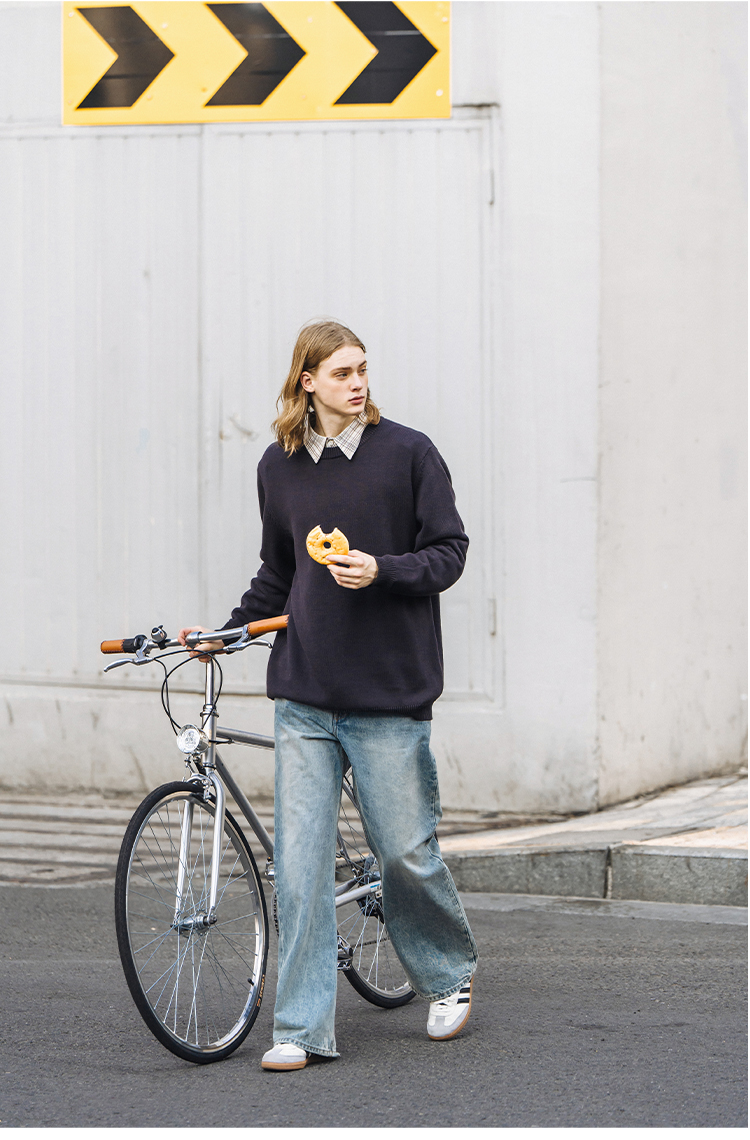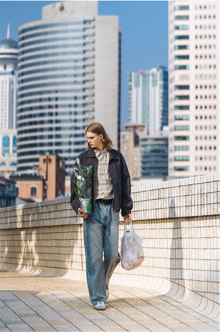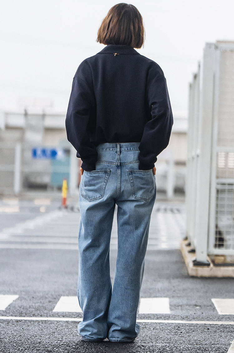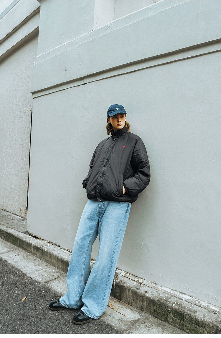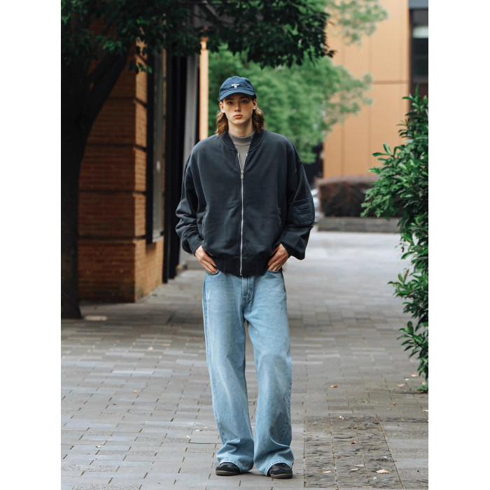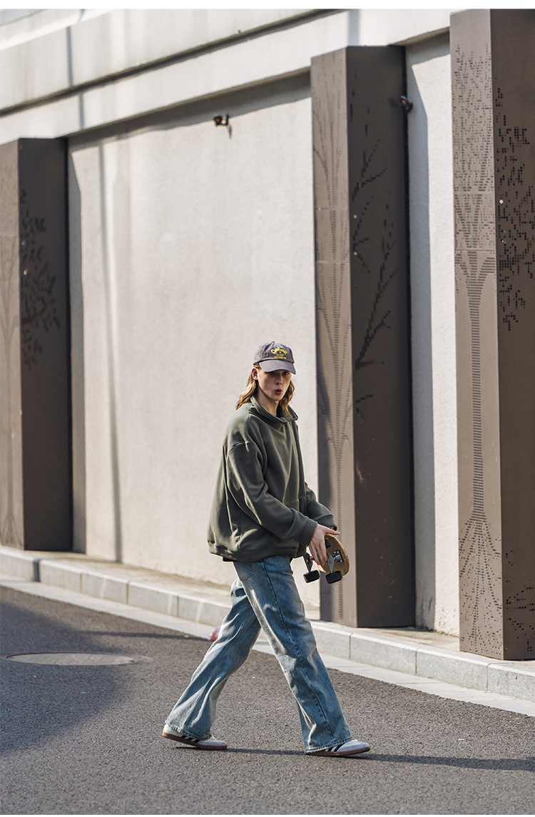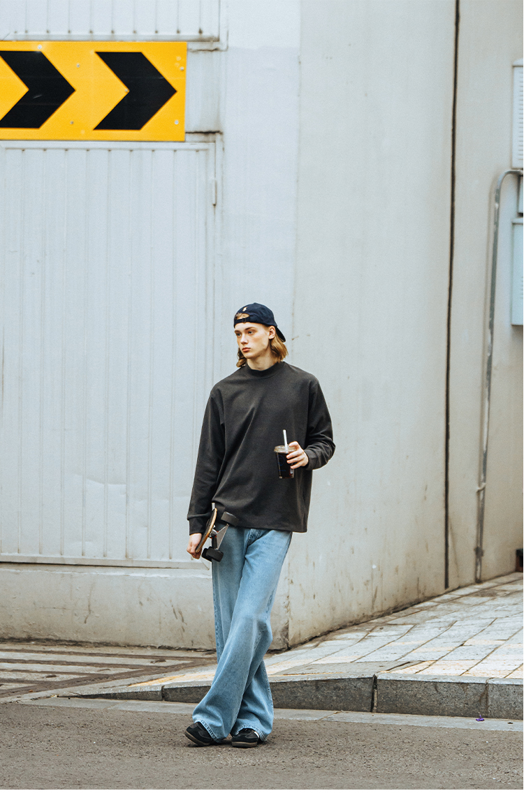 UTIMUS藍色牛仔褲2021M版型寬松微喇藍牛長褲高腰直筒褲淺藍色