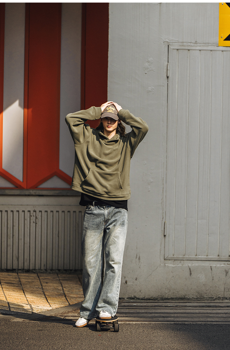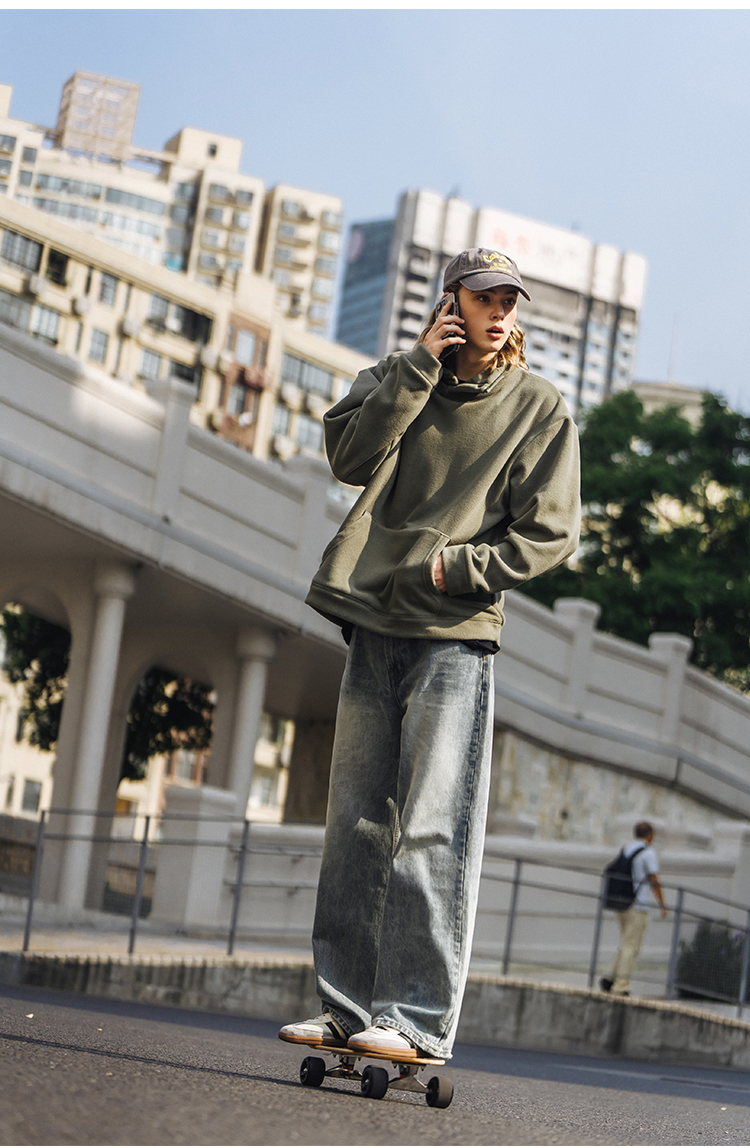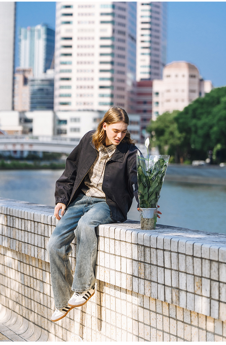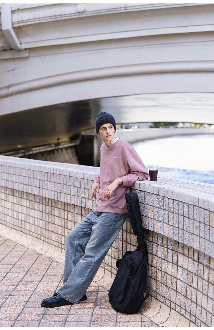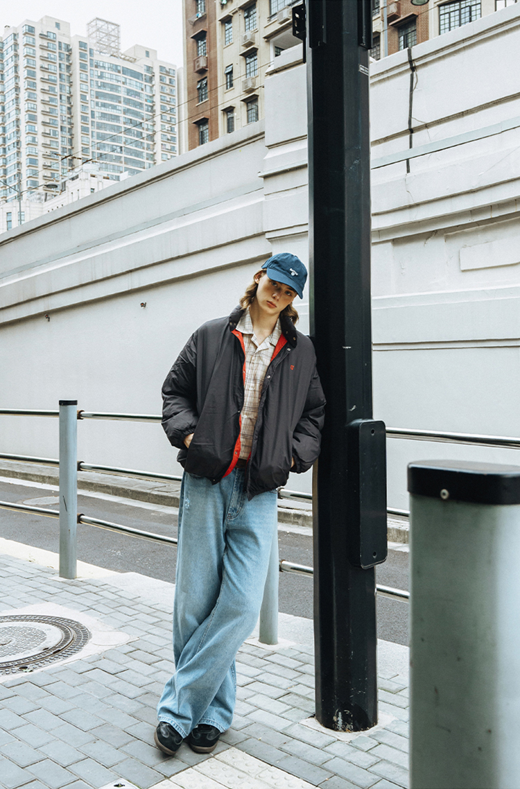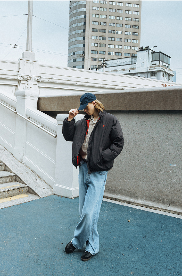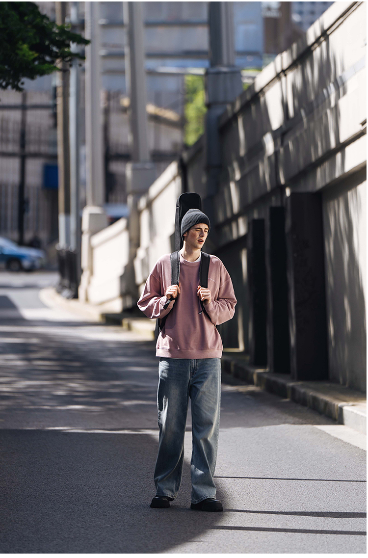 UTIMUS藍色牛仔褲2021M版型寬松微喇藍牛長褲高腰直筒褲淺藍色