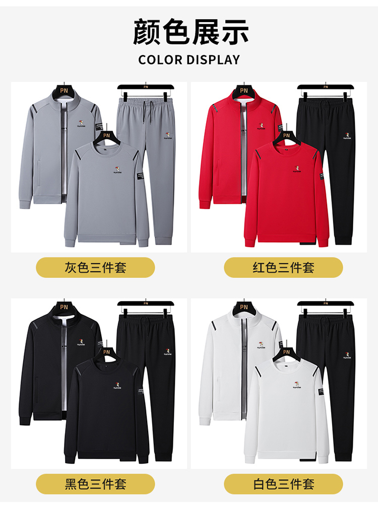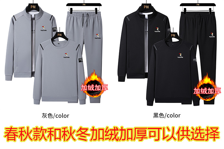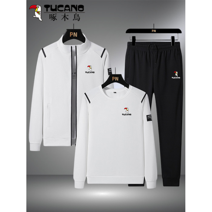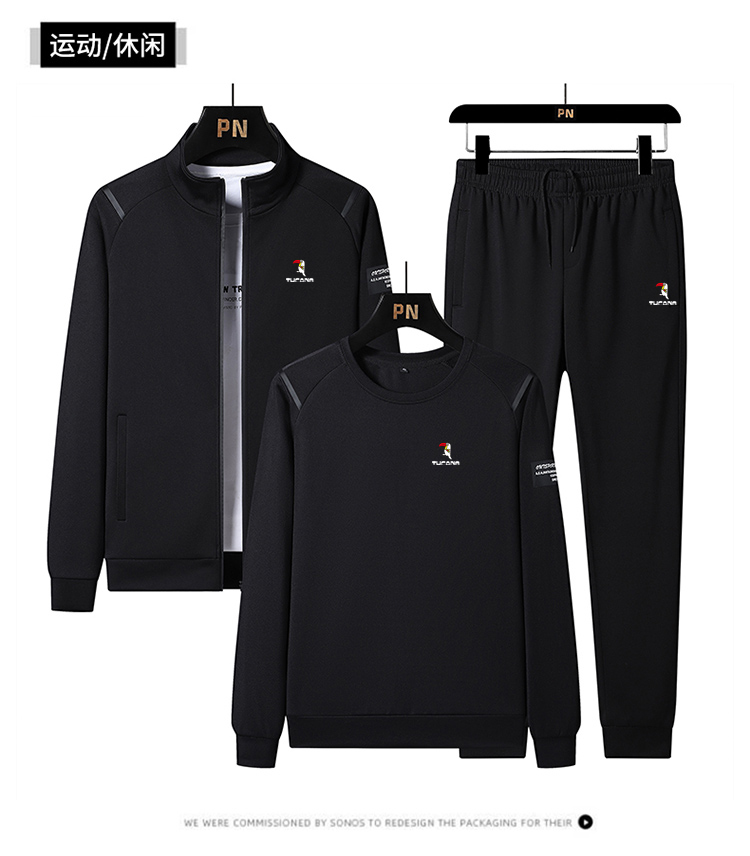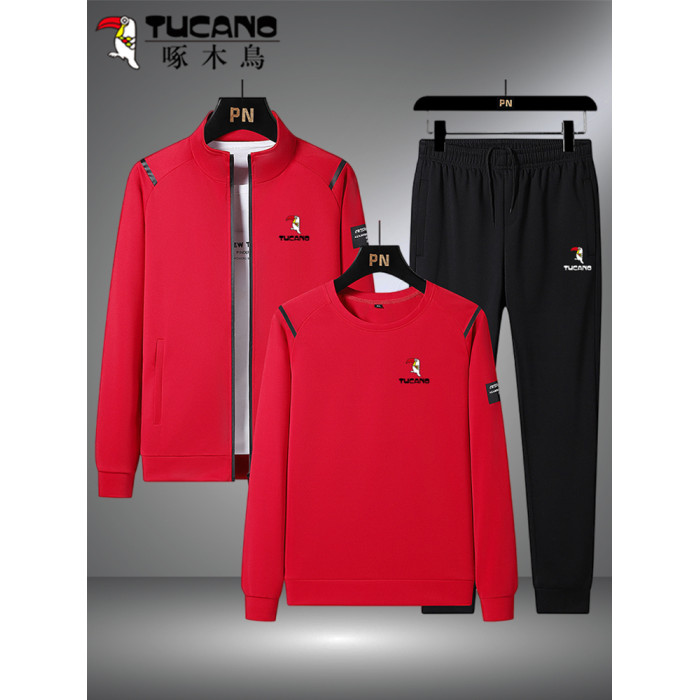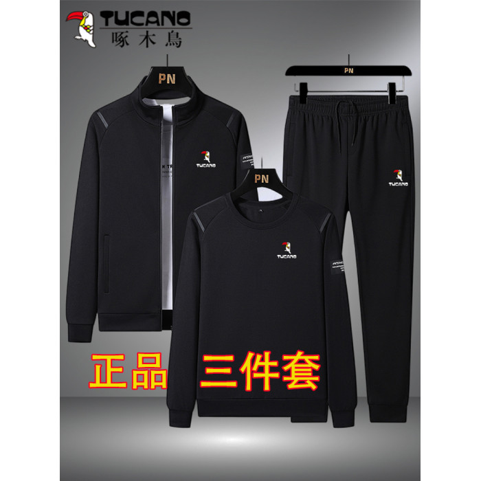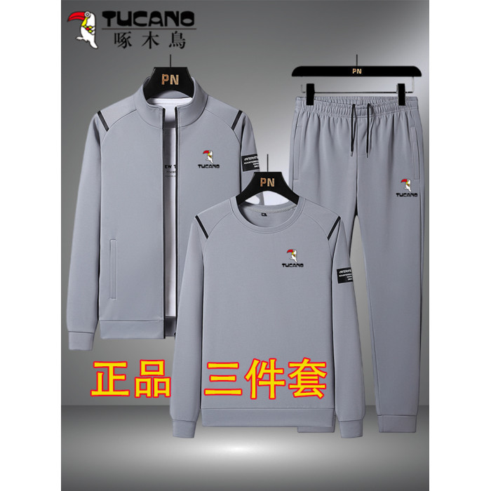 啄木鳥運動套裝男士秋冬季跑步休閒大碼運動服開衫衛衣三件套男裝