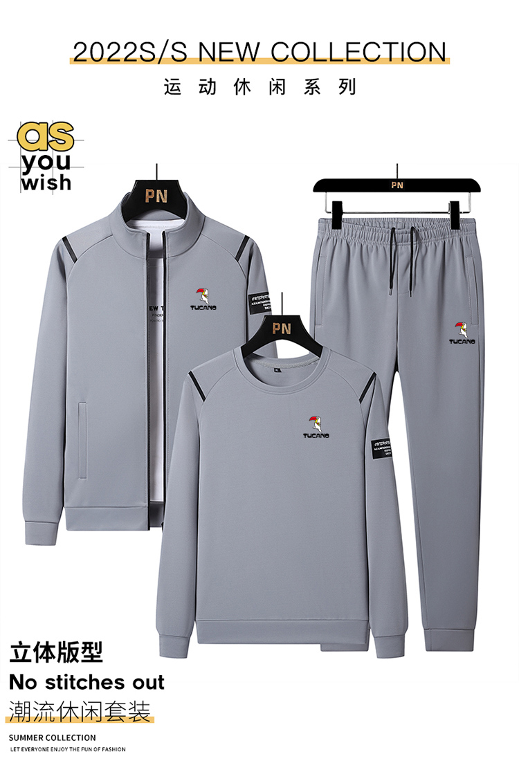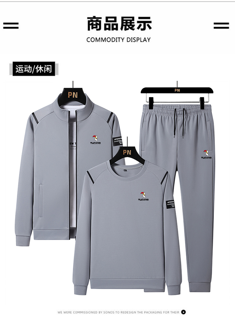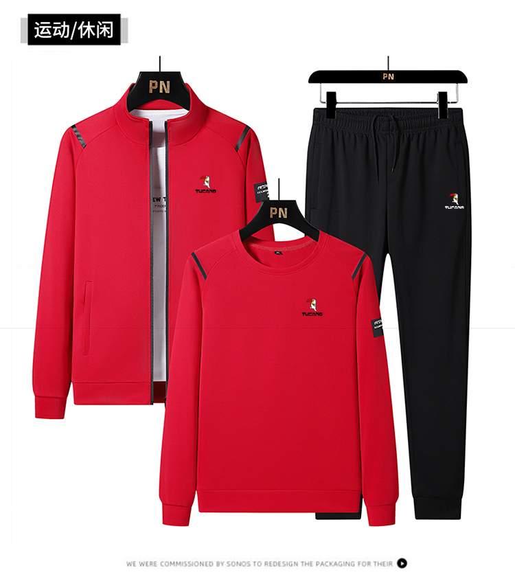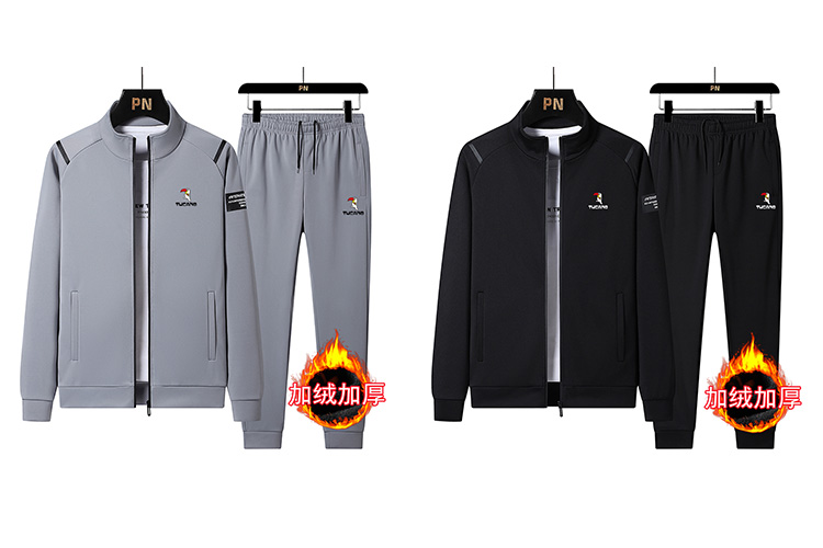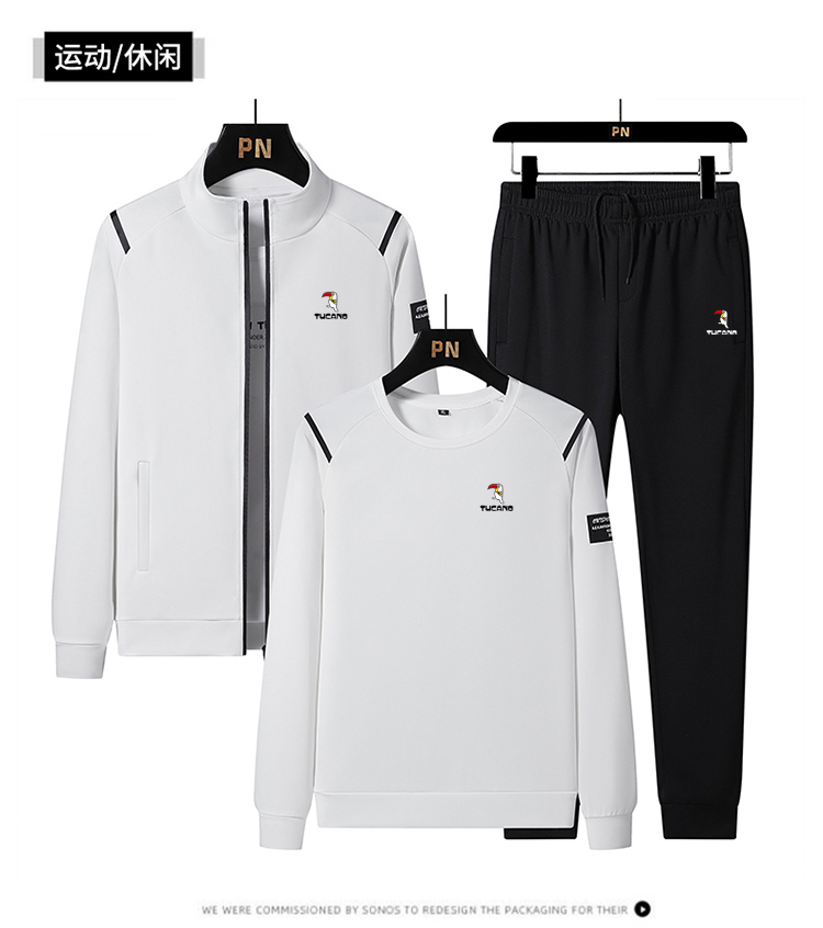 啄木鳥運動套裝男士秋冬季跑步休閒大碼運動服開衫衛衣三件套男裝
