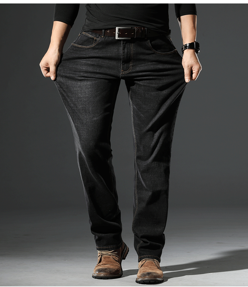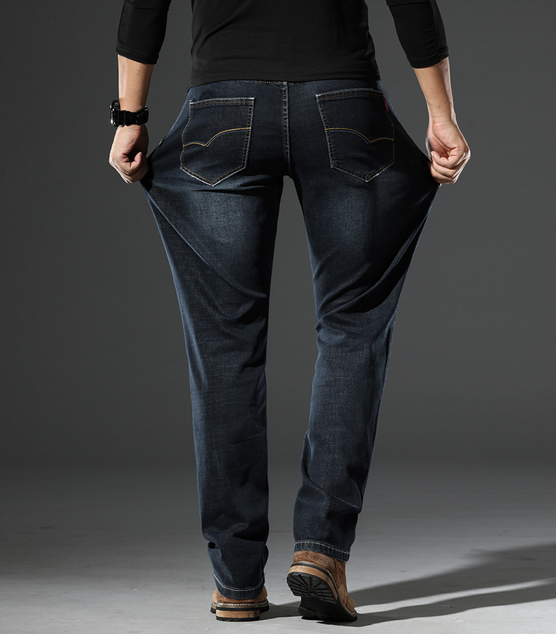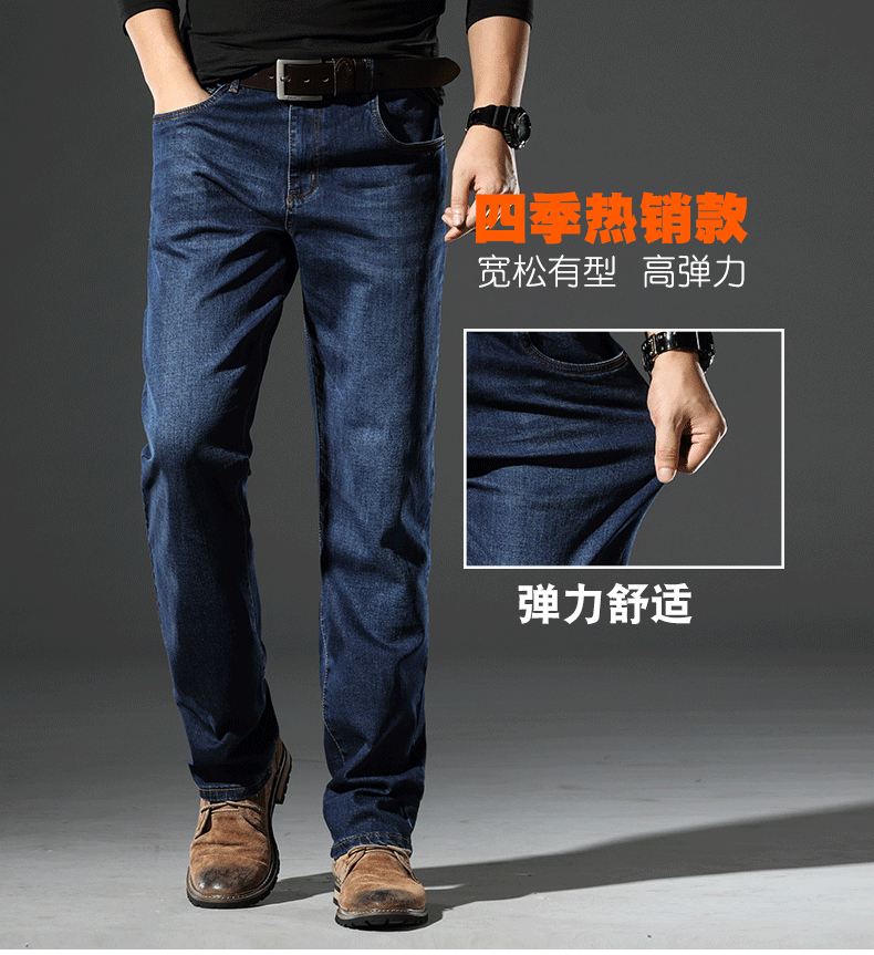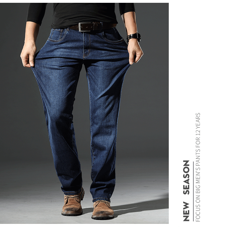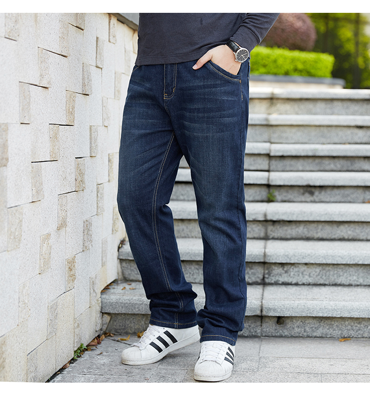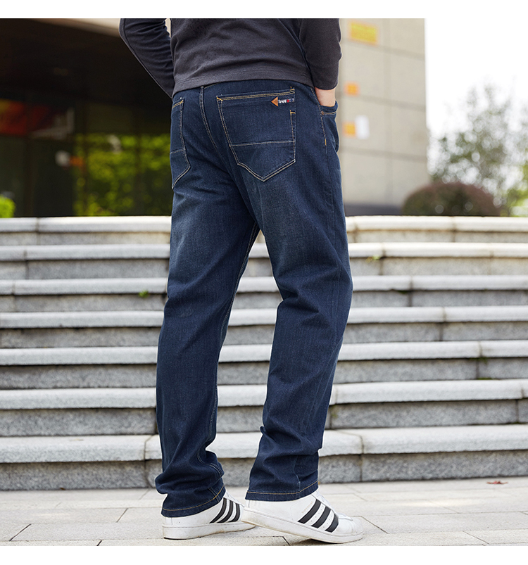 春秋季寬松小直筒牛仔褲男大碼彈力胖子加肥加大商務休閒牛仔長褲
