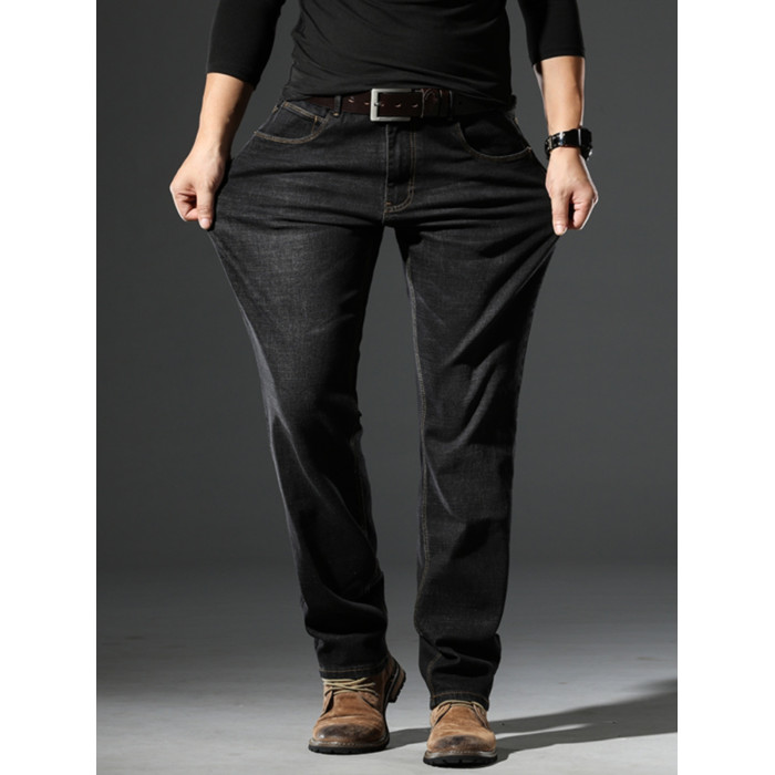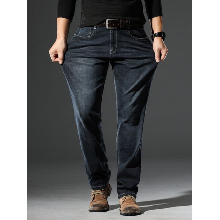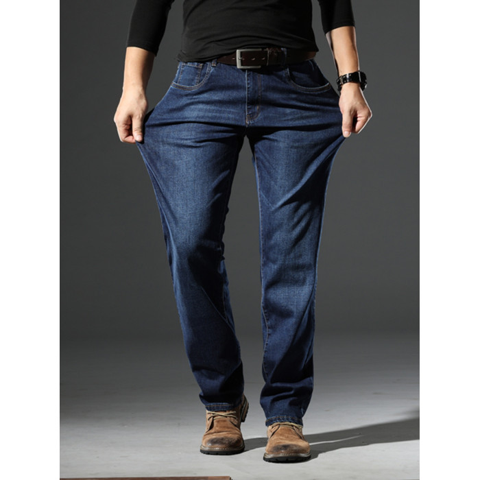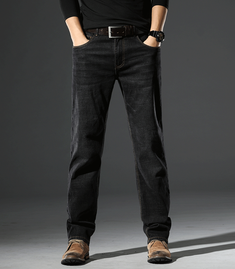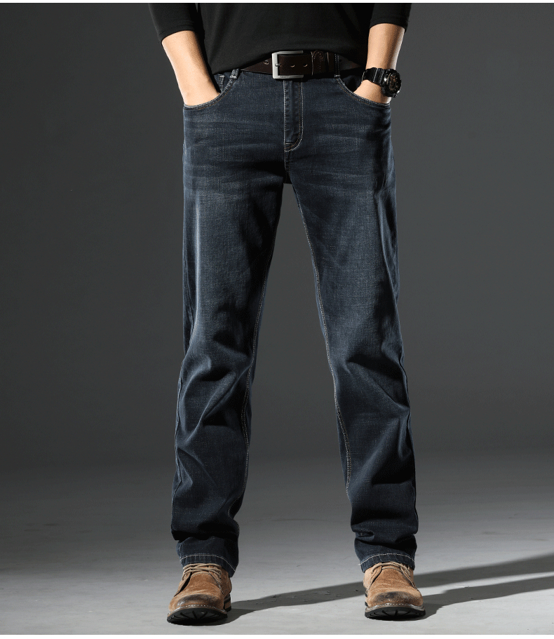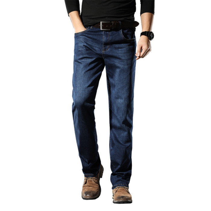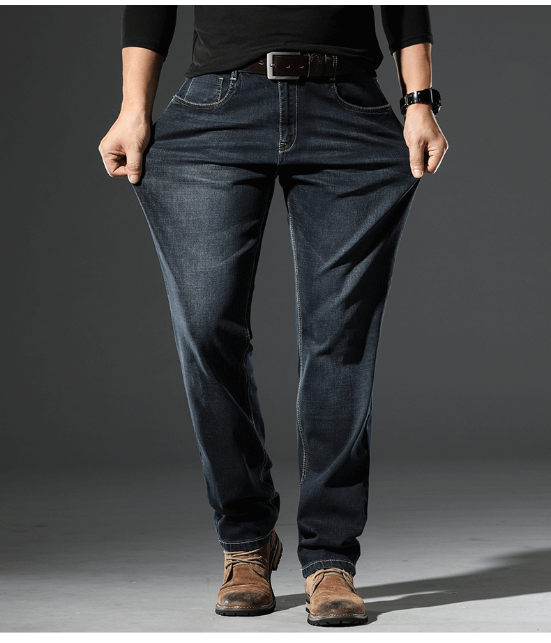 春秋季寬松小直筒牛仔褲男大碼彈力胖子加肥加大商務休閒牛仔長褲