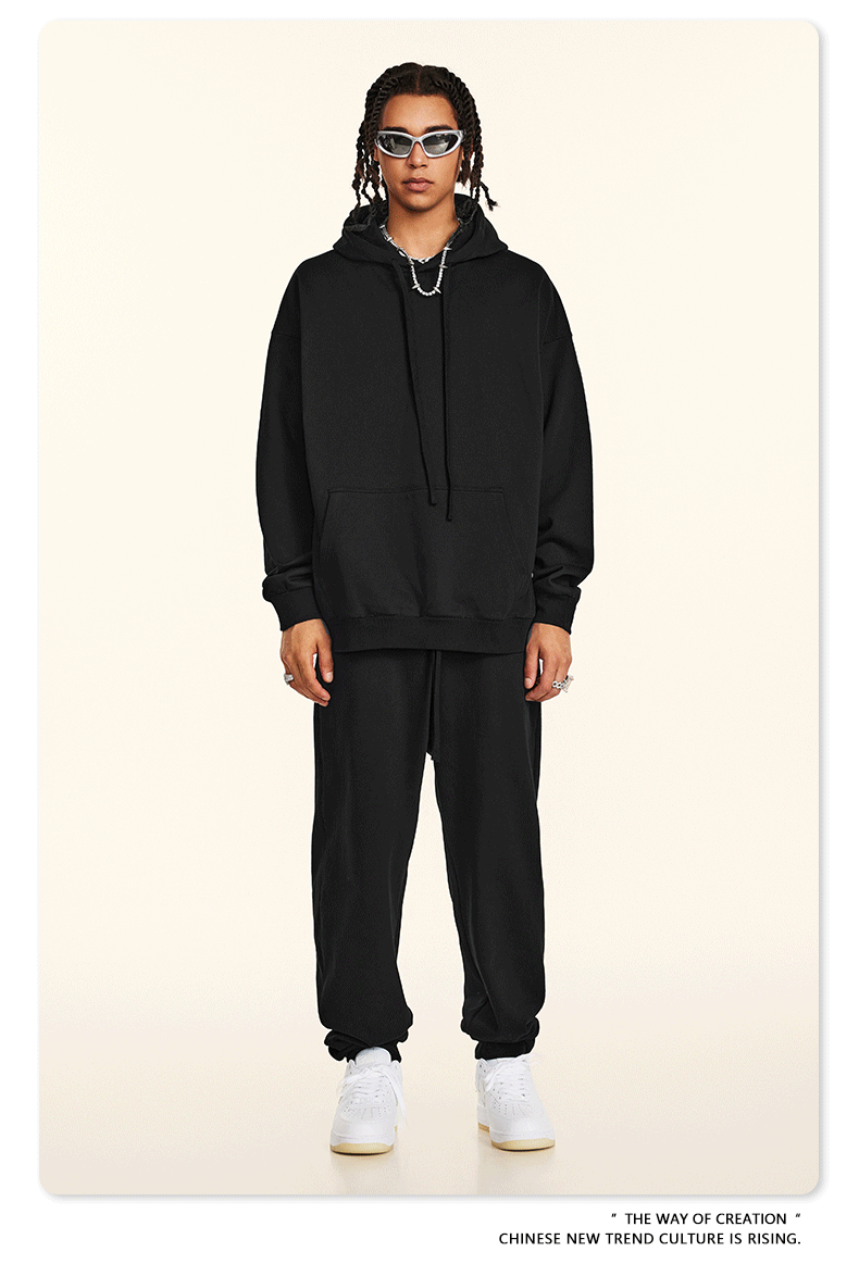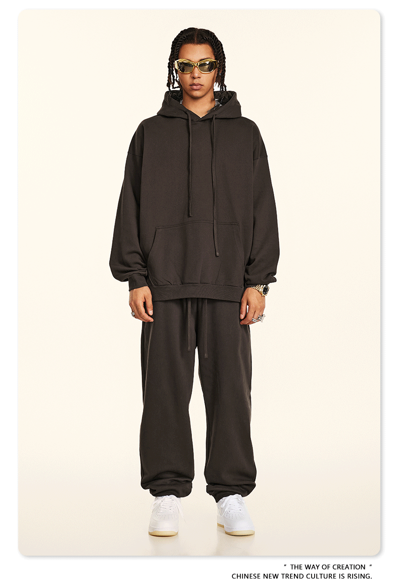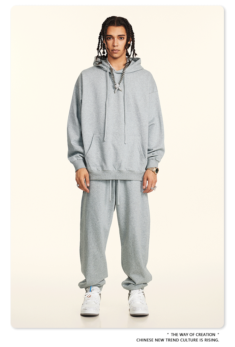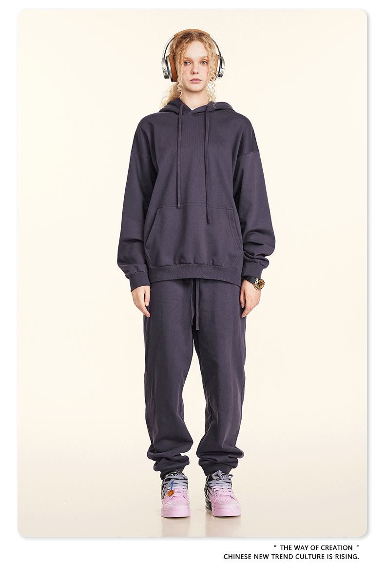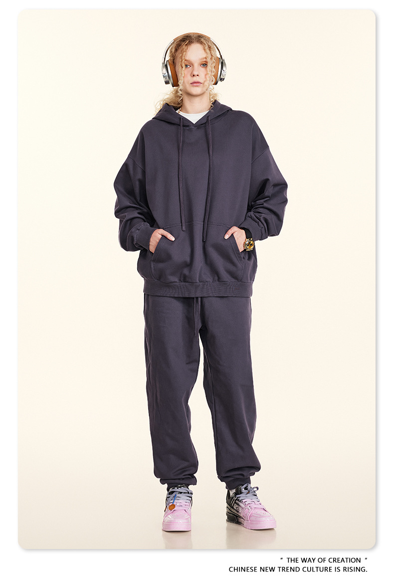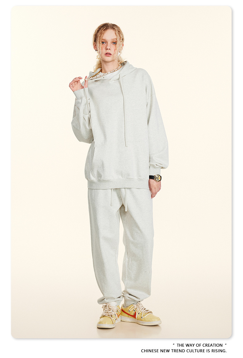 秋冬基礎款純色休閒衛衣衛褲套裝重磅潮牌寬松運動長褲兩件套男士