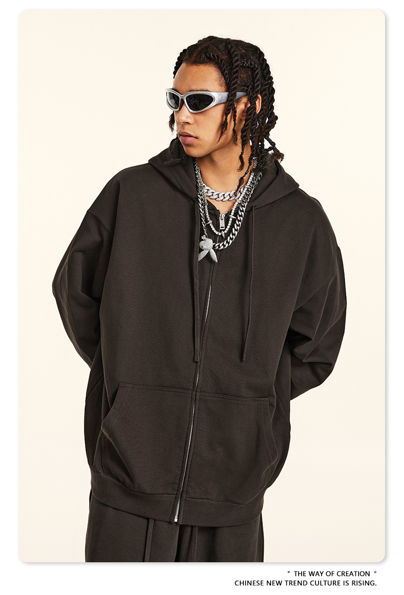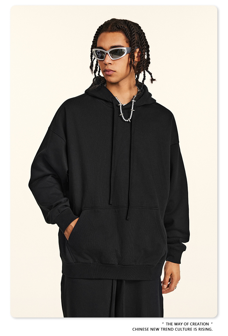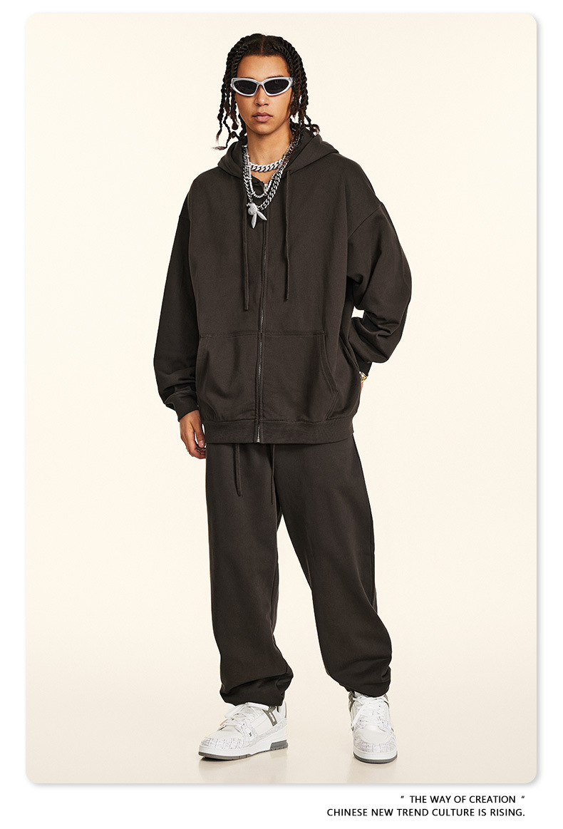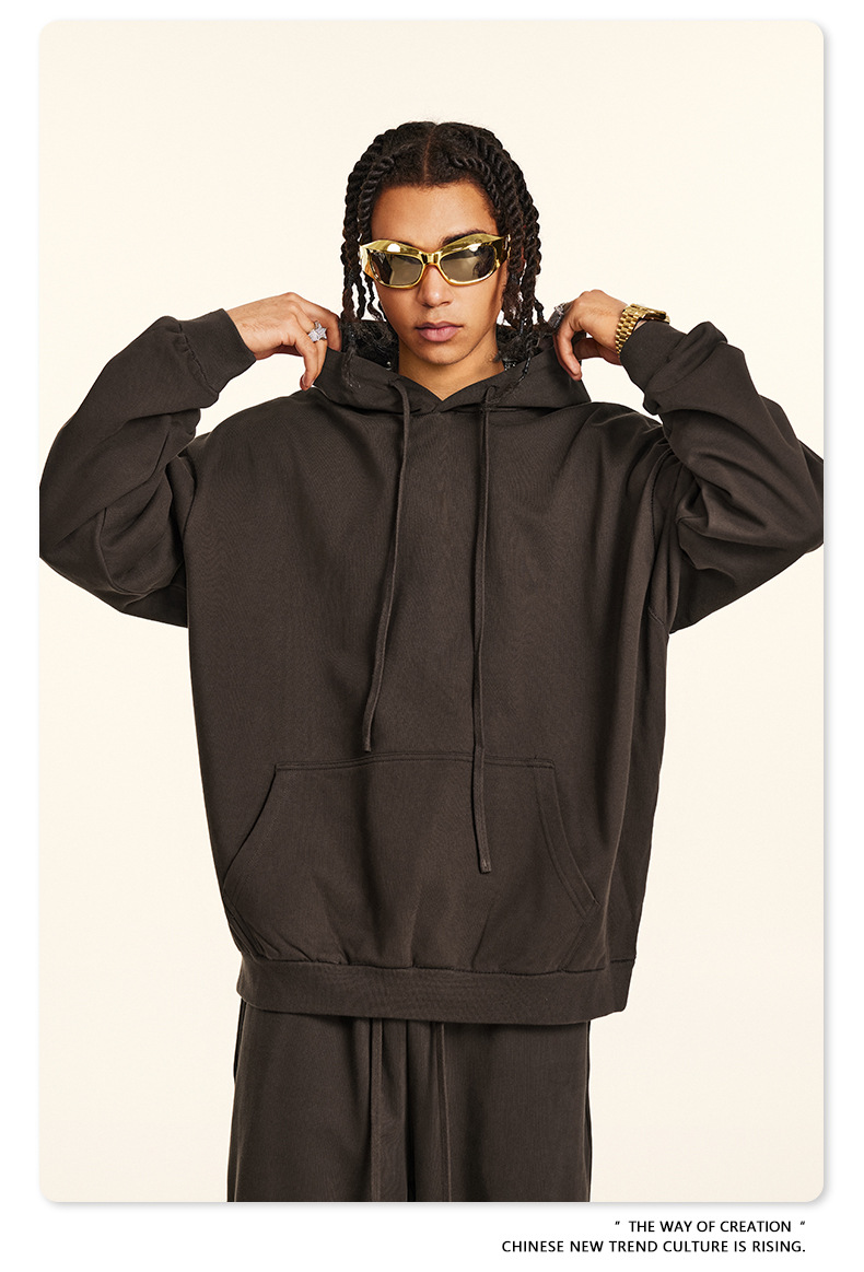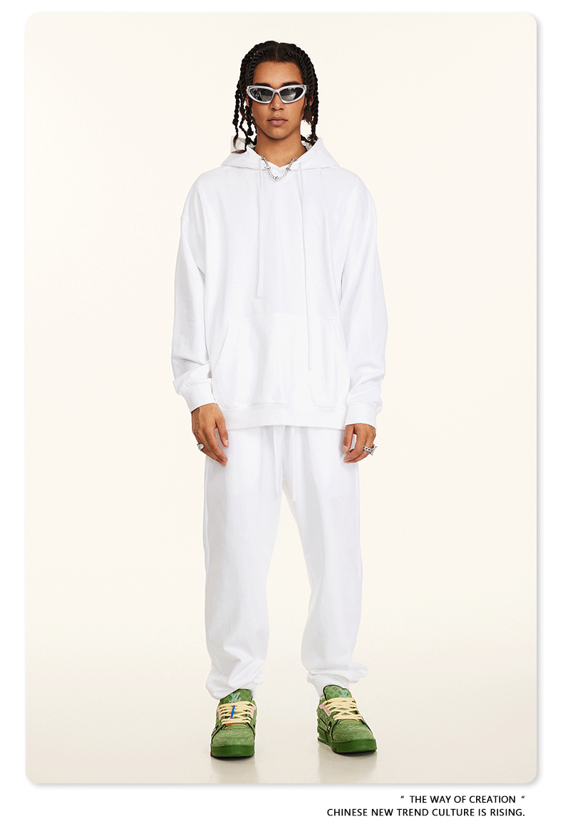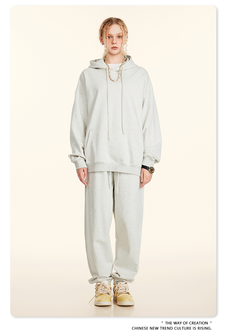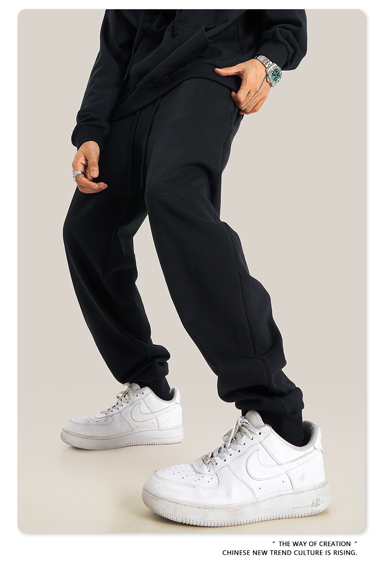 秋冬基礎款純色休閒衛衣衛褲套裝重磅潮牌寬松運動長褲兩件套男士