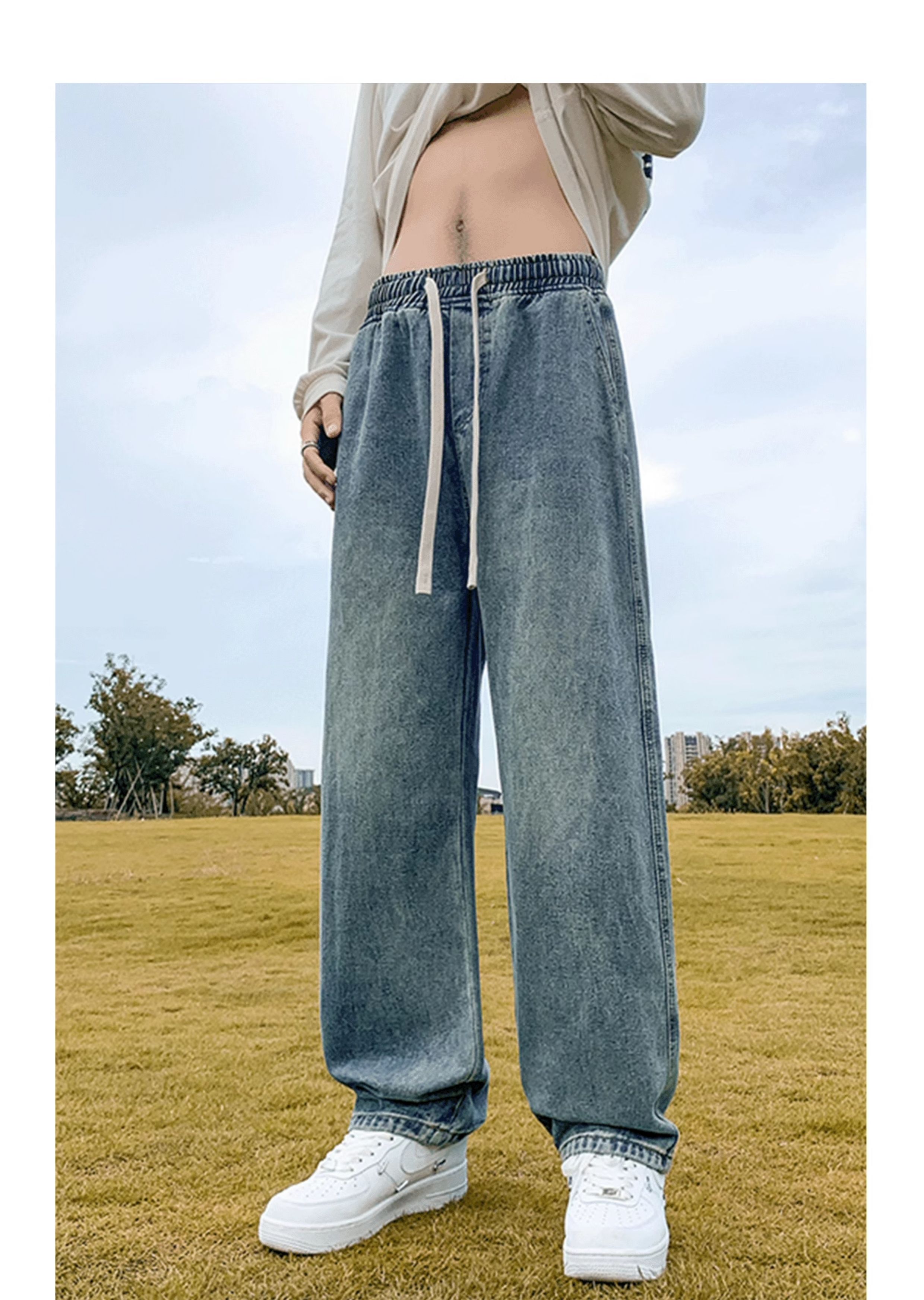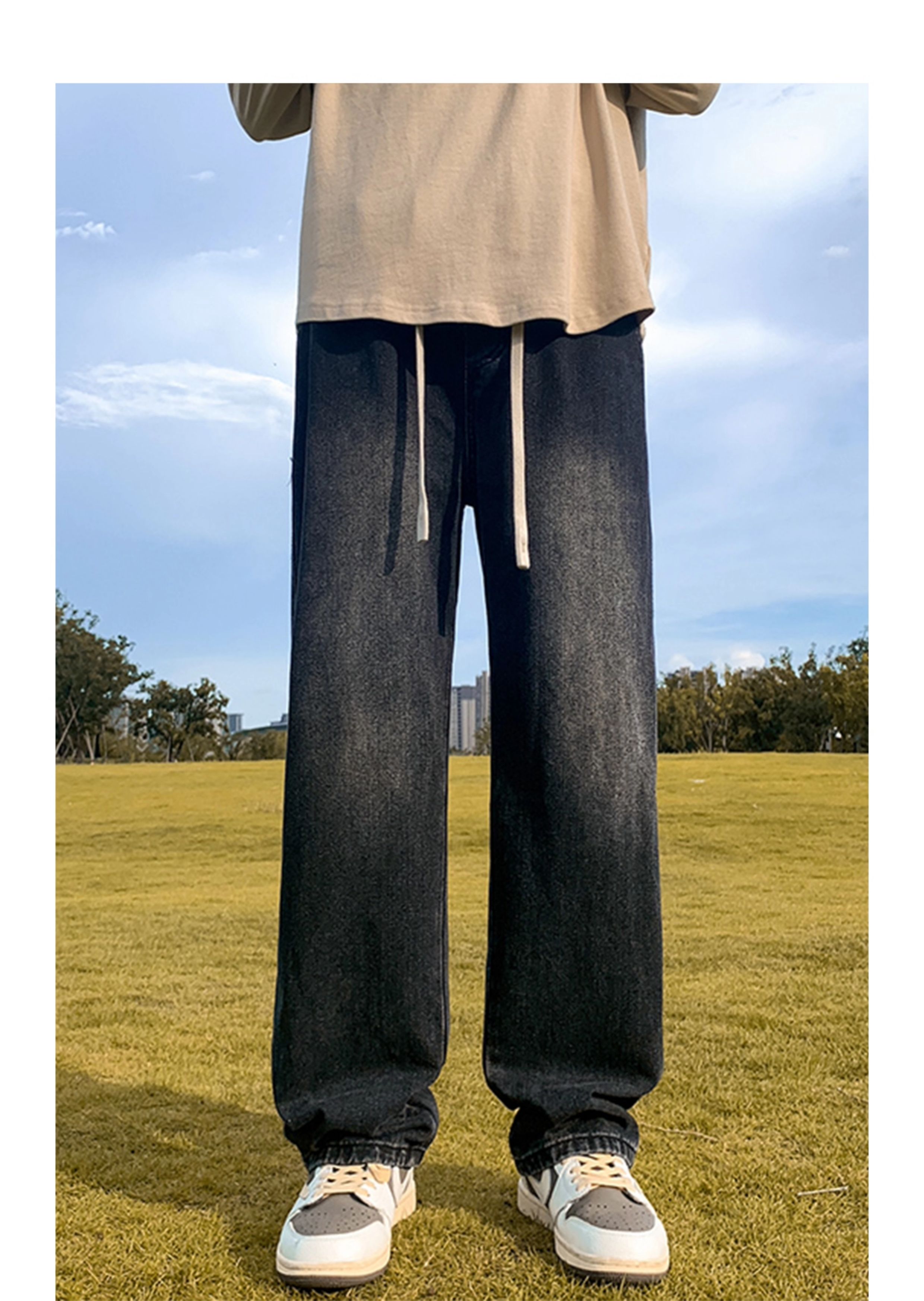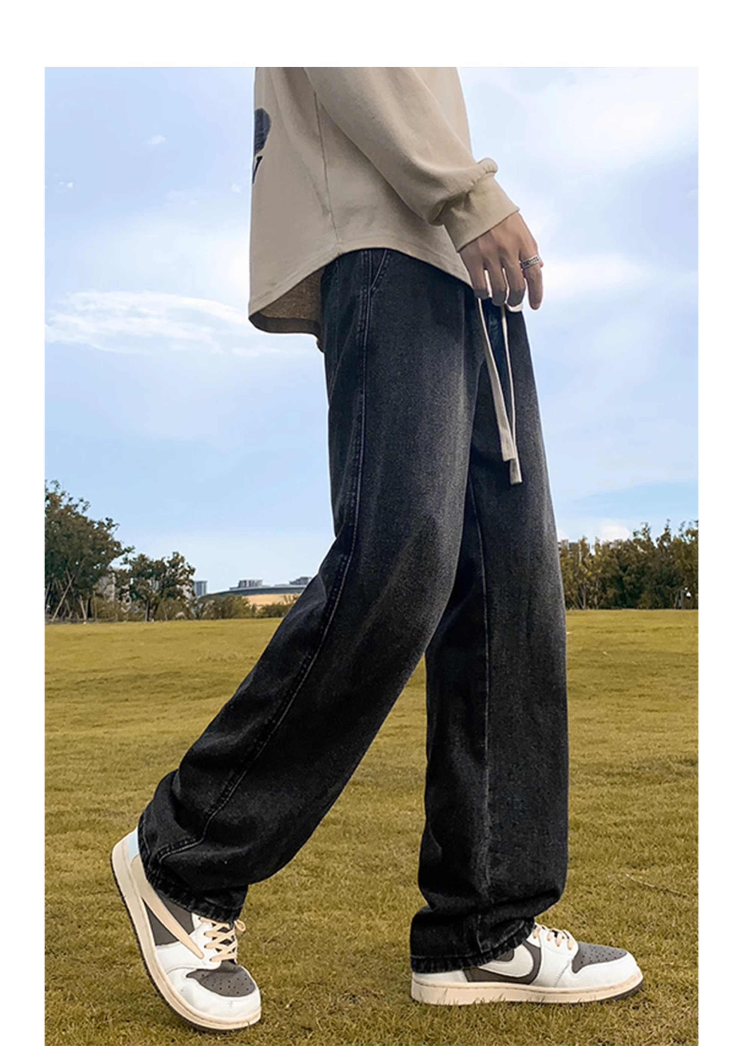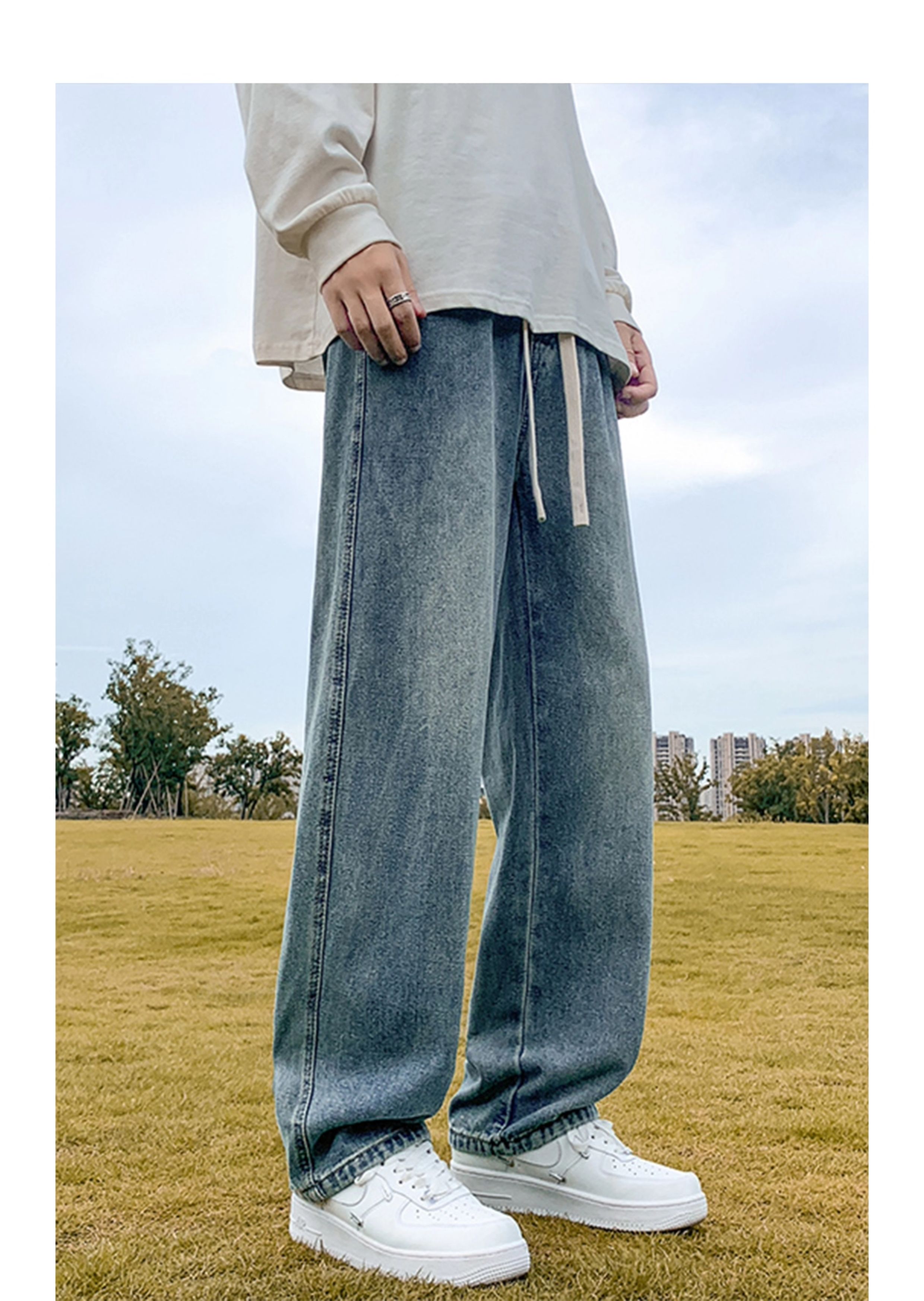 牛仔褲男士新款寬松長褲休閒冬季男褲美式男生直筒褲彎刀加絨褲子