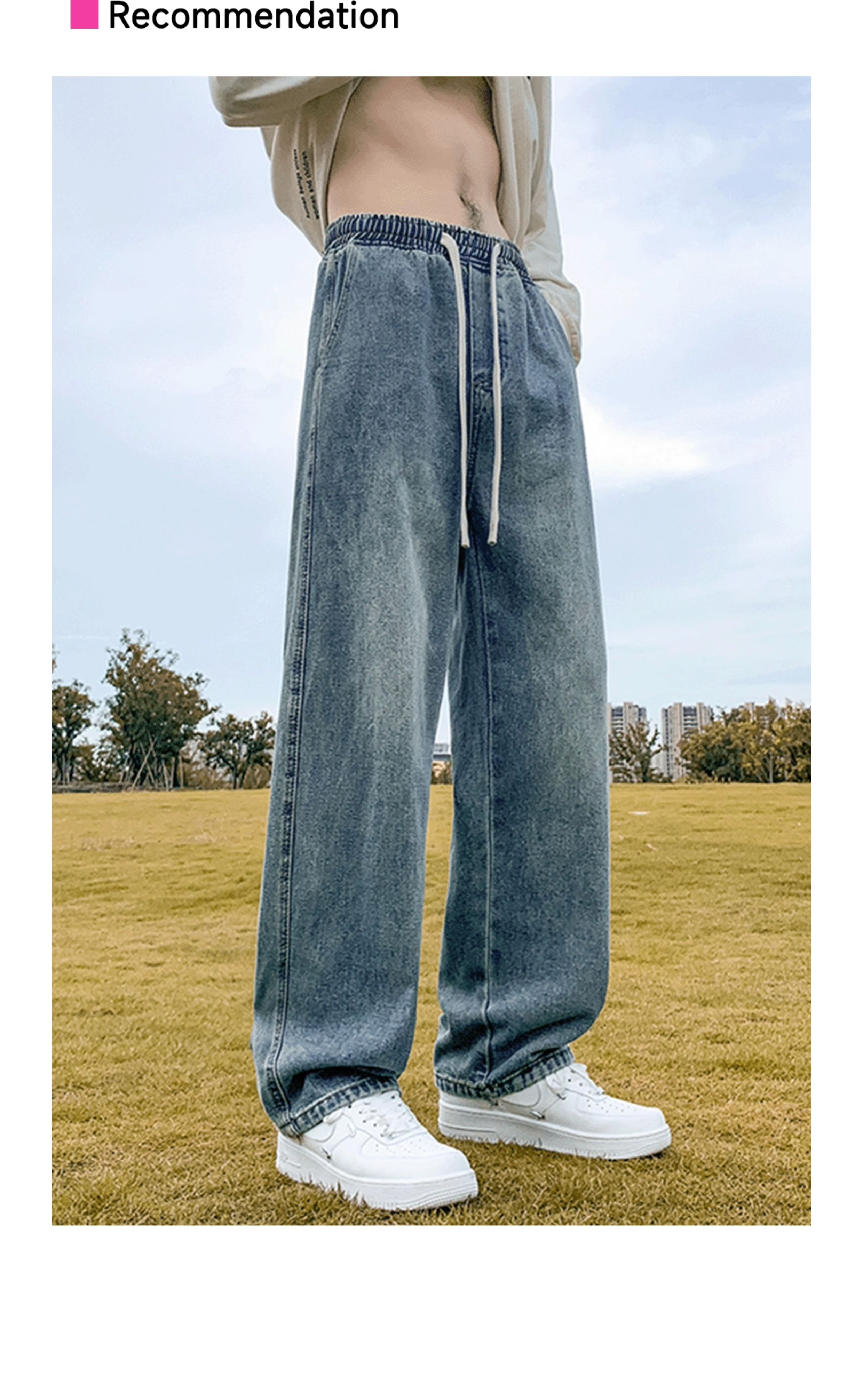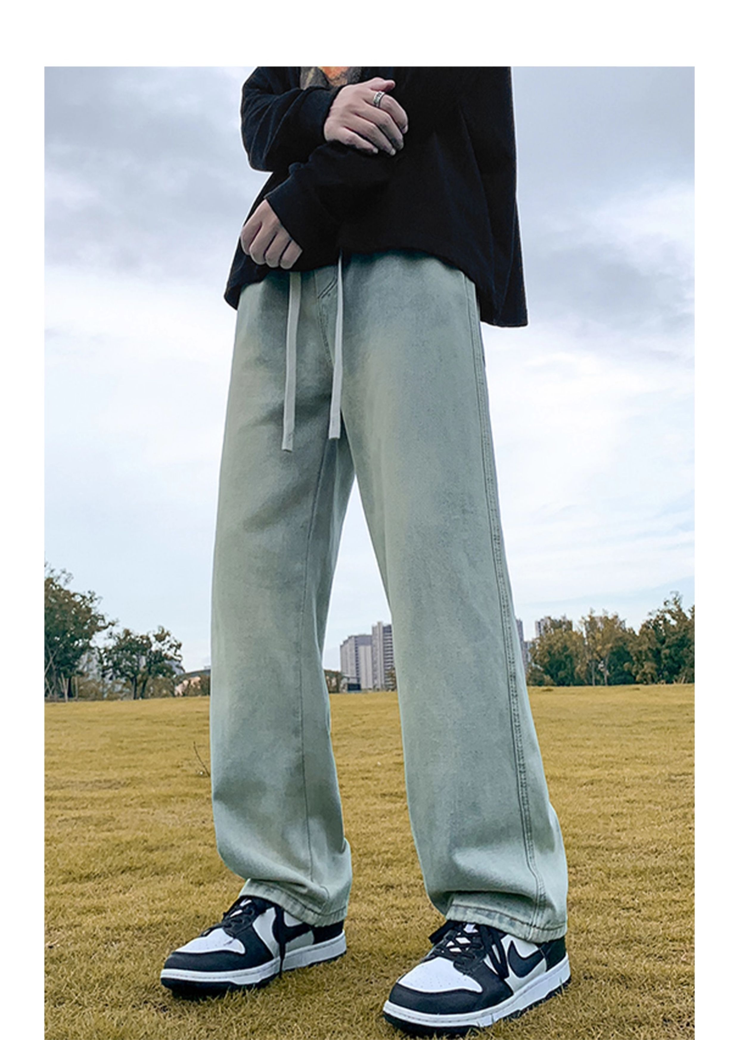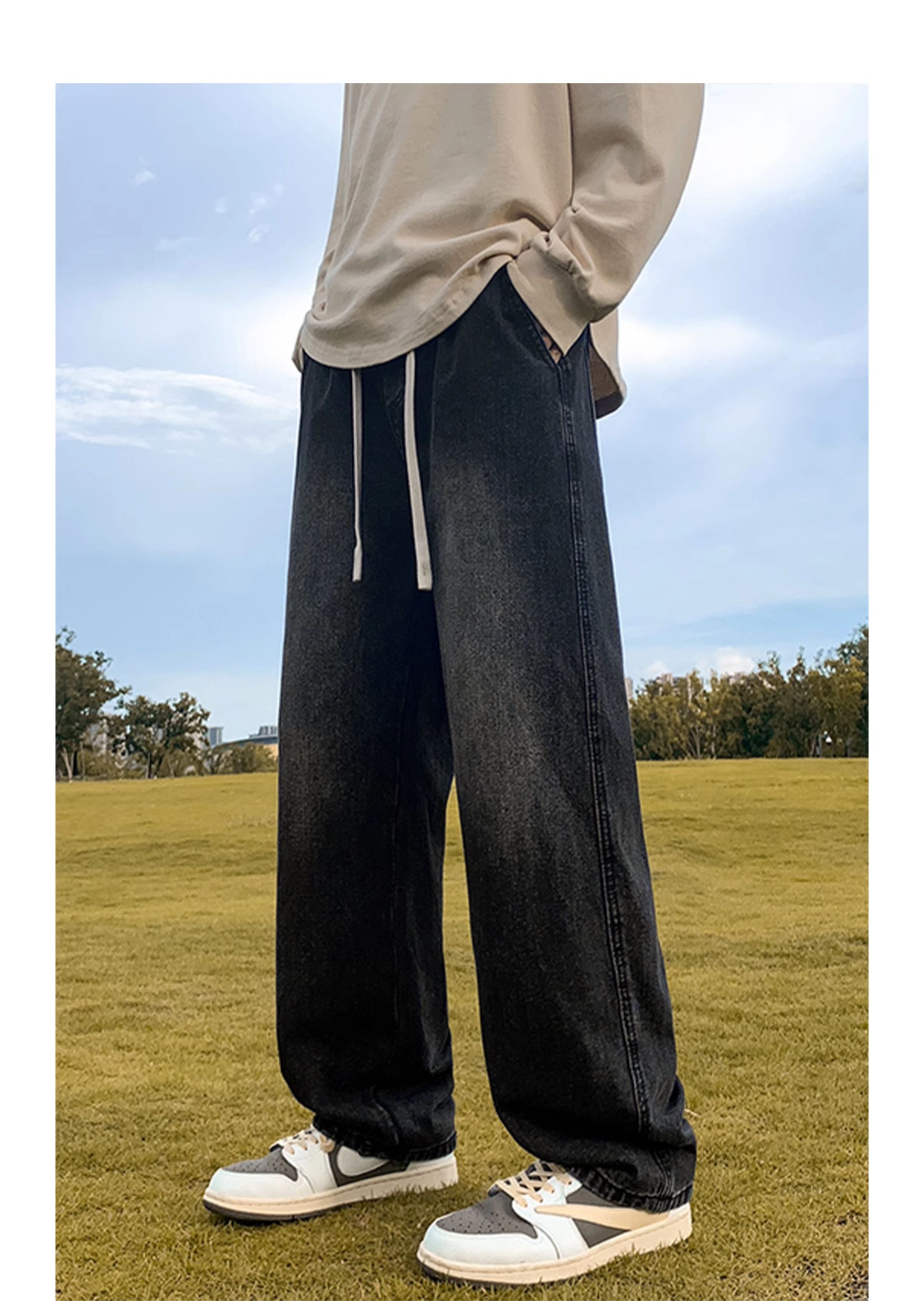 牛仔褲男士新款寬松長褲休閒冬季男褲美式男生直筒褲彎刀加絨褲子