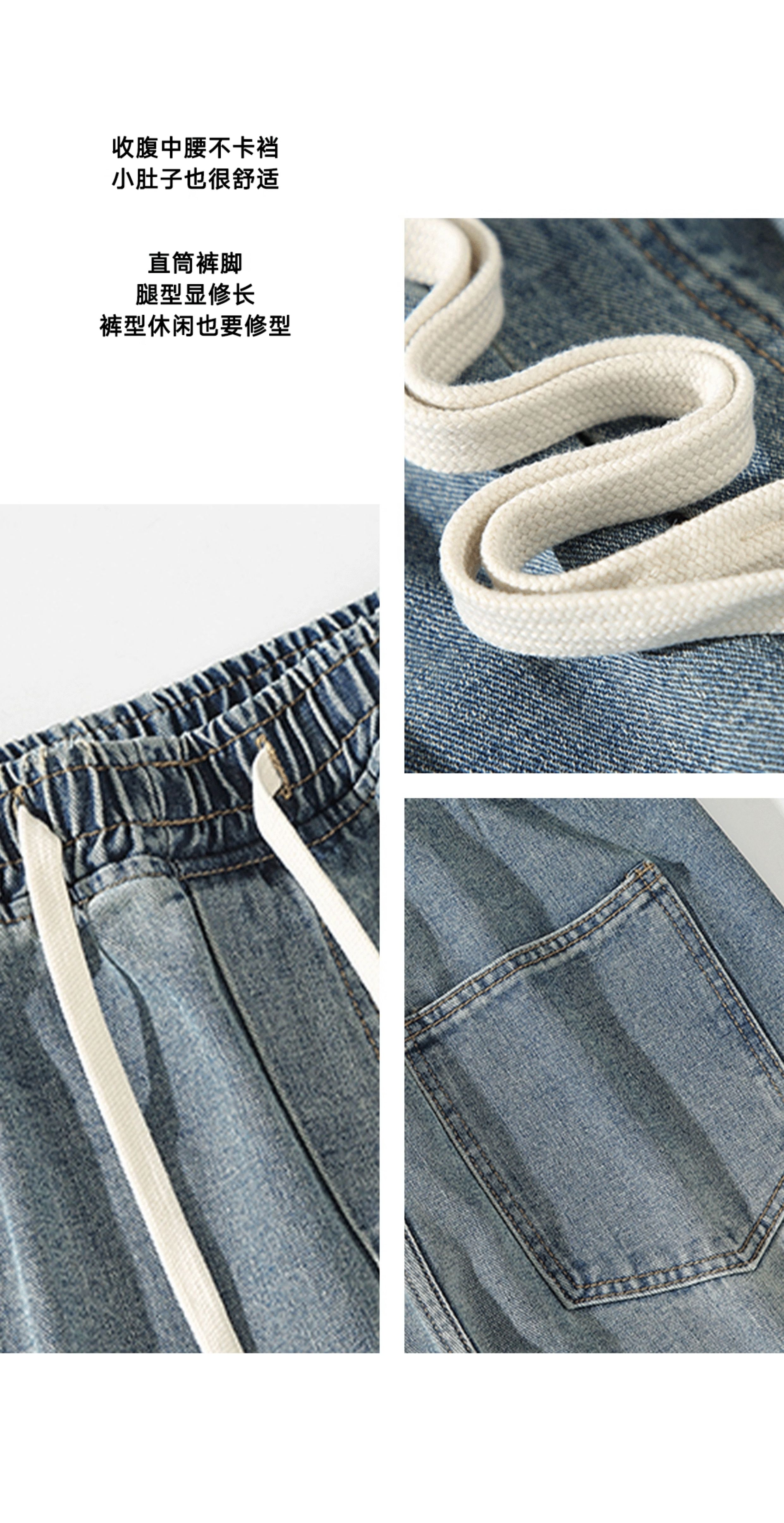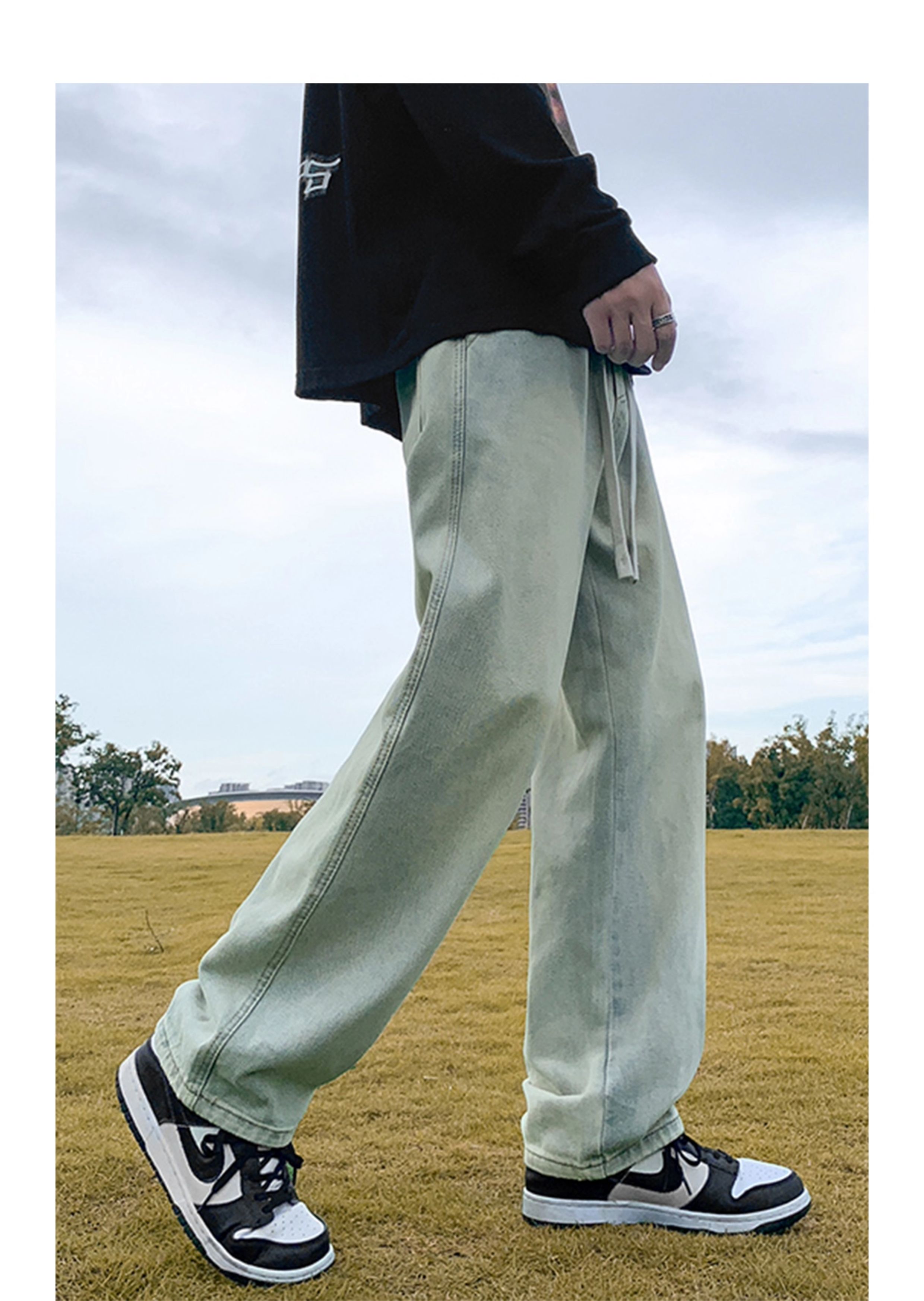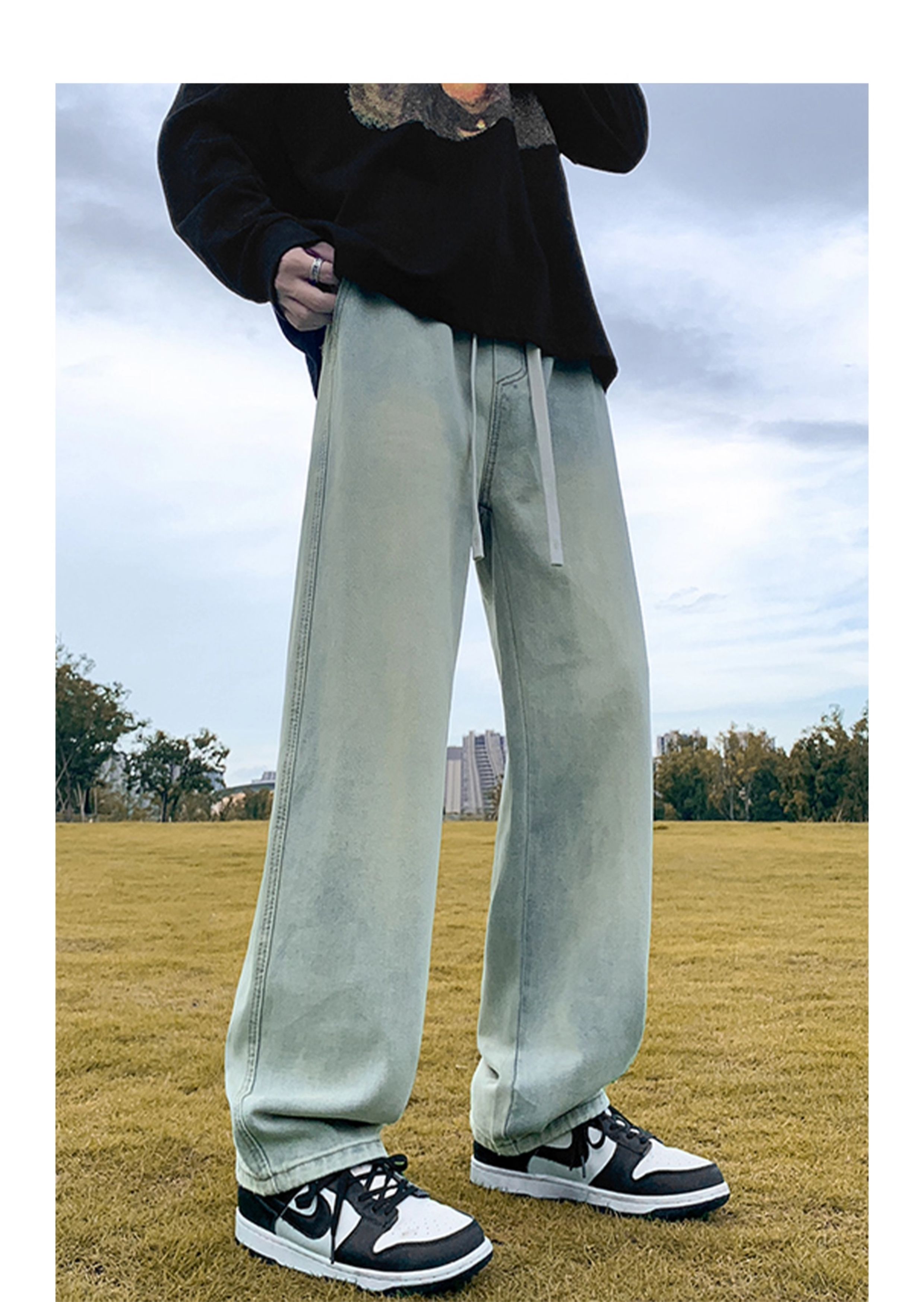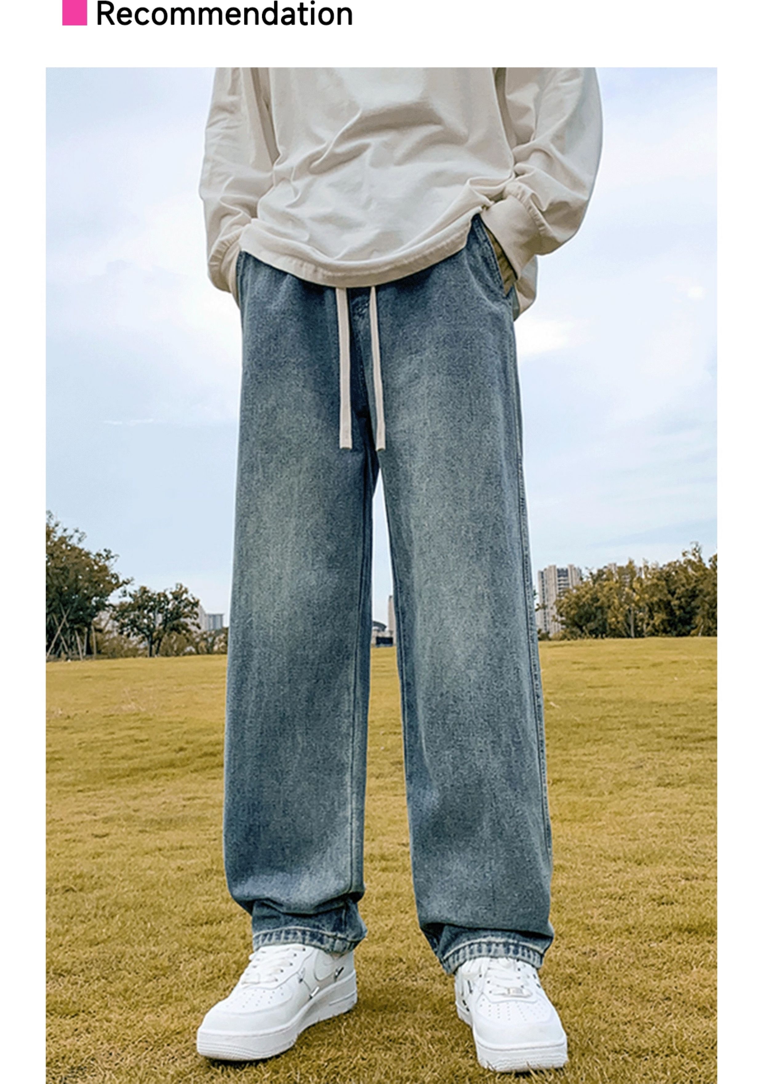 牛仔褲男士新款寬松長褲休閒冬季男褲美式男生直筒褲彎刀加絨褲子