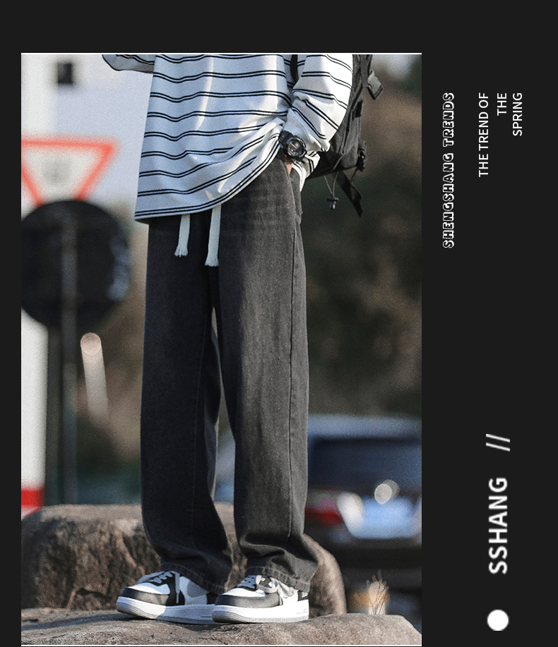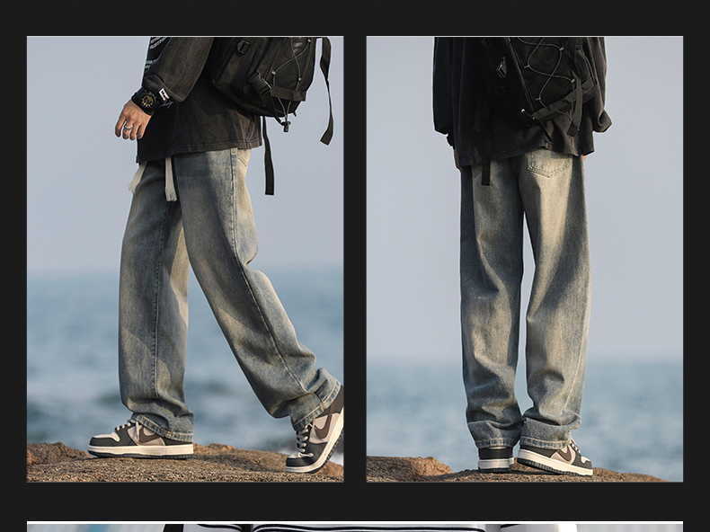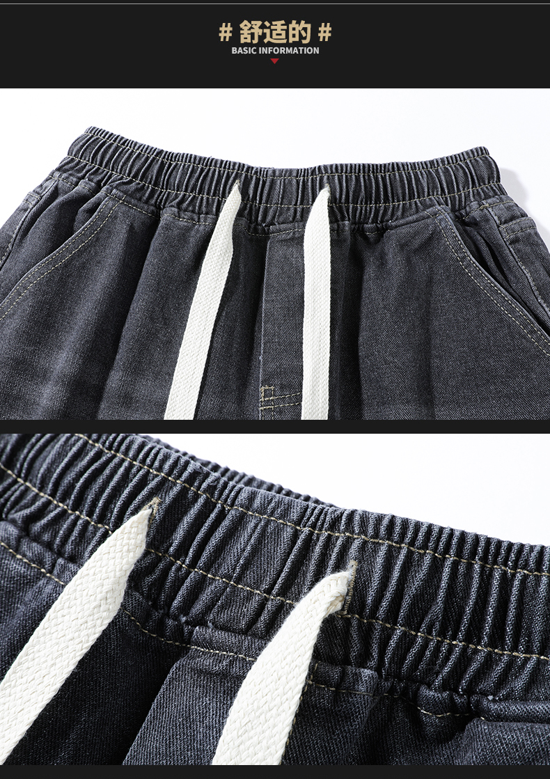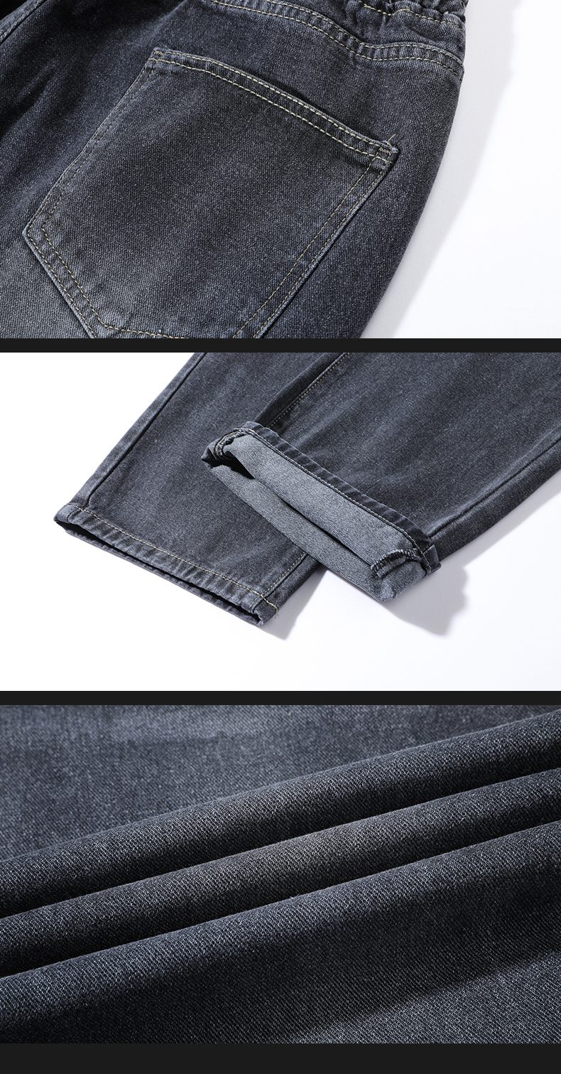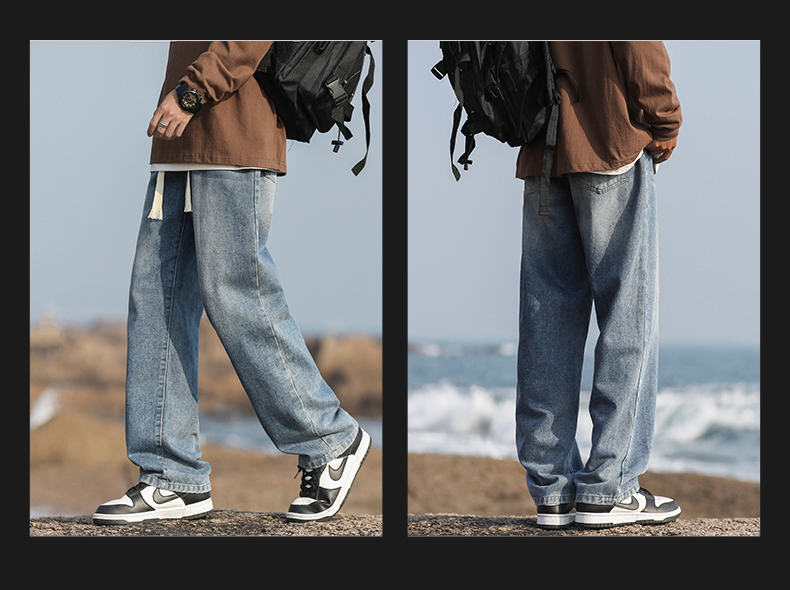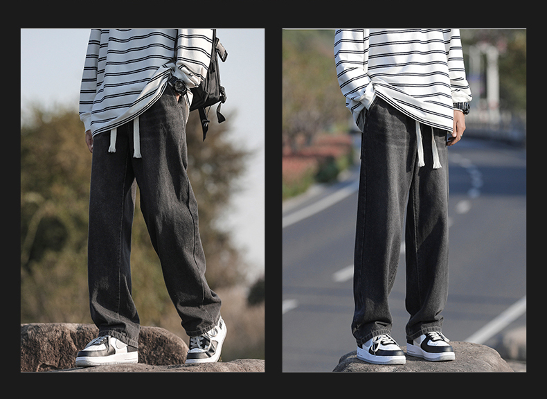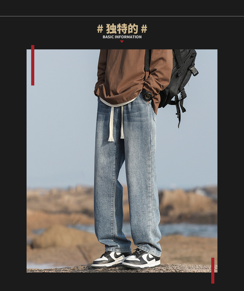 美式直筒加絨牛仔褲男款秋冬潮牌寬松水洗抽繩冬季休閒長褲子男士